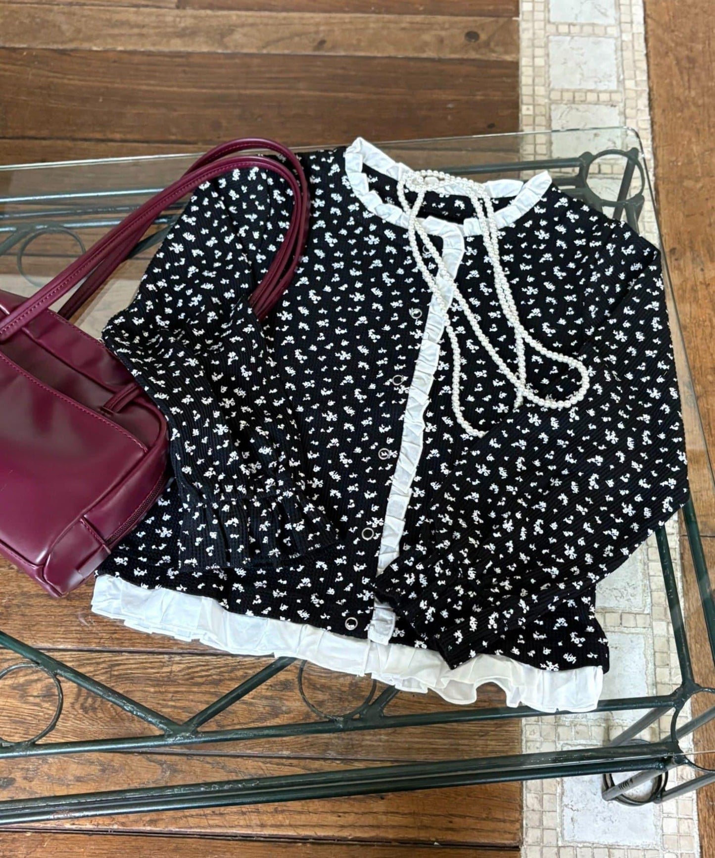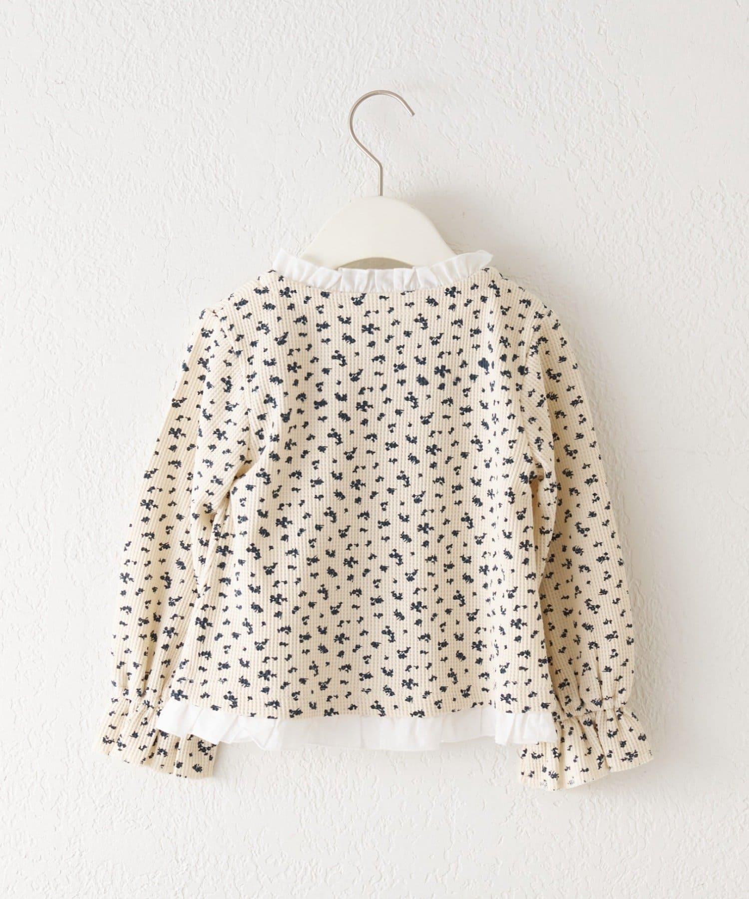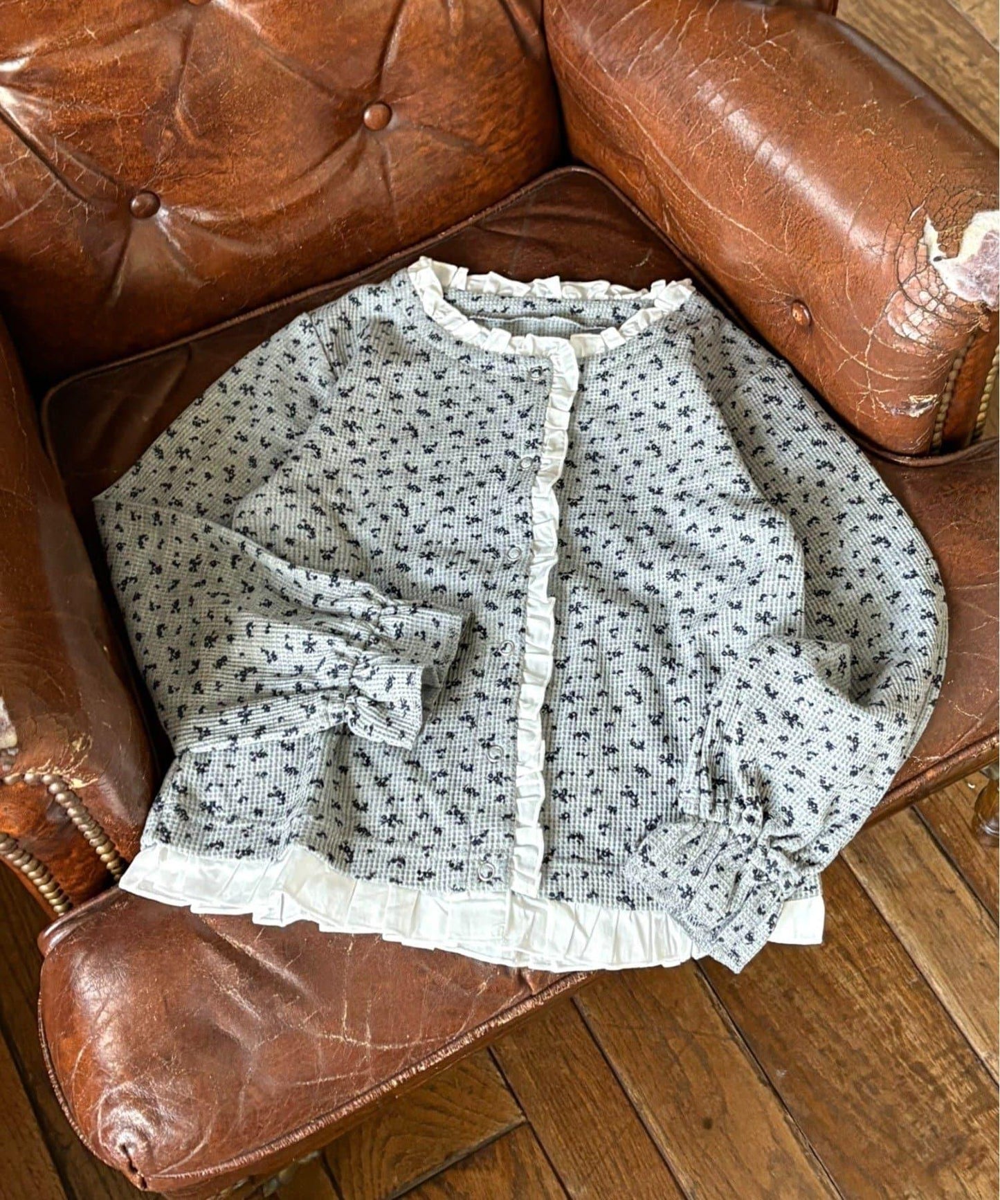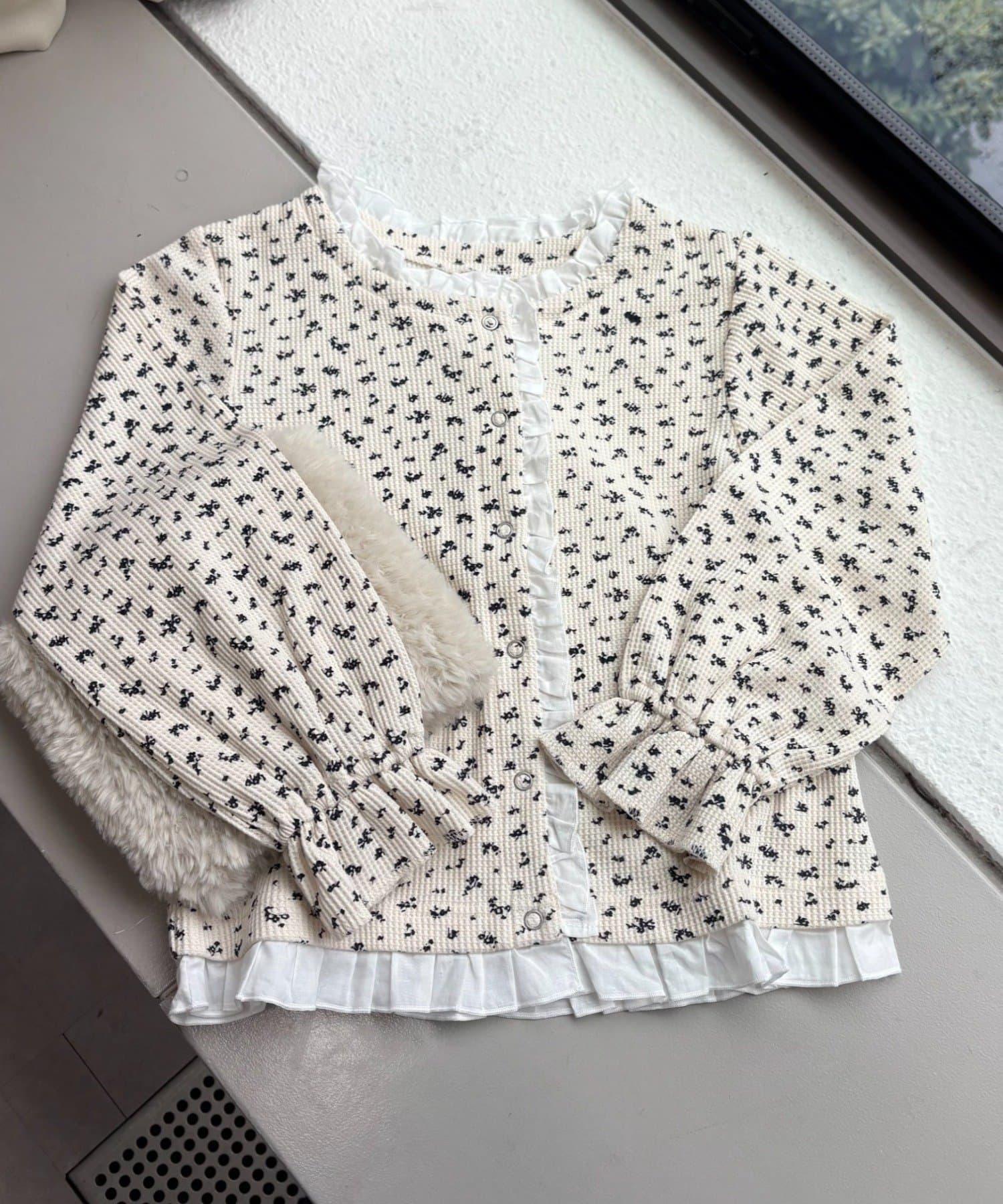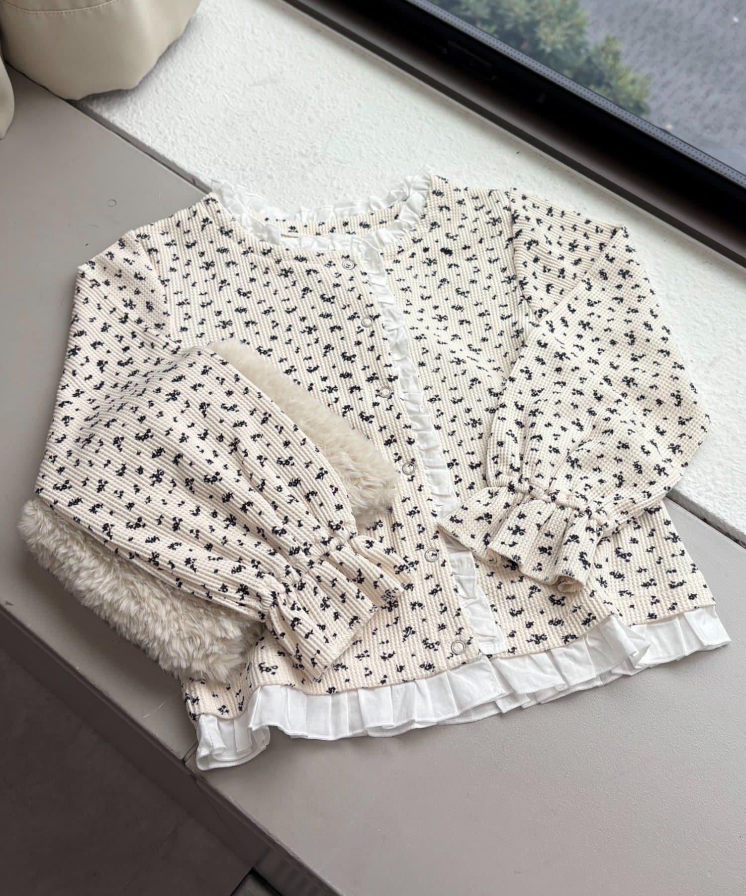 【KIDS】花卉印花荷葉邊華夫格按扣開衫