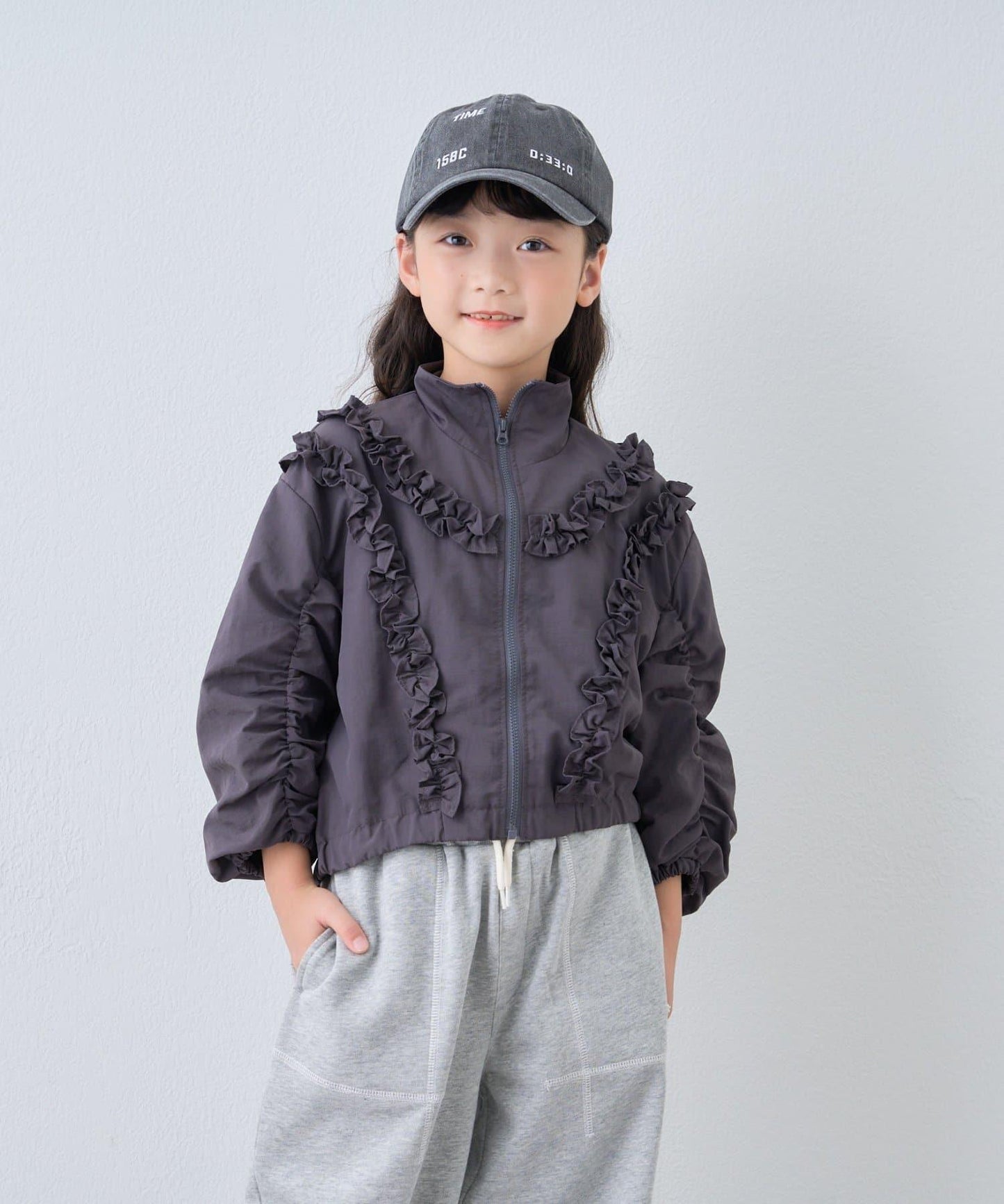 胸前的荷葉邊裝飾提升了兒童的可愛度。