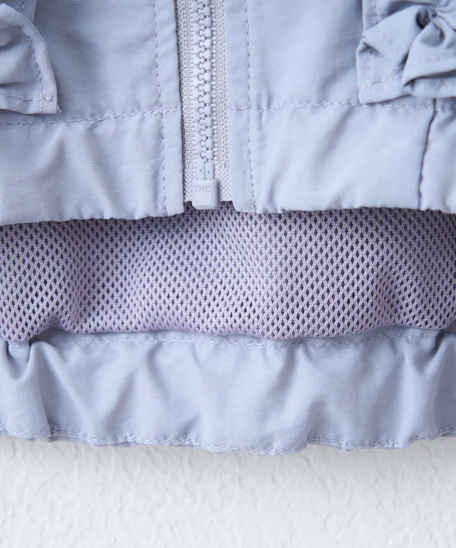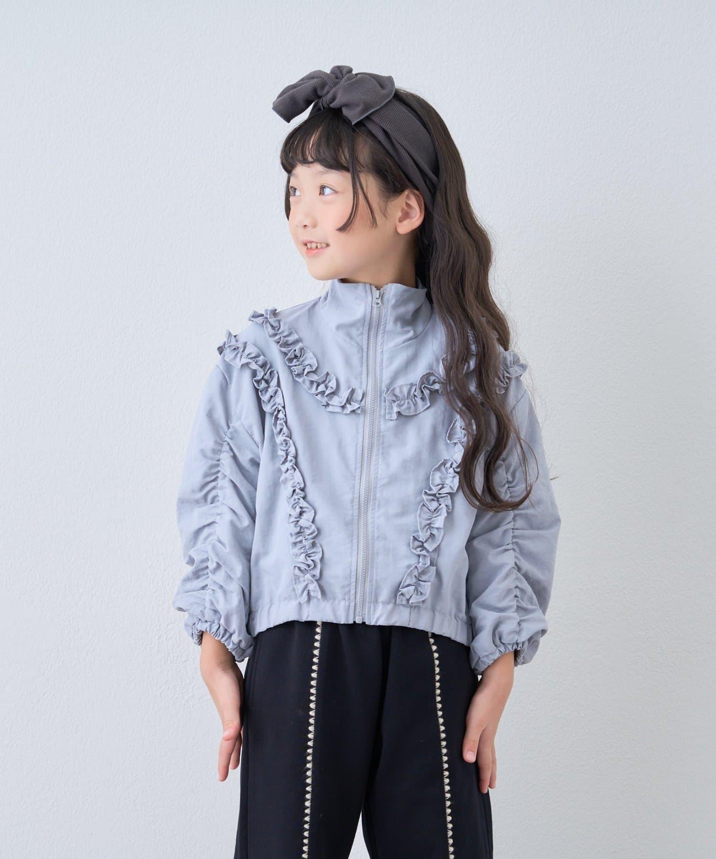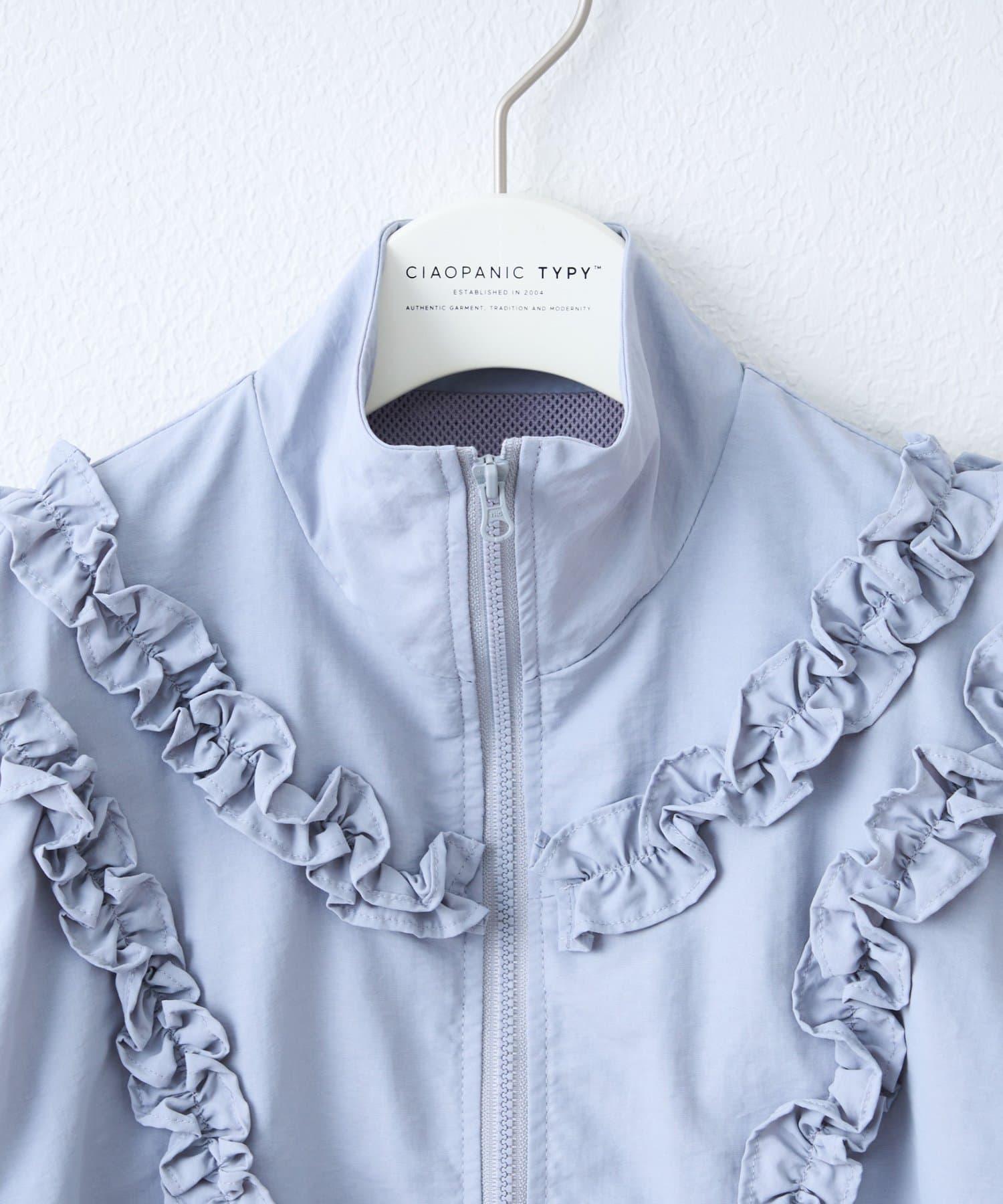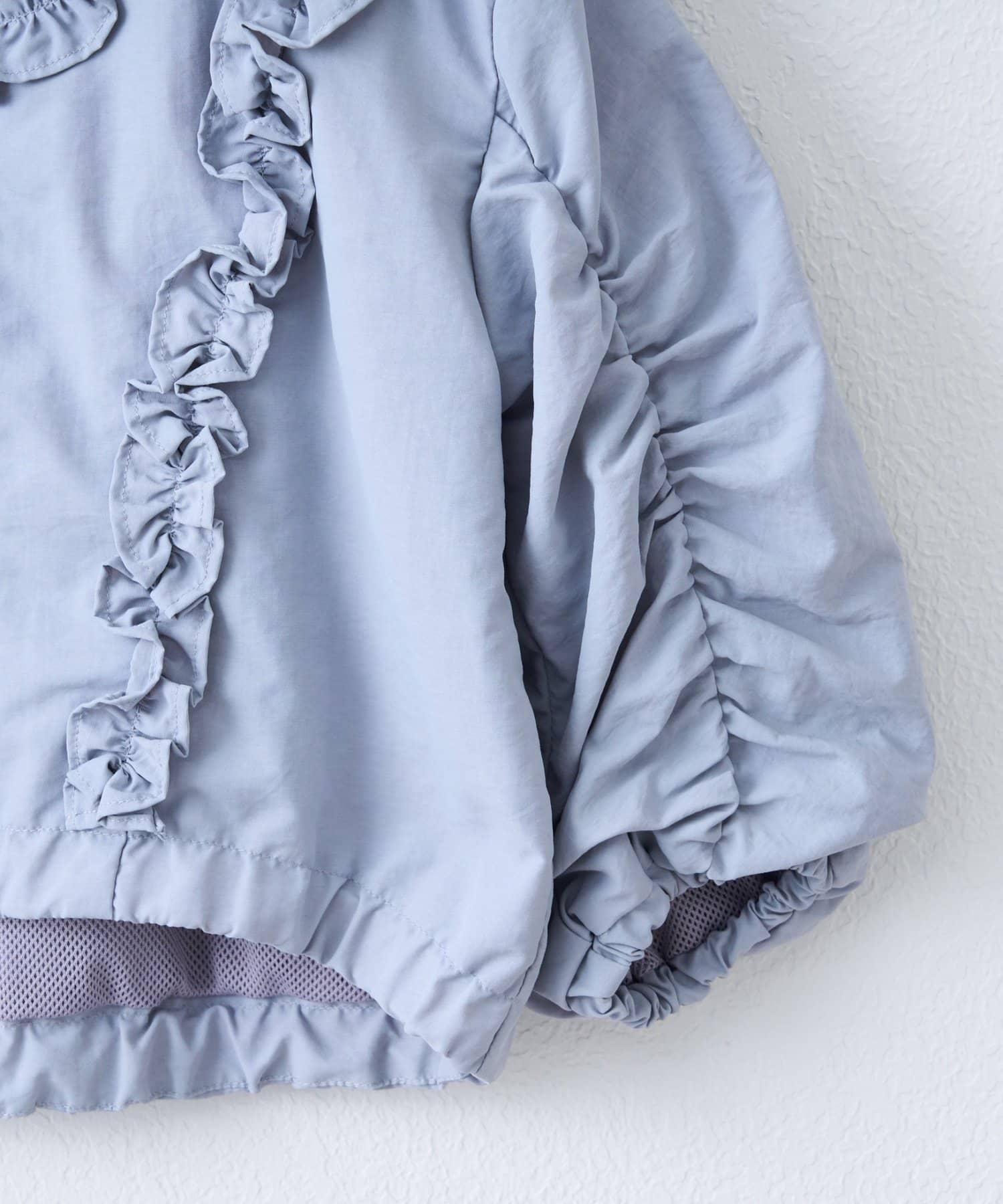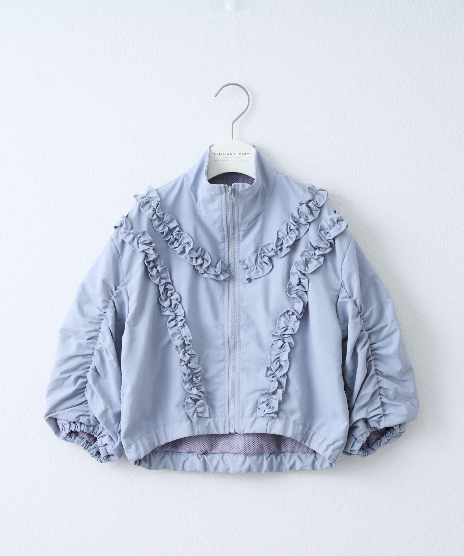 袖子上的毛邊設計營造出蓬鬆的輪廓,給人一種少女的感覺。