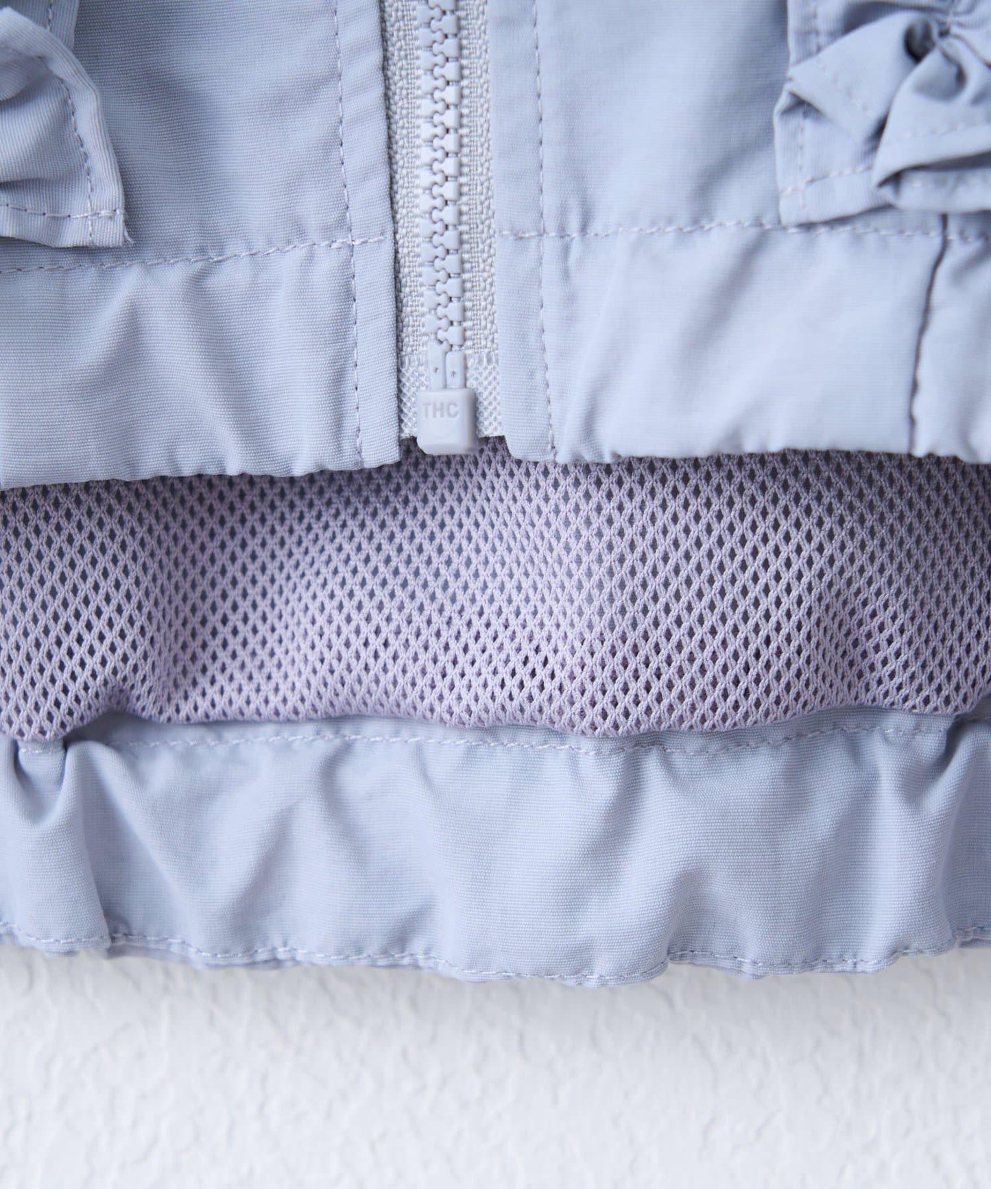 輕便的外衣,醒目的褶邊設計為整體造型增添了一絲魅力。