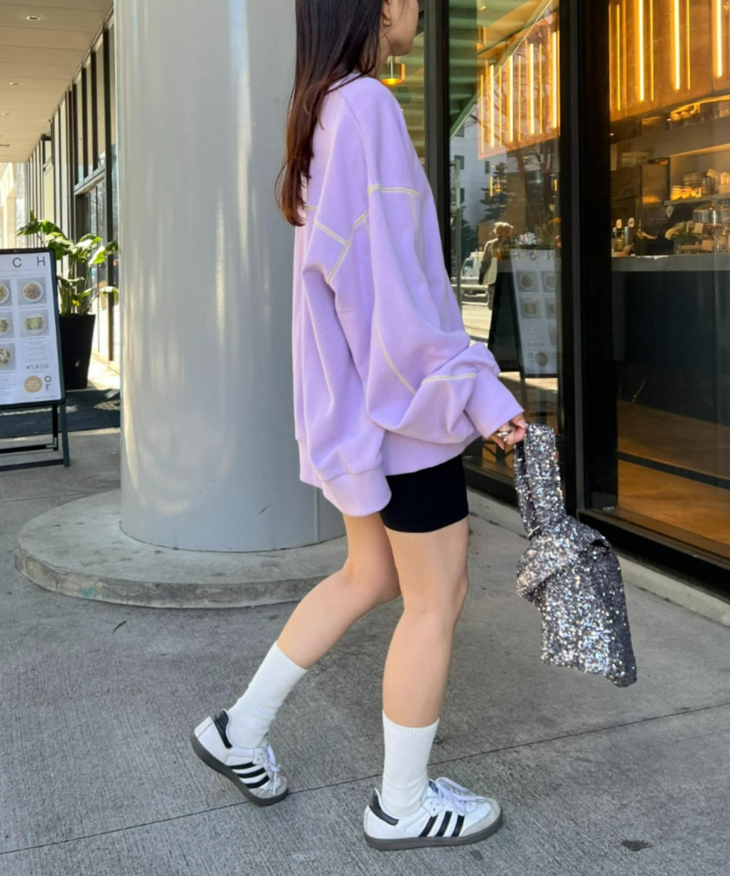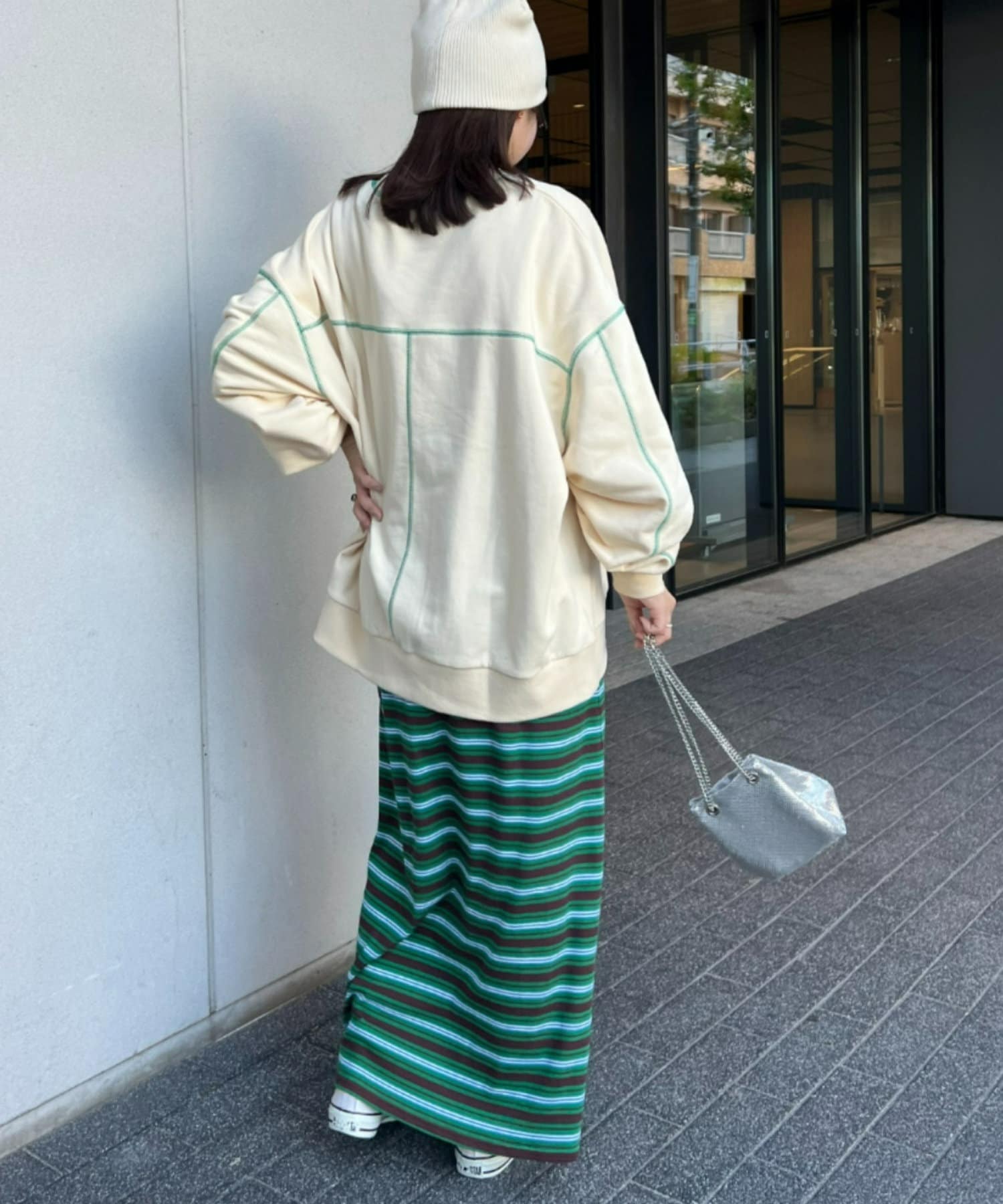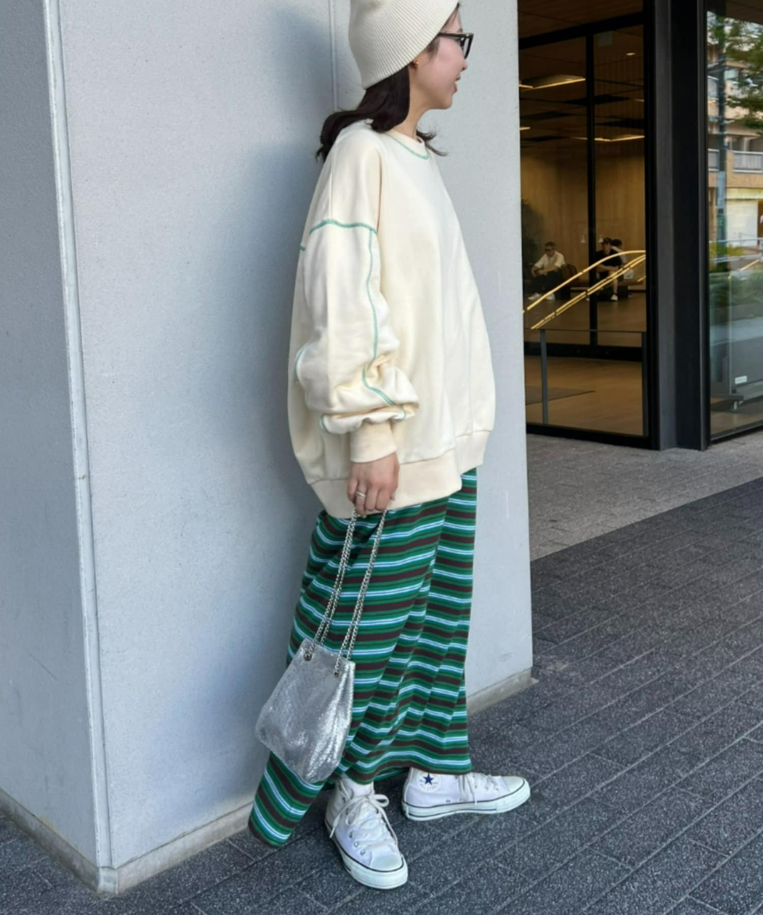 它與裙子和運動褲搭配的悠閒造型也很不錯。