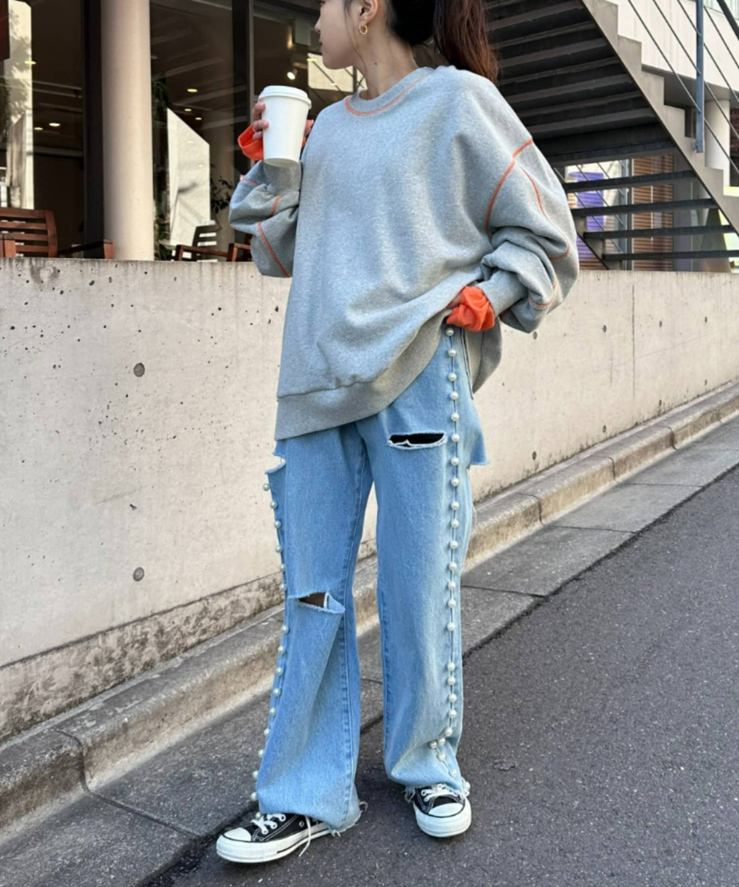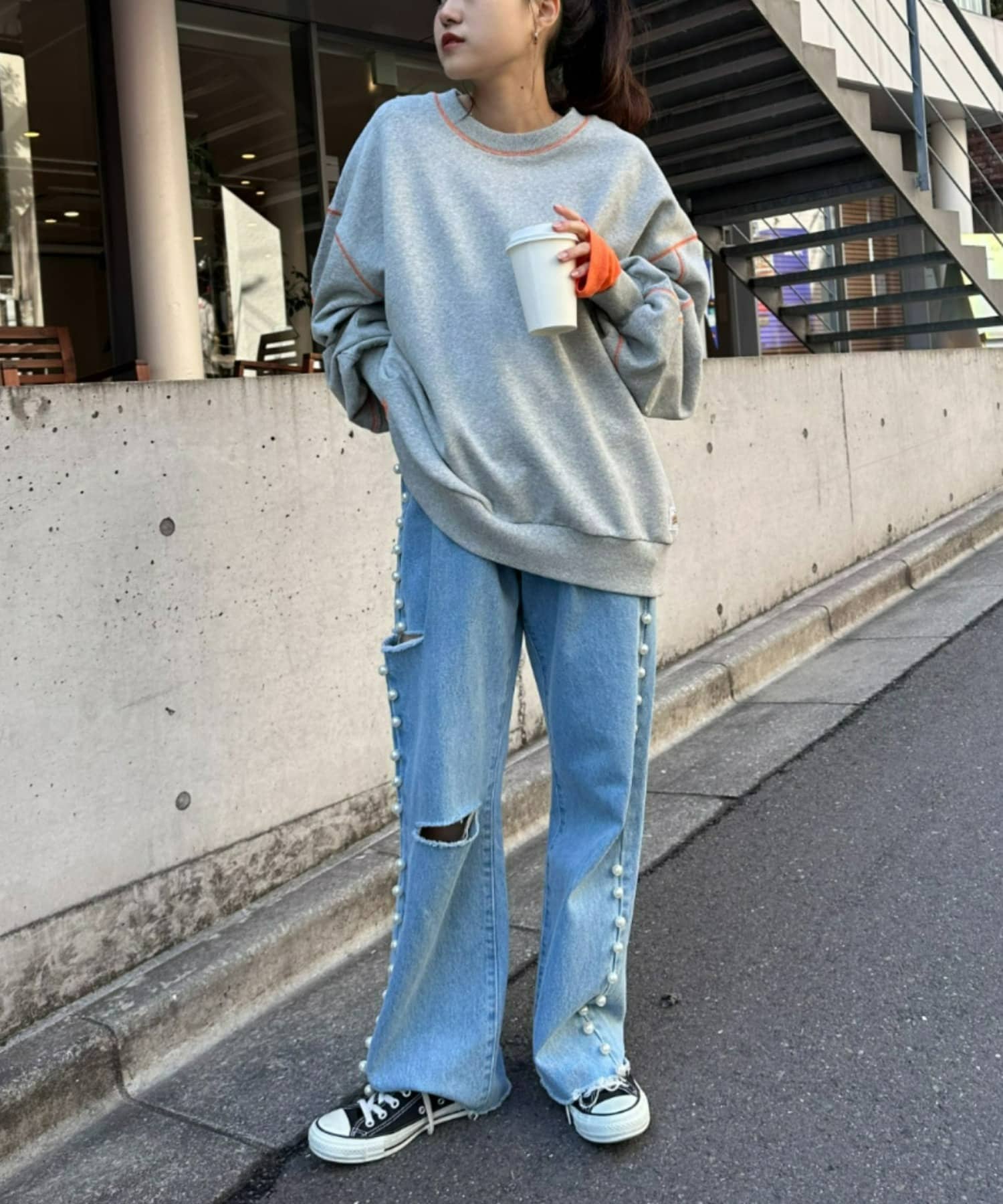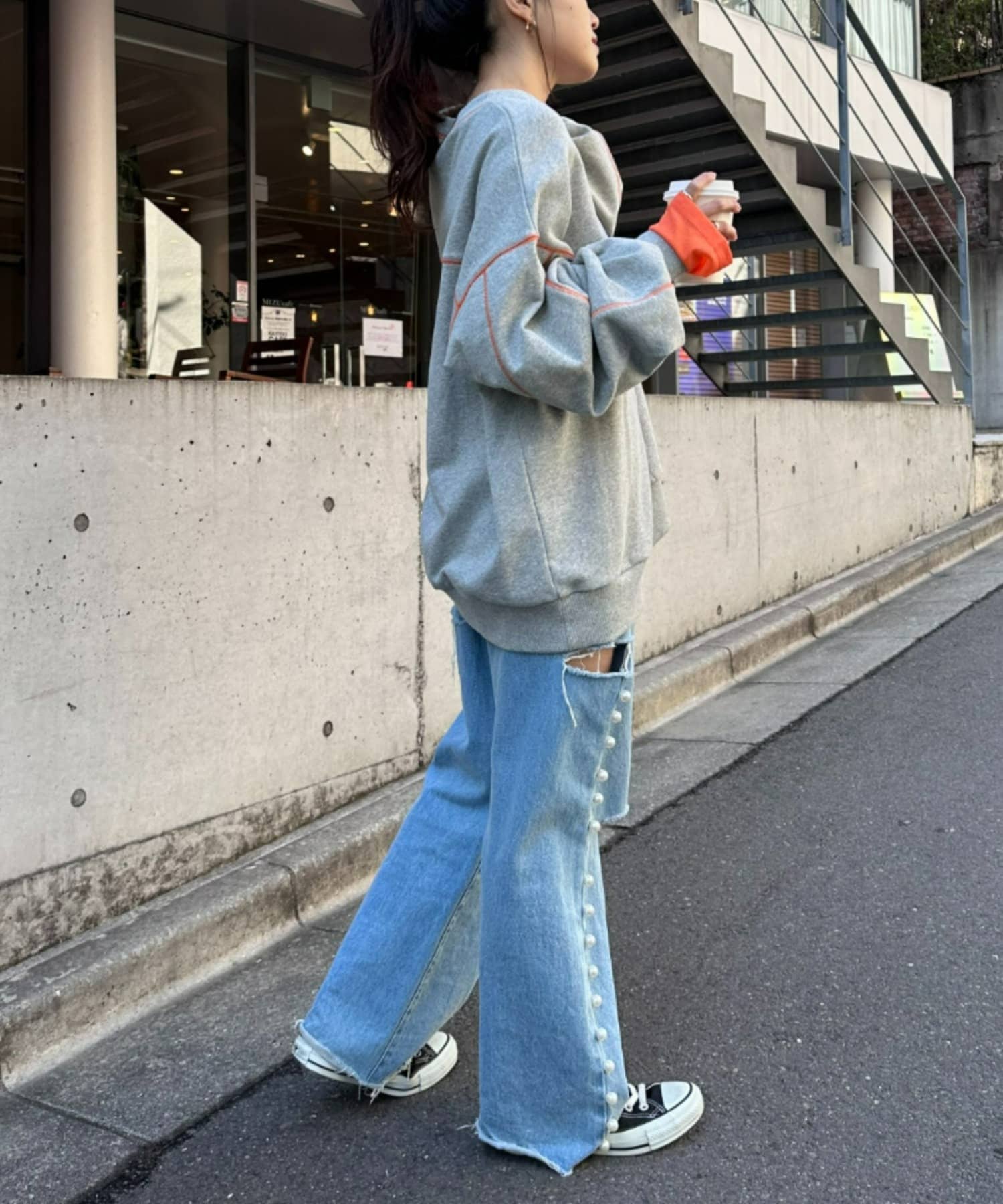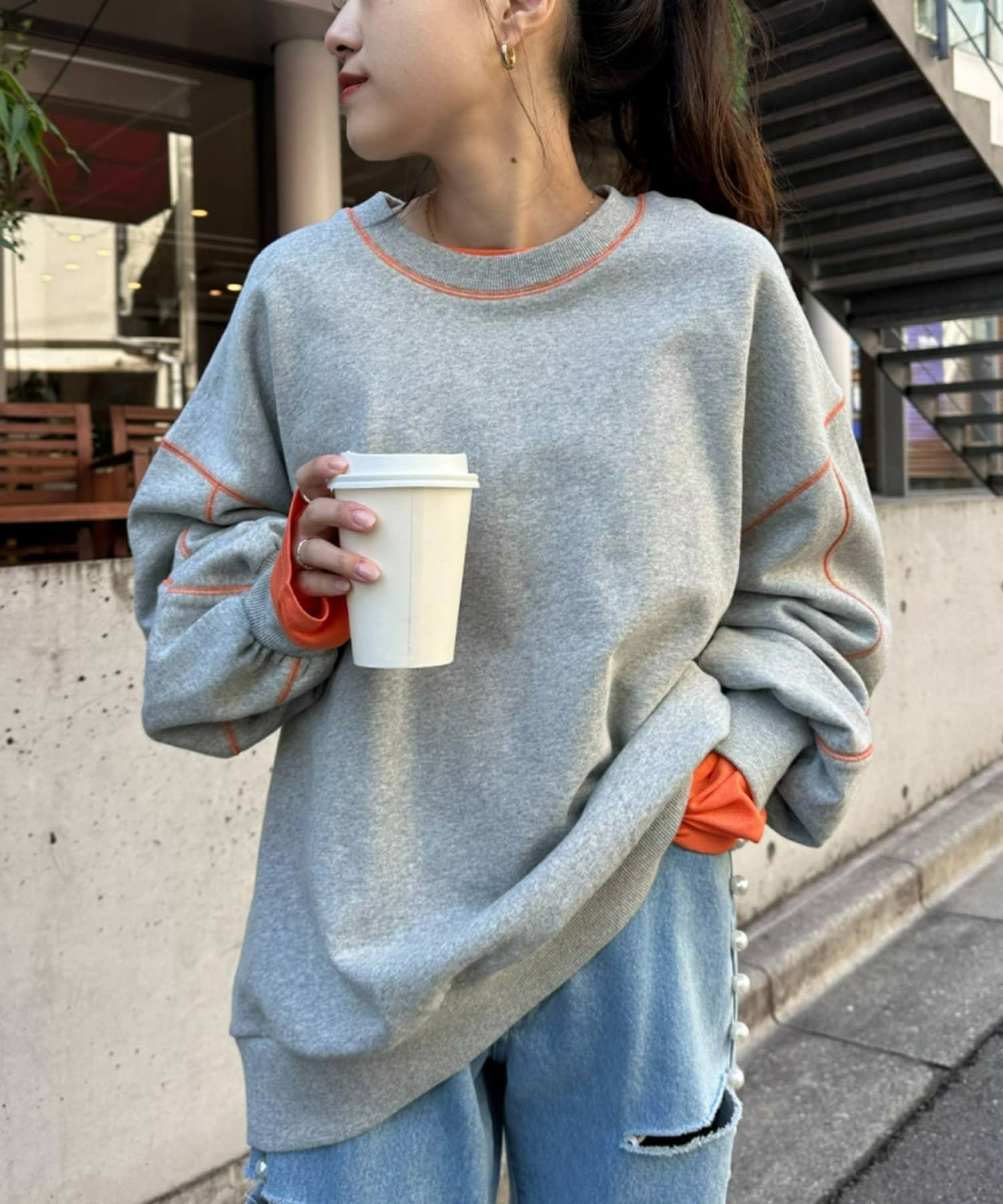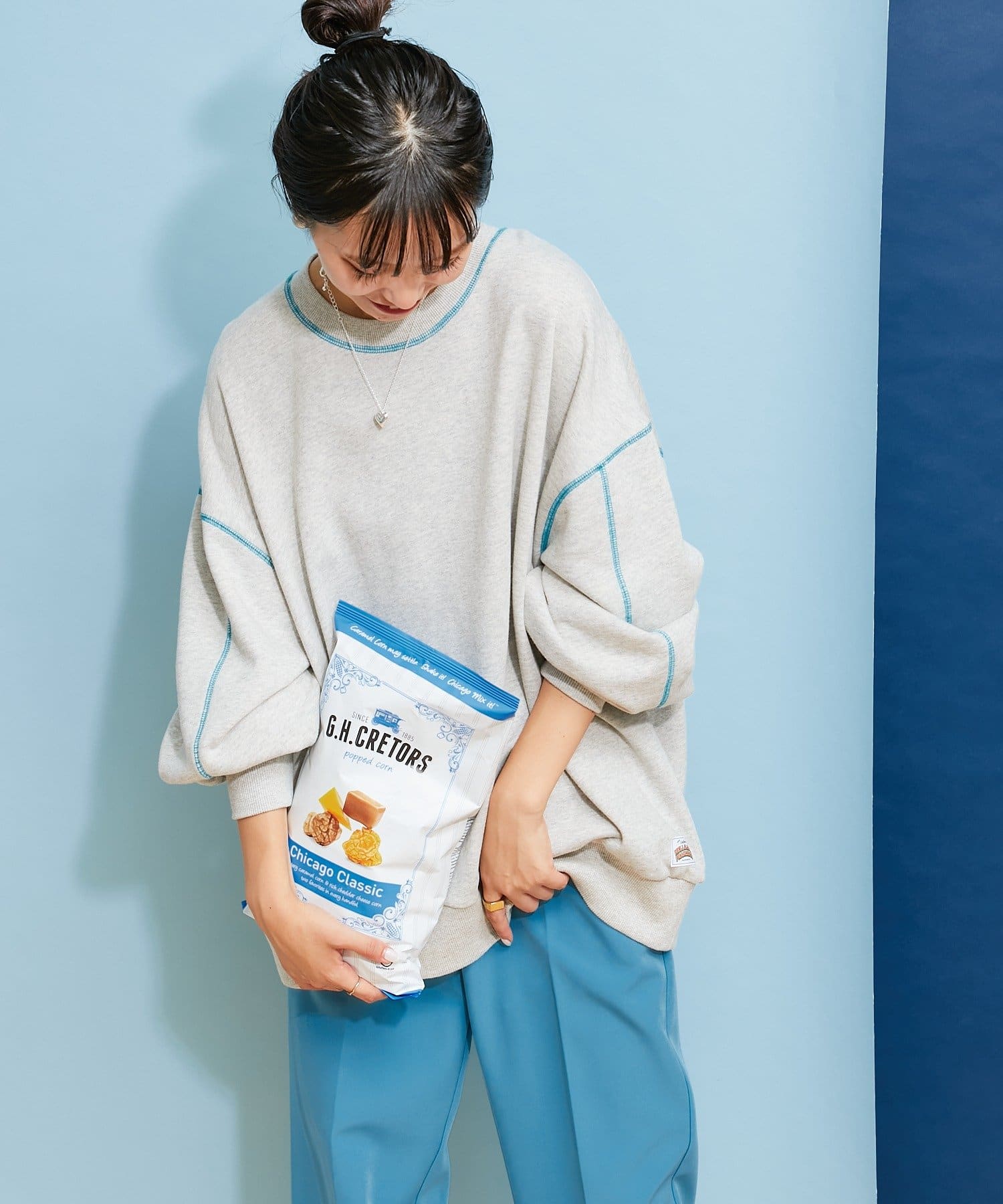 【KinKi Kids 堂本剛先生著用】【H.S】配色縫線超大號運動衫