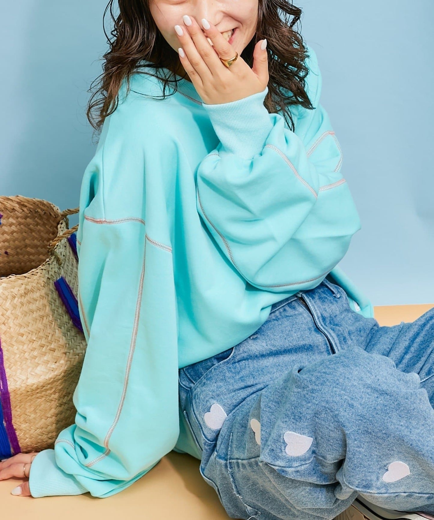 【KinKi Kids 堂本剛先生著用】【H.S】配色縫線超大號運動衫