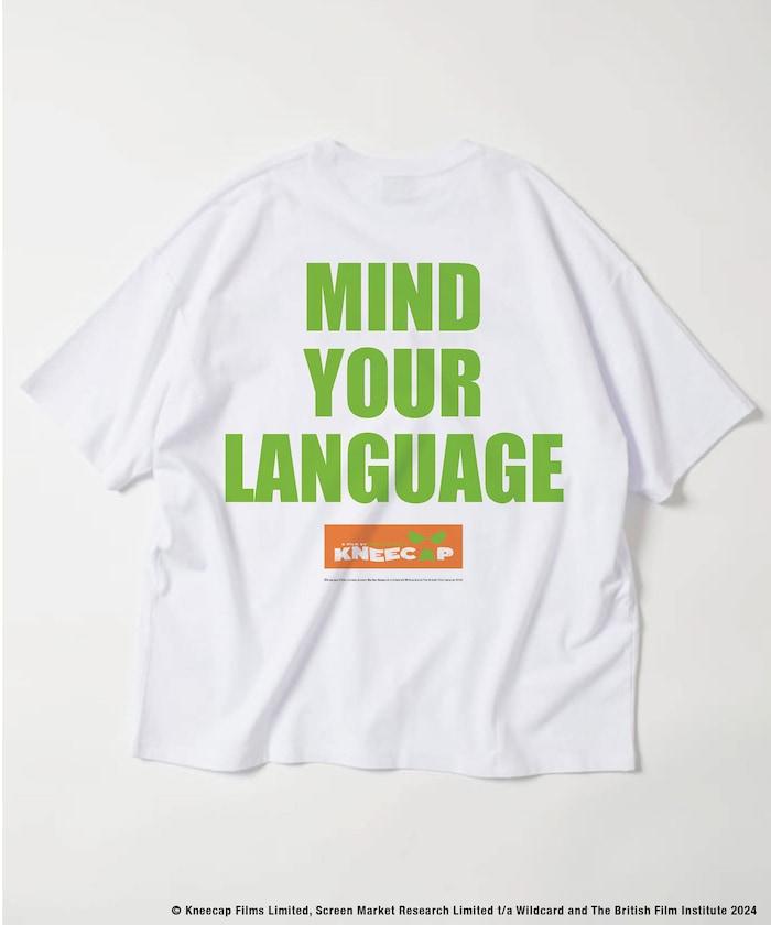 白色 T 恤,正面印有影片中三名成員的主要形象。背面則以愛爾蘭國旗的三種顏色--綠色、白色和橙色--印有影片的口號 "MIND YOUR LANGUAGE"。這件作品反映了他們對愛爾蘭的熱愛。
