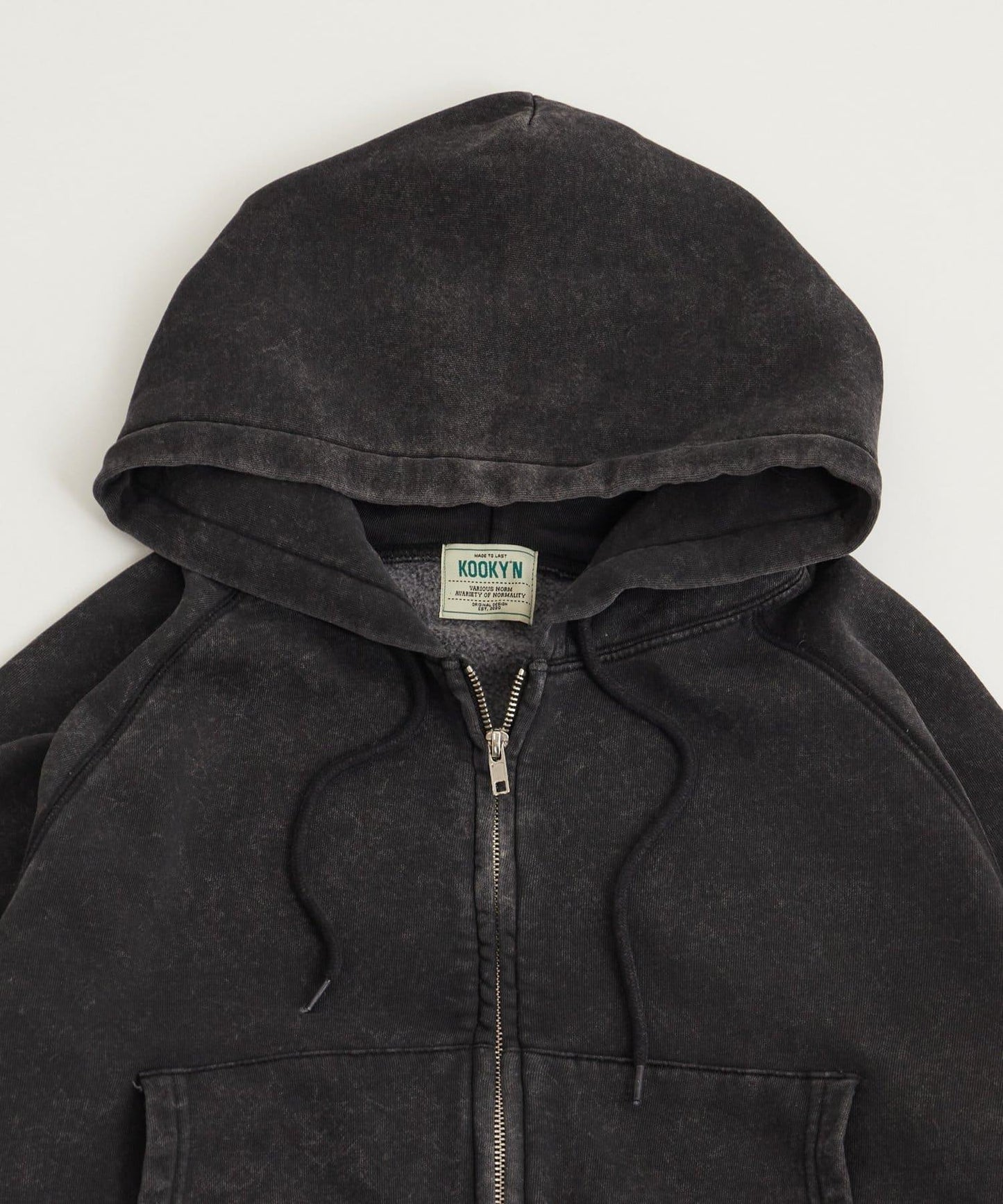 復古風格的 KOOKYN 化學水洗拉鍊連帽衫!