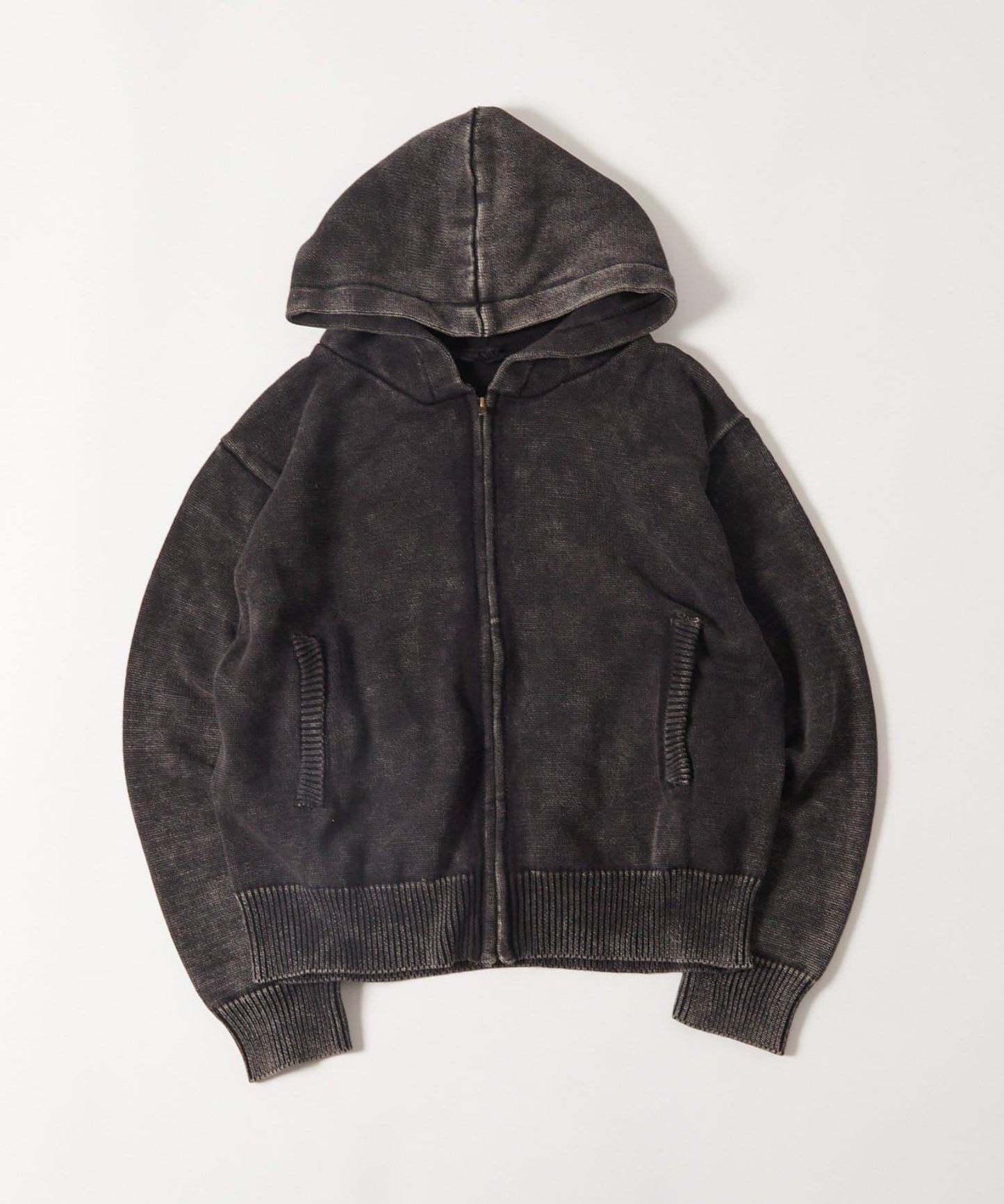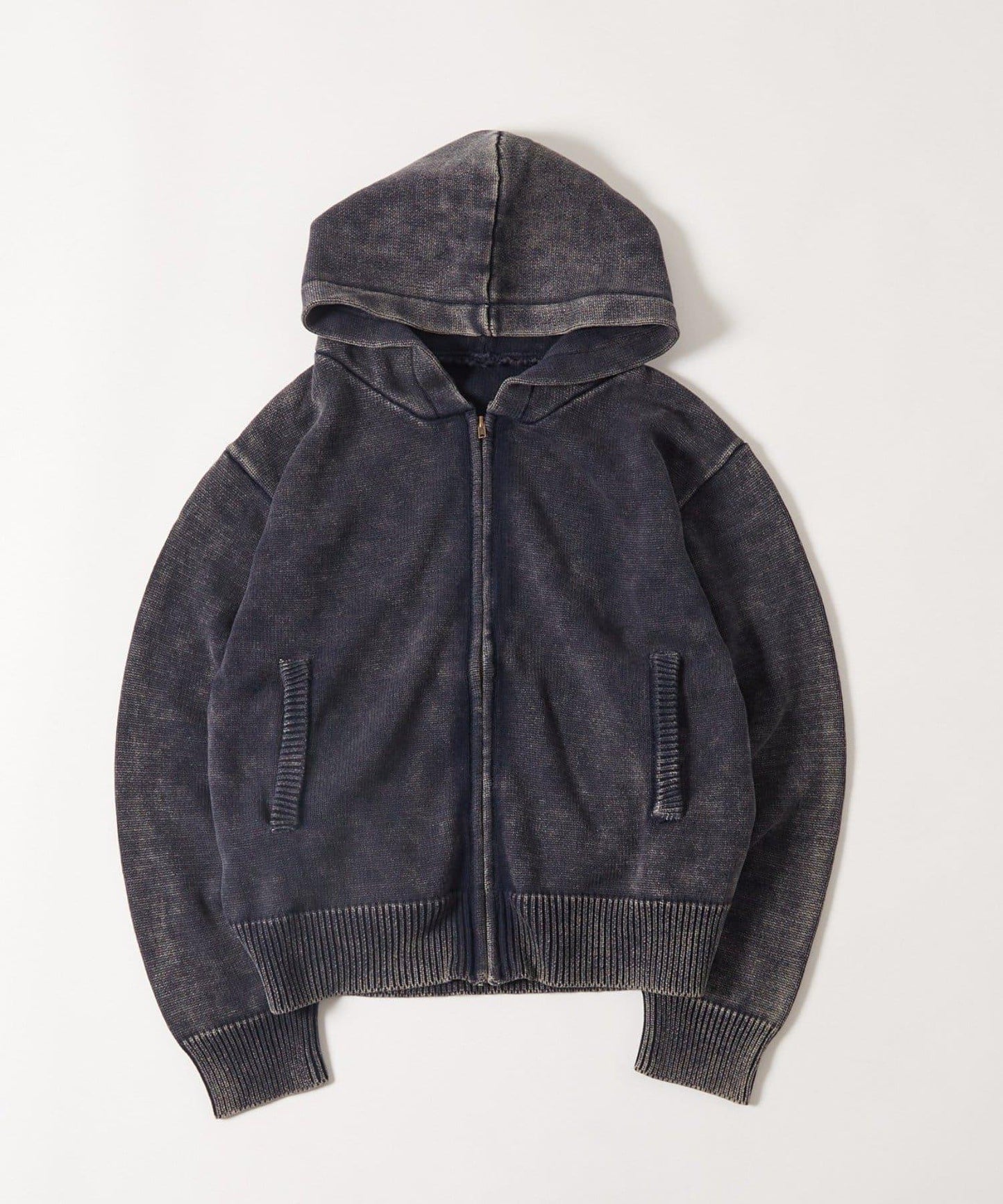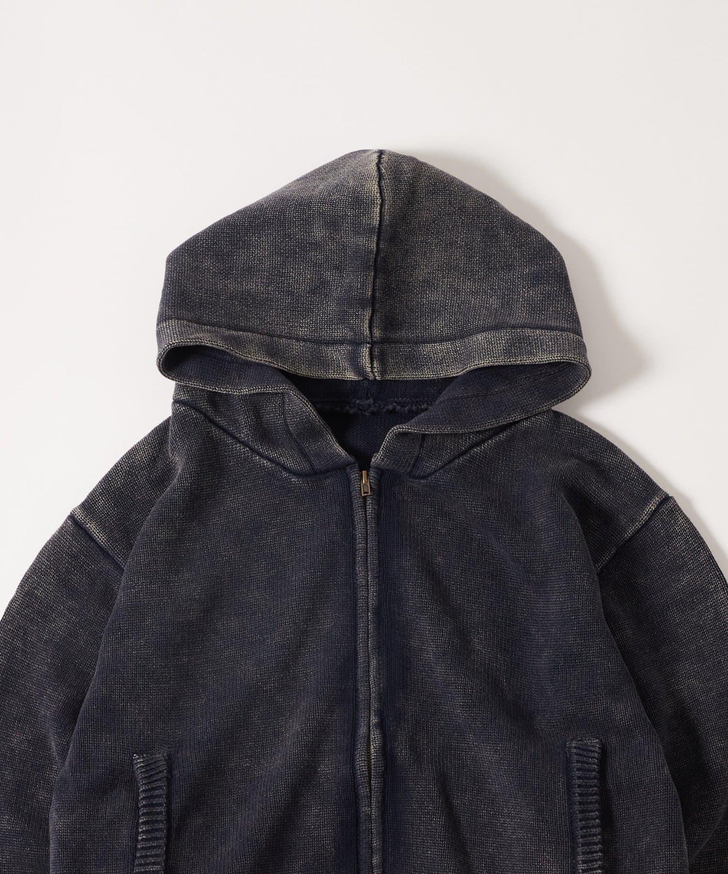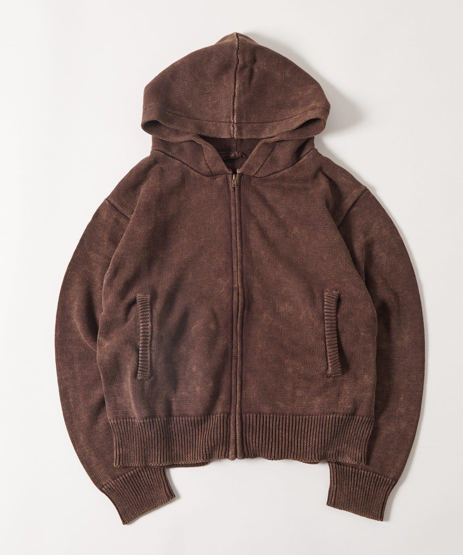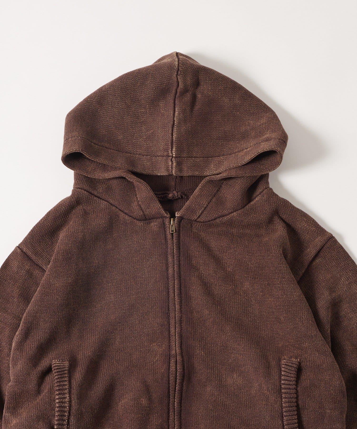 KOOKYN色素洗工藝拉鍊針織連帽衫