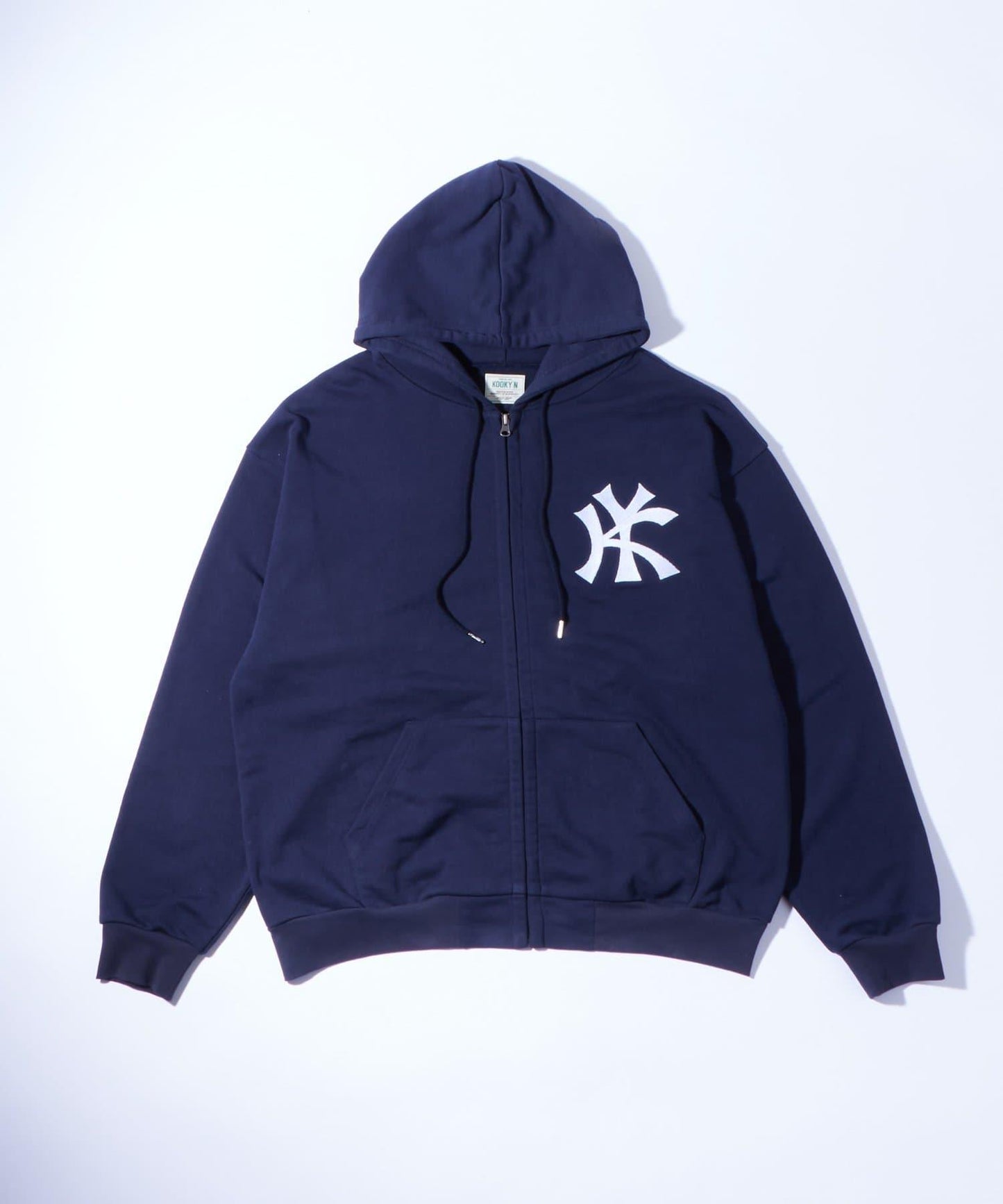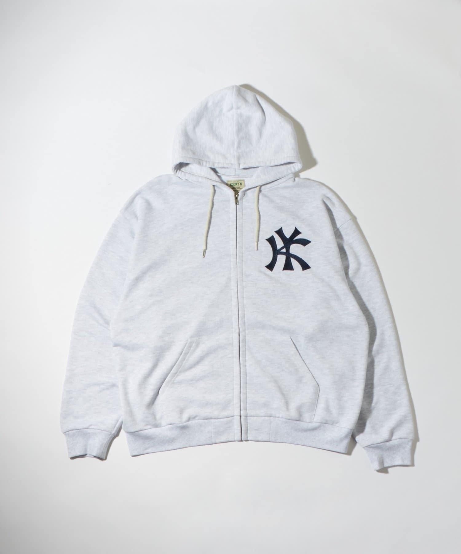 街頭風格的拉鍊連帽衫,胸前有醒目的 KY 刺繡。