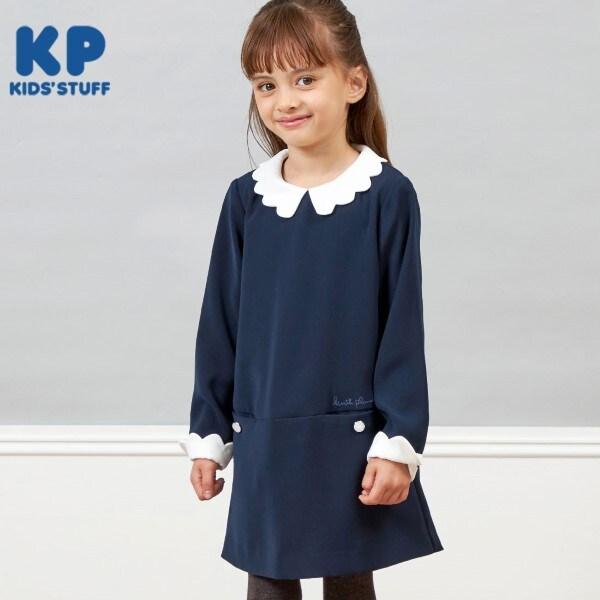 KP(ケーピー)白色翻領A字連衣裙(90~130)