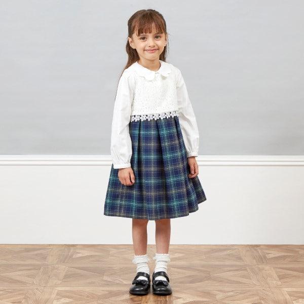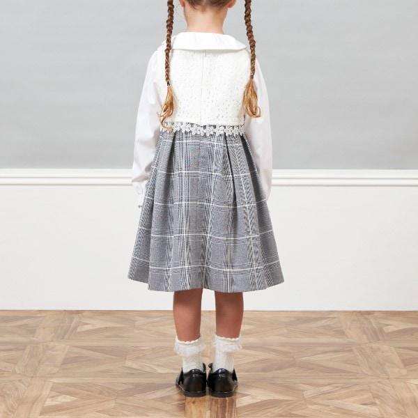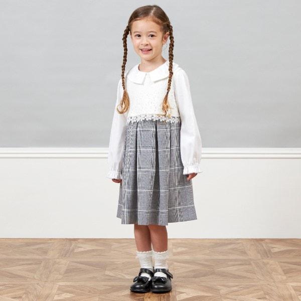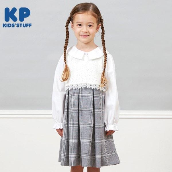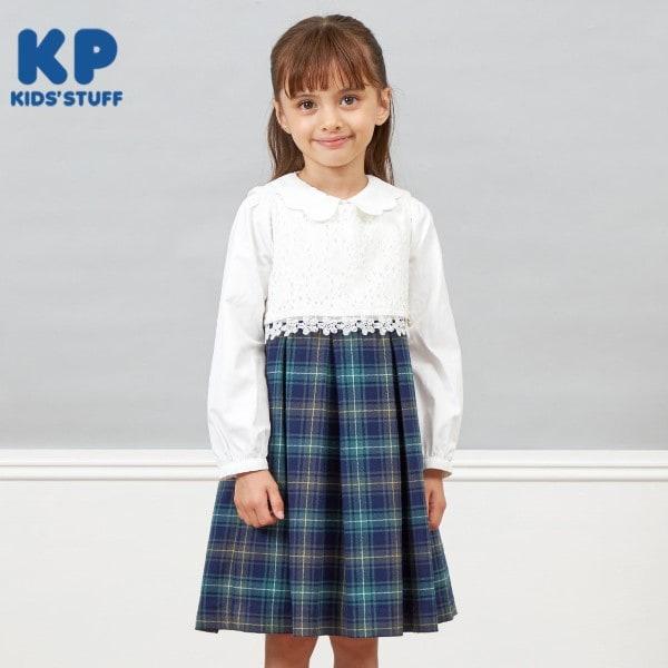 KP 格紋拼接蕾絲連衣裙(110~130)