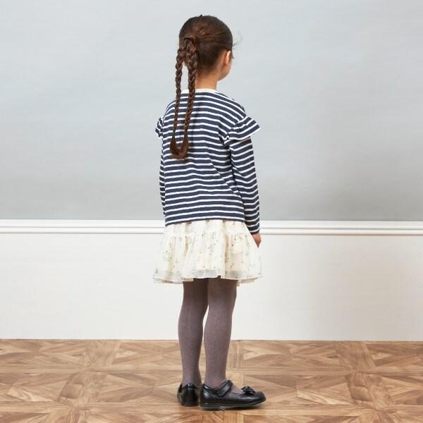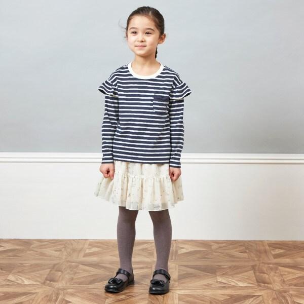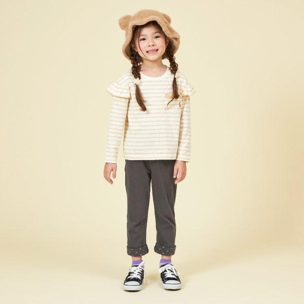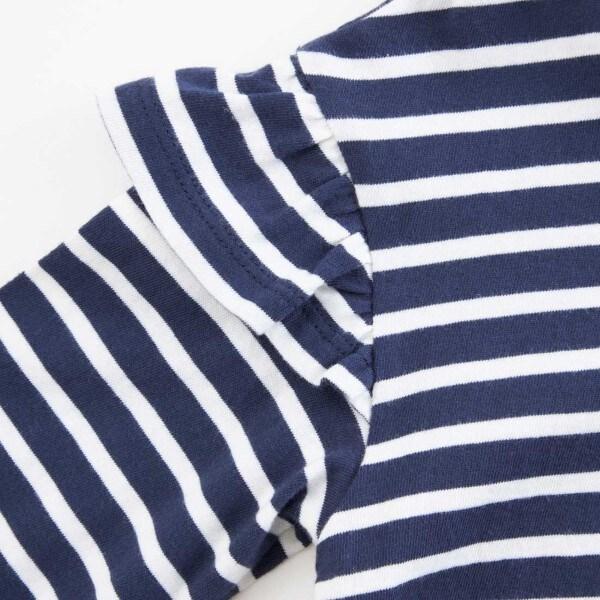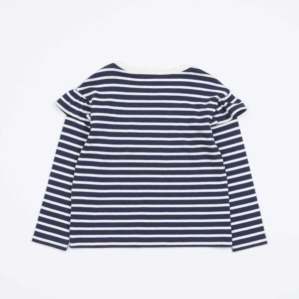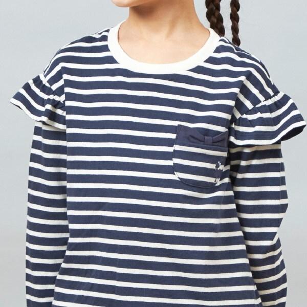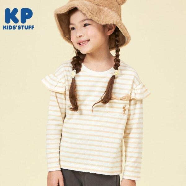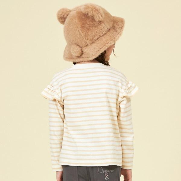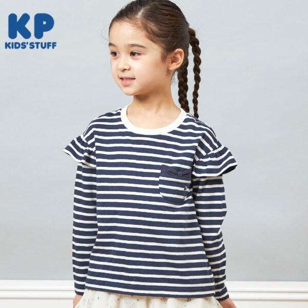 KP 肩部荷葉邊條紋長袖T恤(100~160)