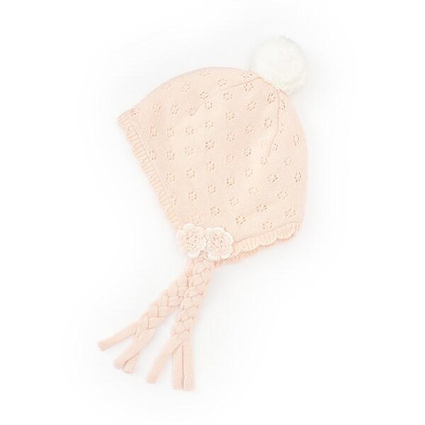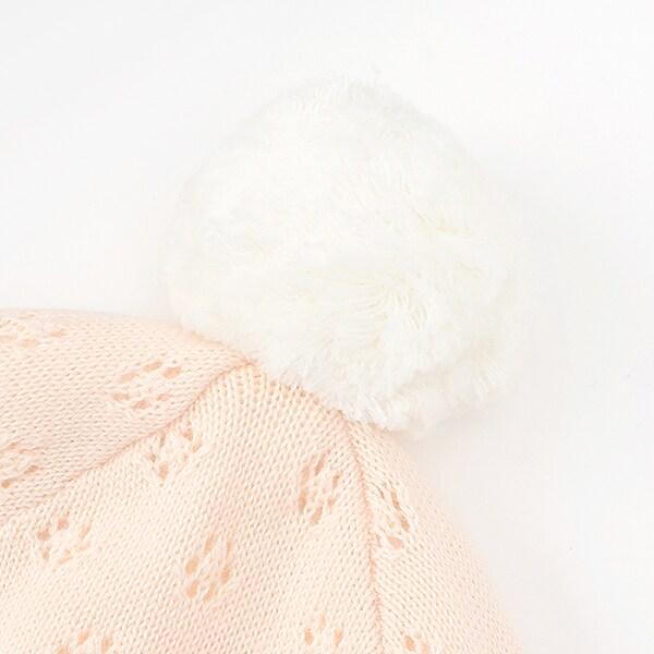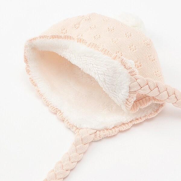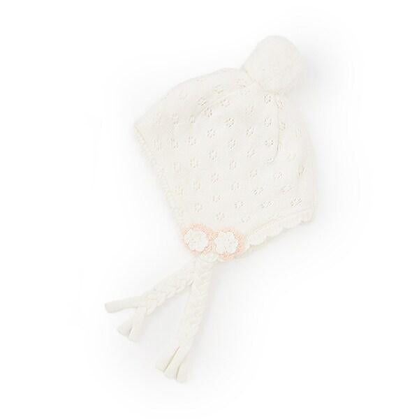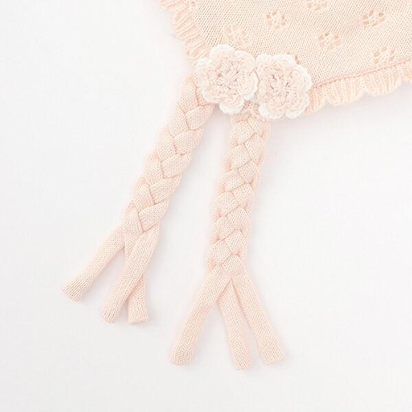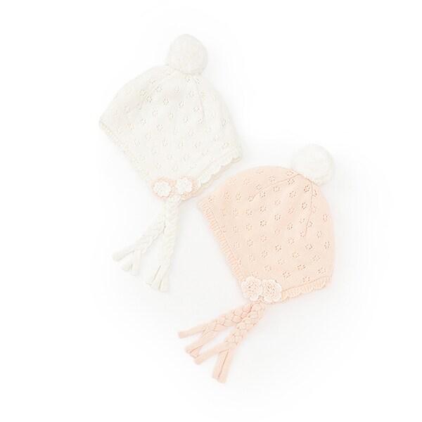 可愛的針織帽,帶有鏤空花卉圖案和花朵圖案。襯裡採用蟒蛇皮材質,厚度適中,保暖性強。與同材質的連衣裙和套裙搭配也很可愛♪建議作為禮物贈送。尺寸] 44-46 厘米