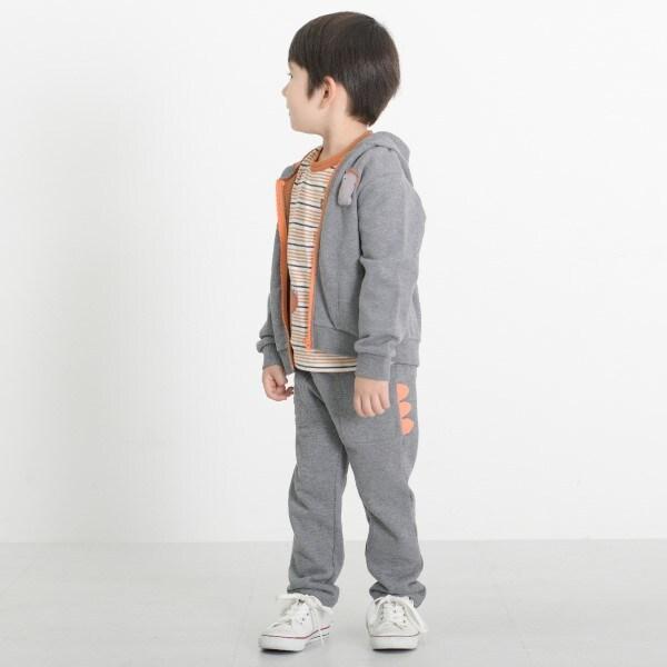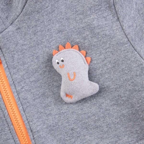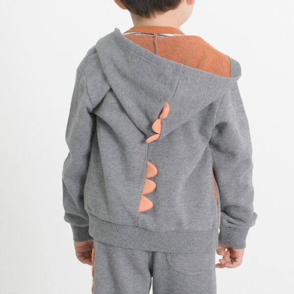 連帽衫,背部有彩色編碼。左胸口可愛的 3D 恐龍圖案...... ? 連帽衫和後背的犄角是一大特色。通過口袋可以看到的色彩搭配是點睛之筆。有一件這樣的單品就可以抵禦寒冷,非常方便。