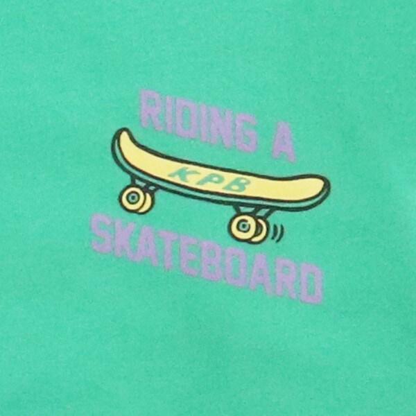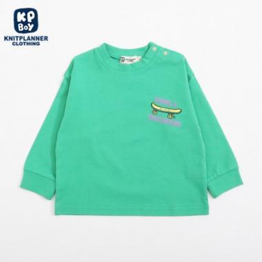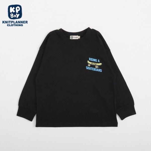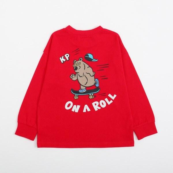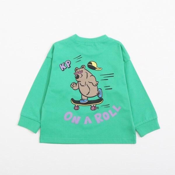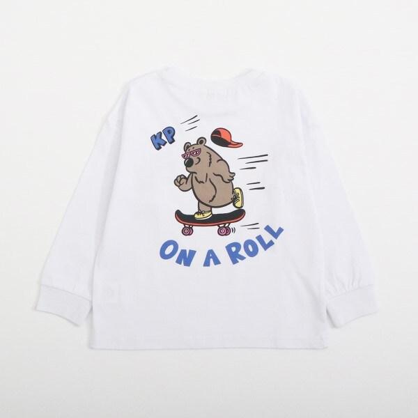 針織長袖 T 恤,後身印有有趣的滑板熊圖案。左胸前也有滑板印花。簡潔的設計使其易於搭配。