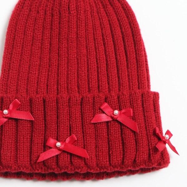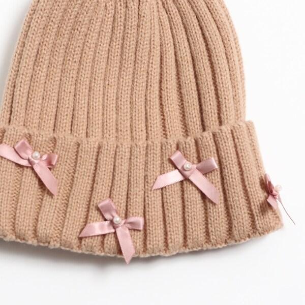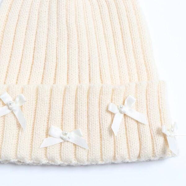 KPDECO 珍珠蝴蝶結裝飾針織帽(M~L)