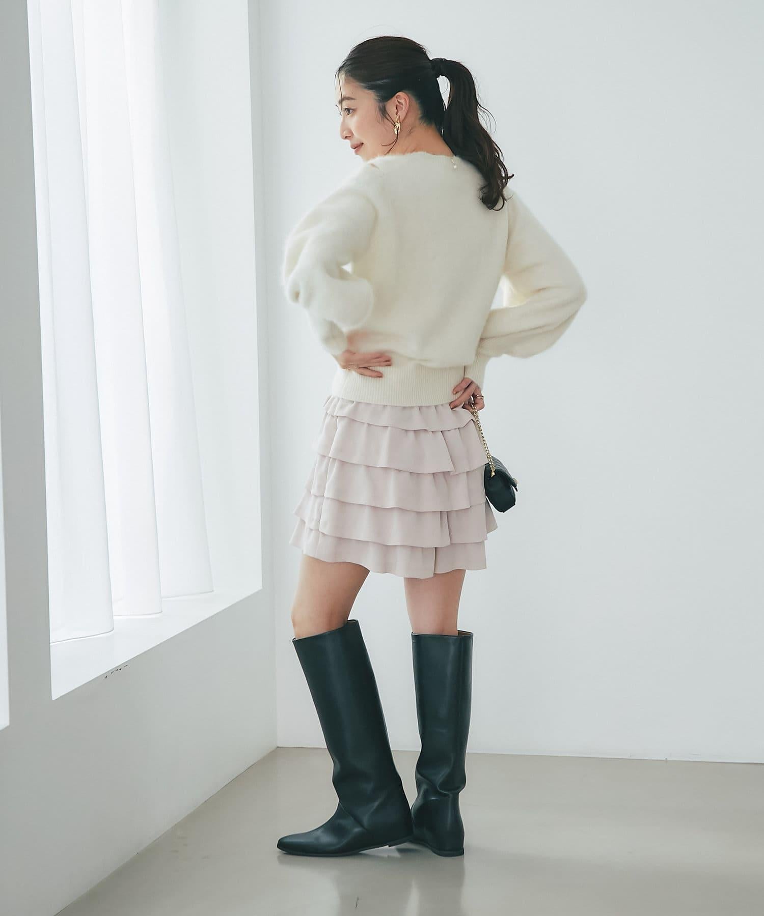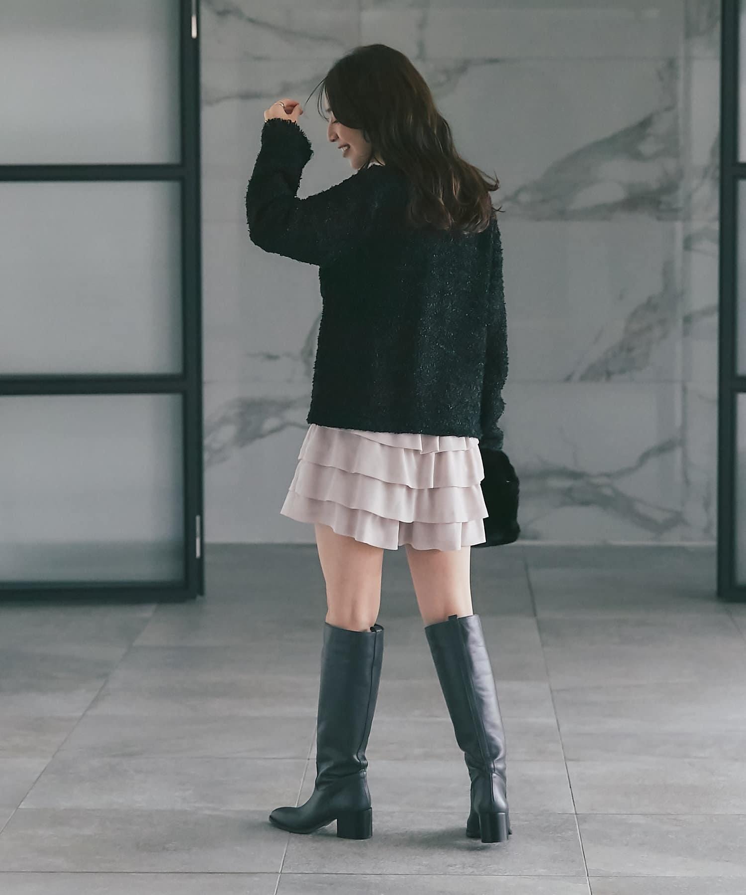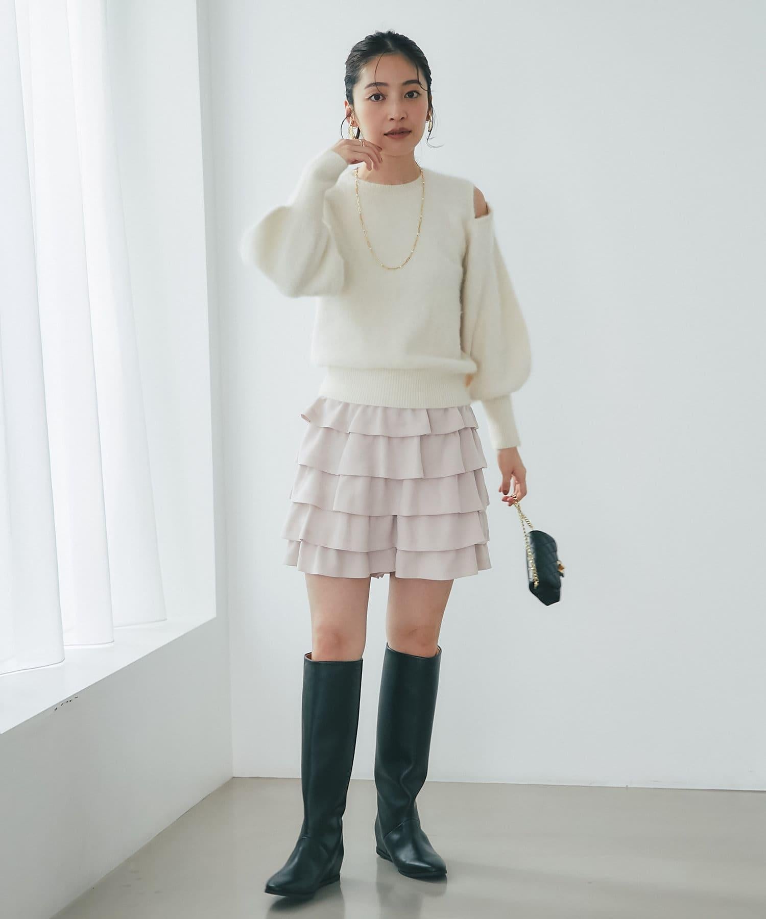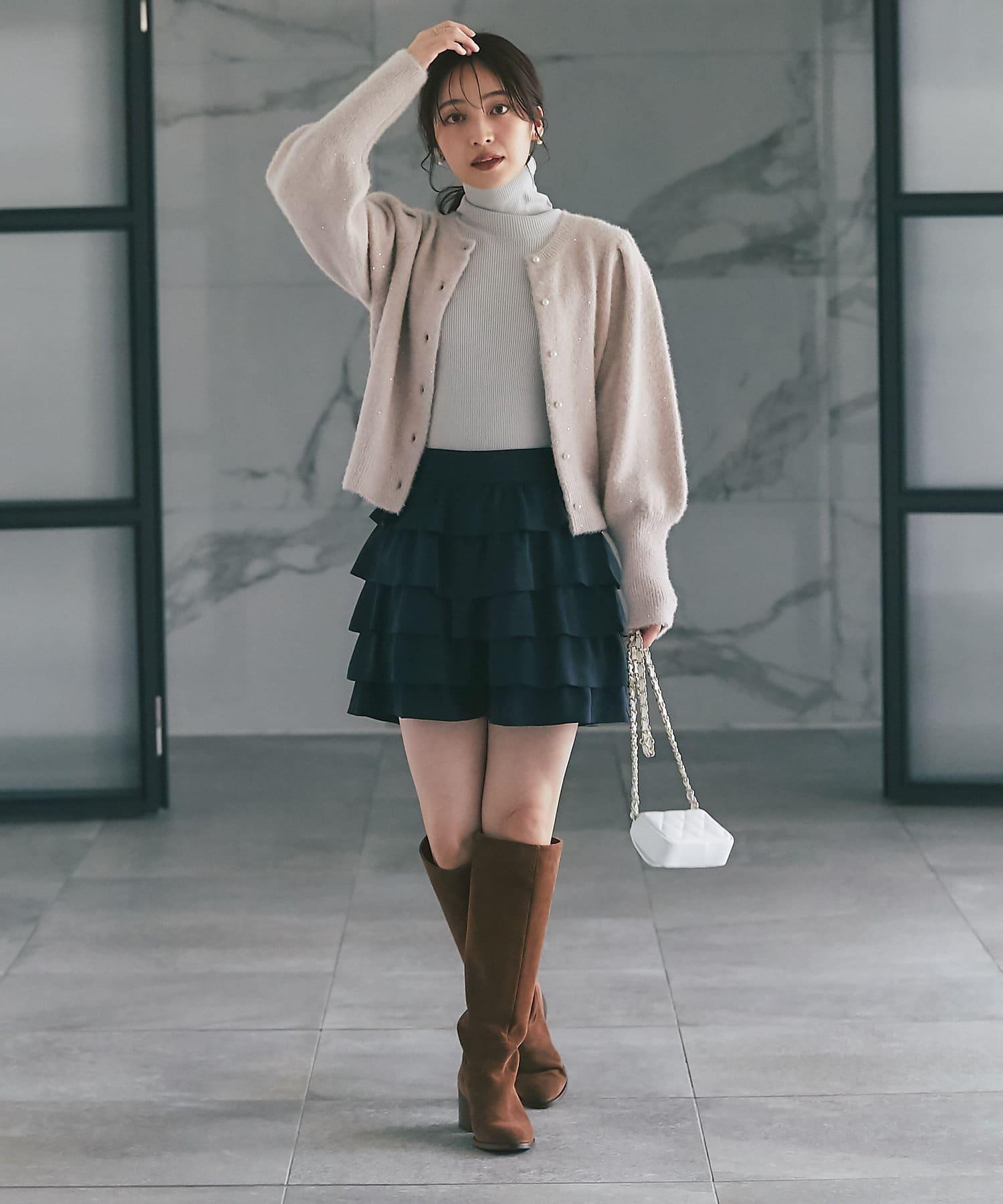 建議在毛茸茸的針織衫或長款上衣下搭配荷葉邊。