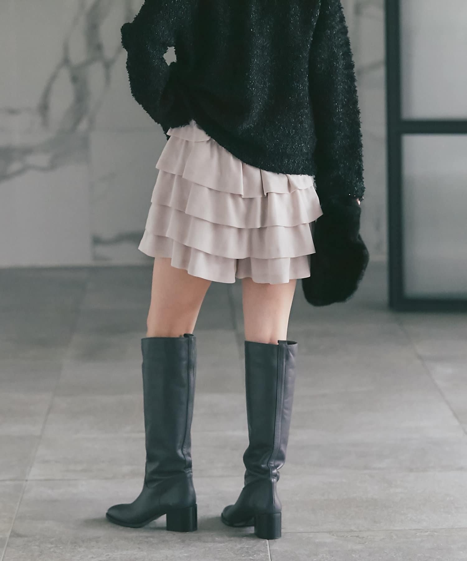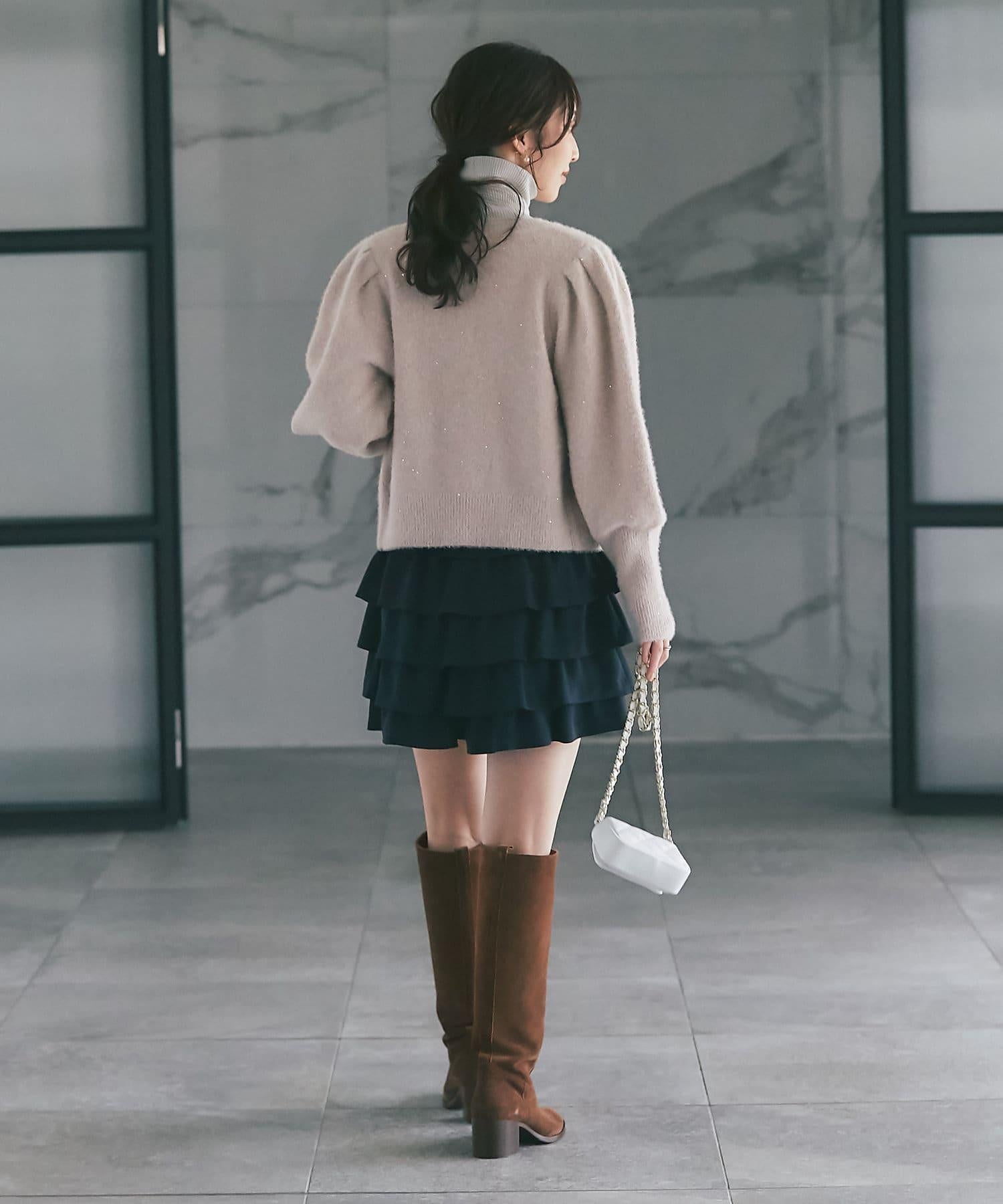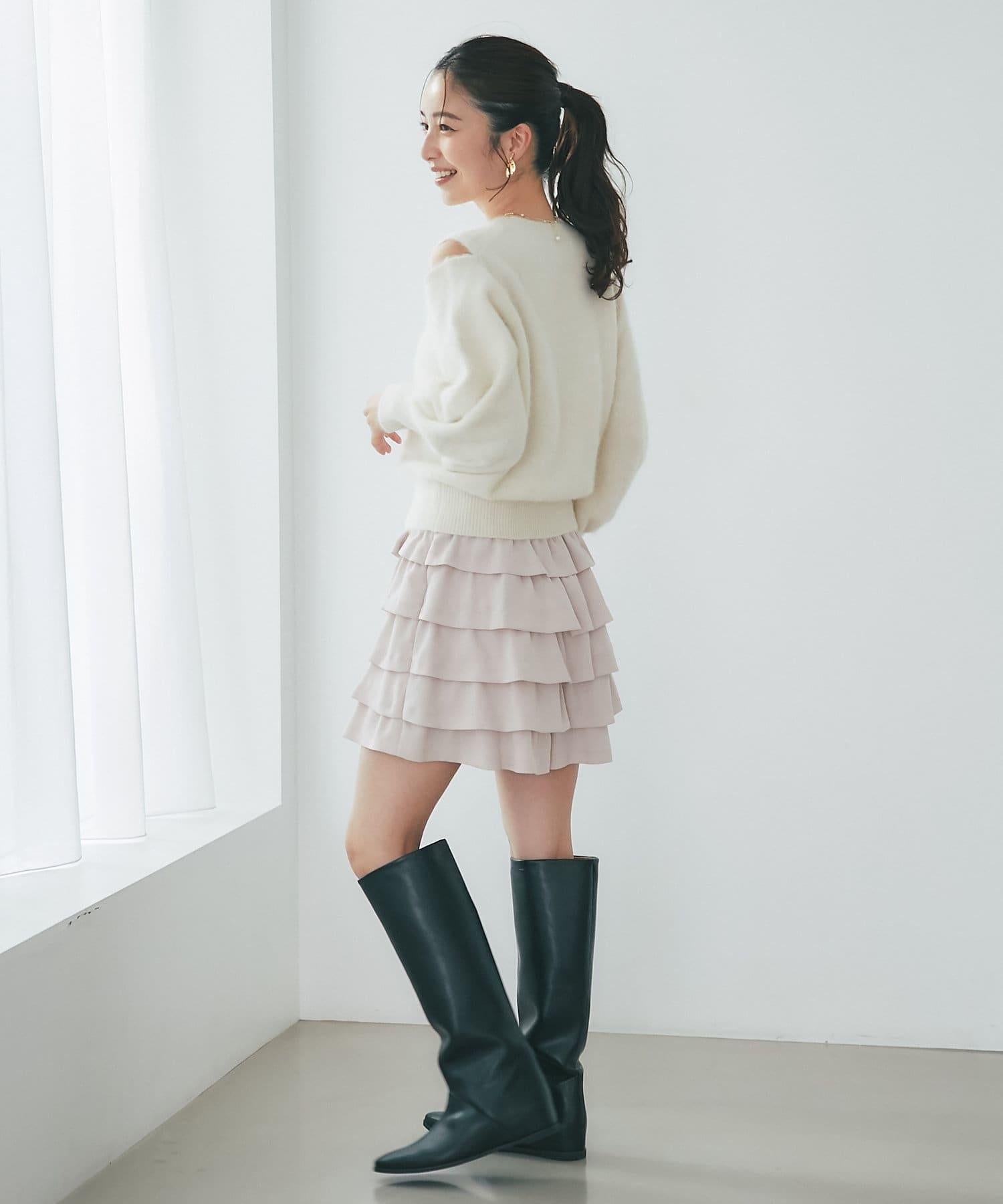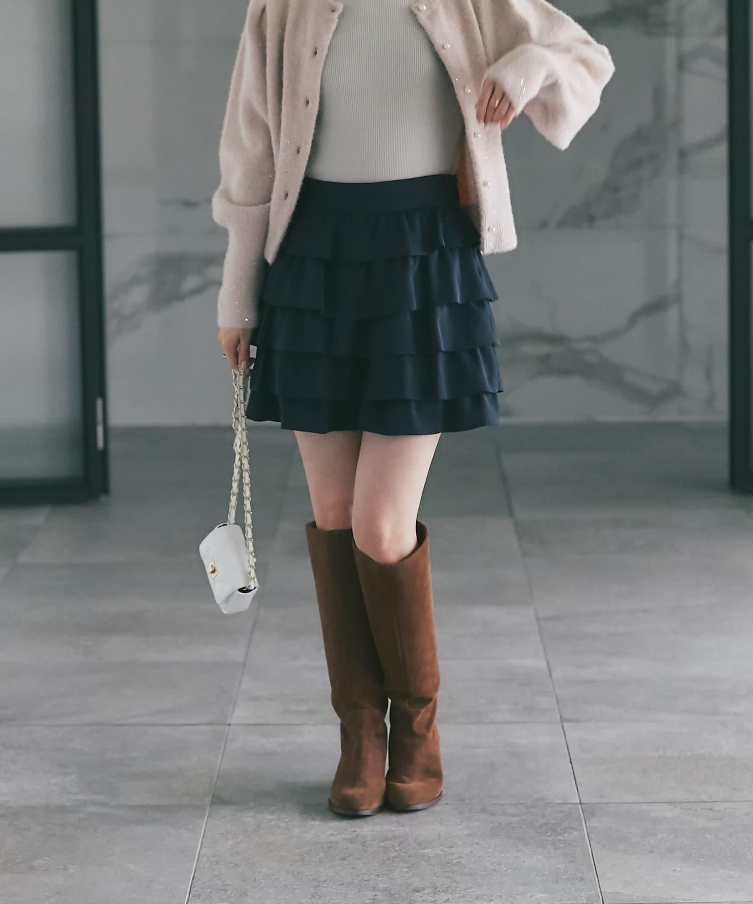 建議在毛茸茸的針織衫或長款上衣下搭配荷葉邊。