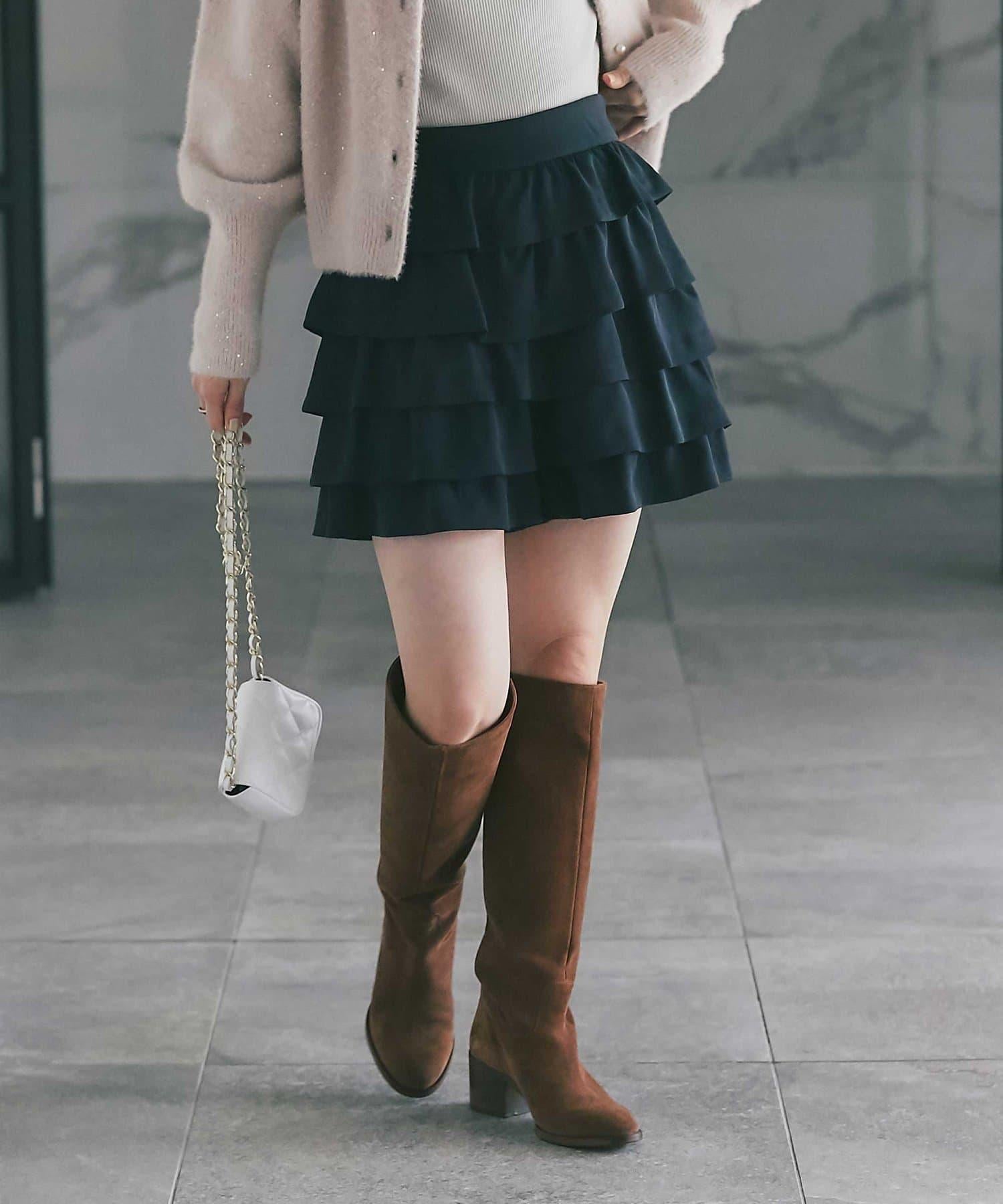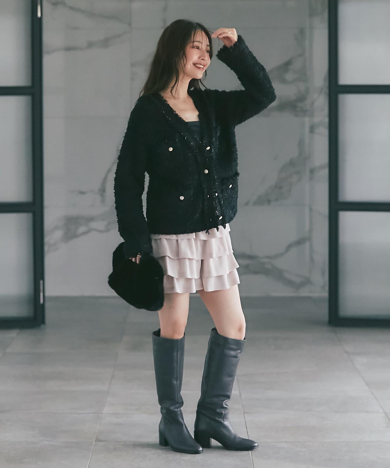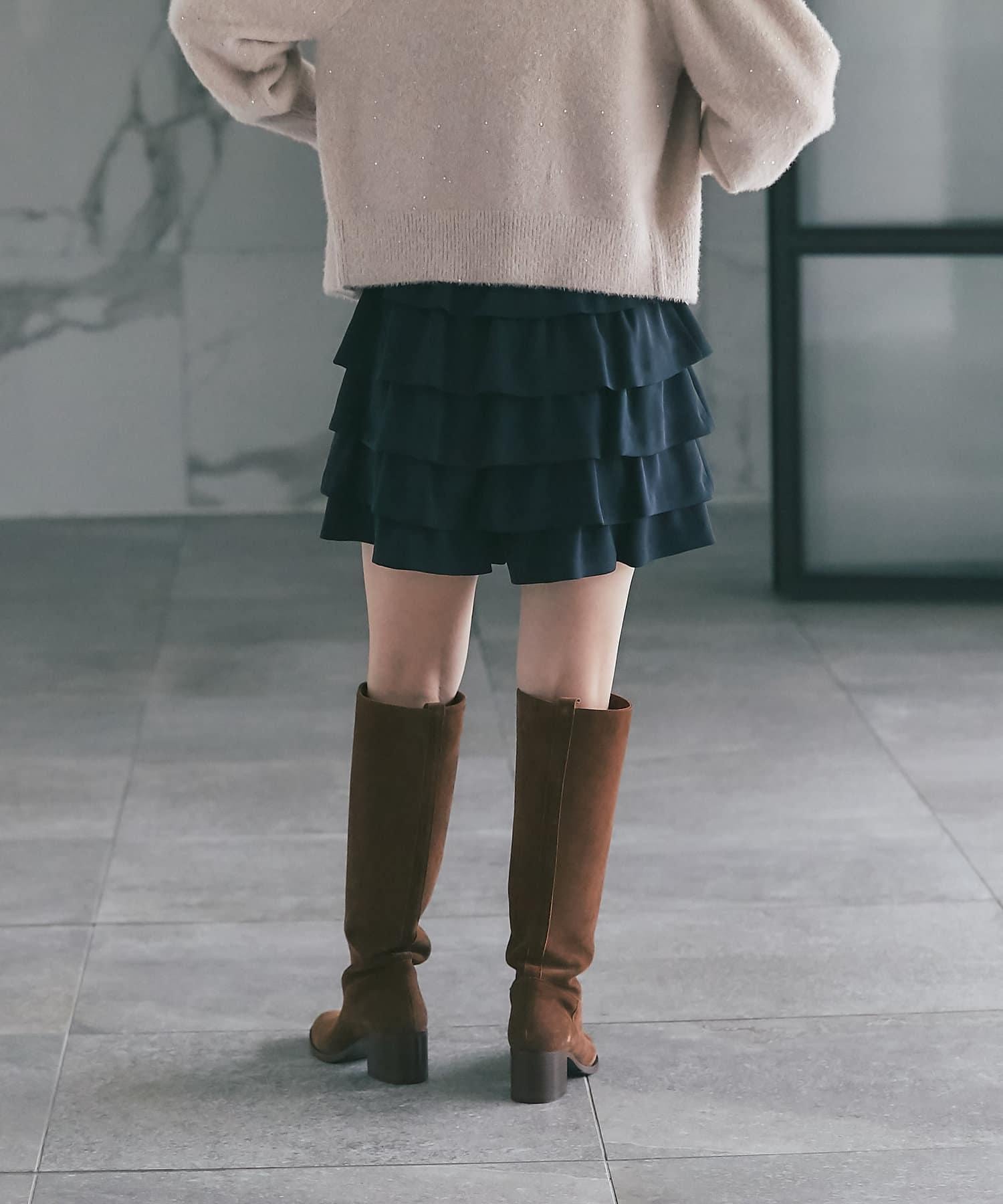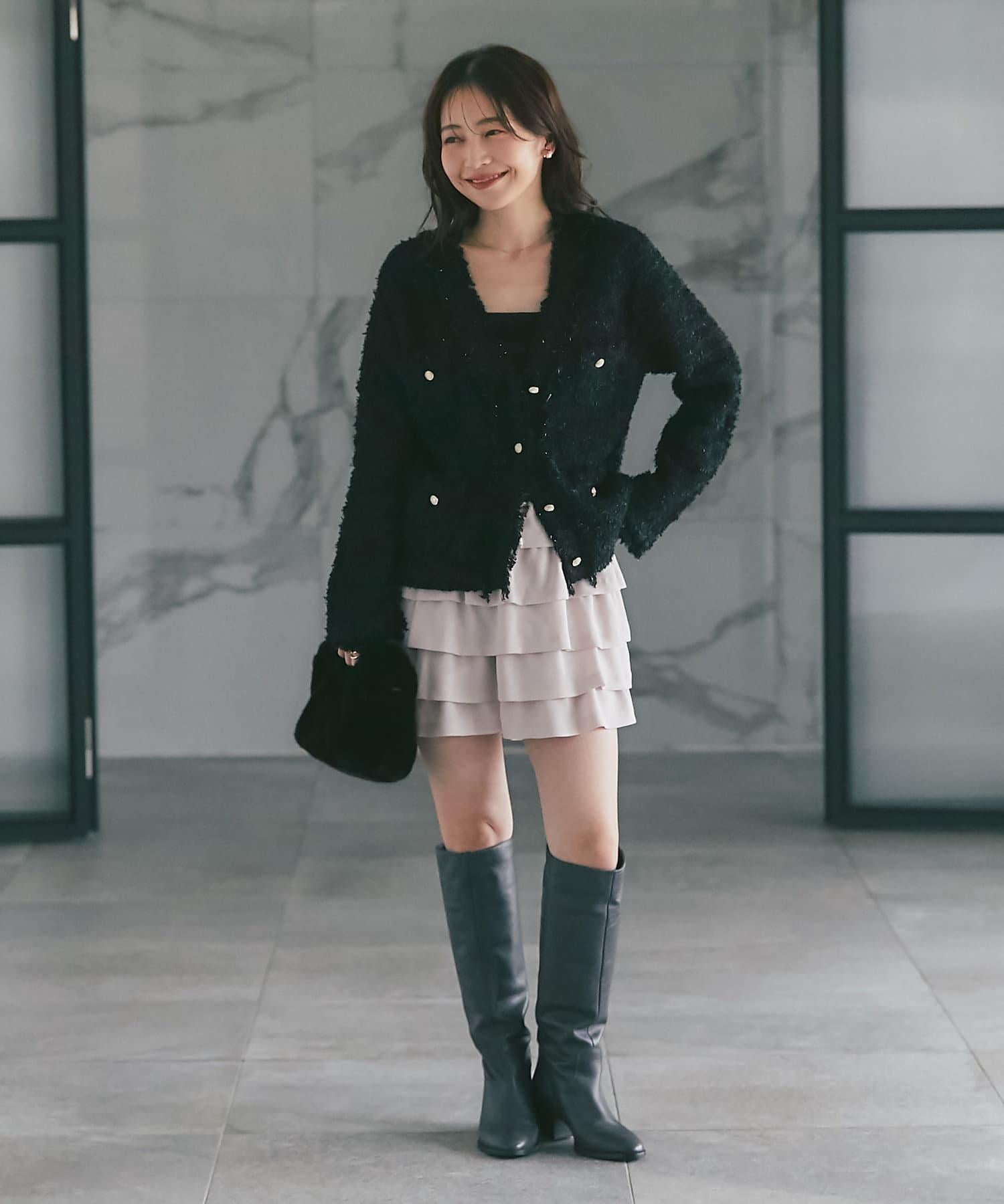 建議在毛茸茸的針織衫或長款上衣下搭配荷葉邊。