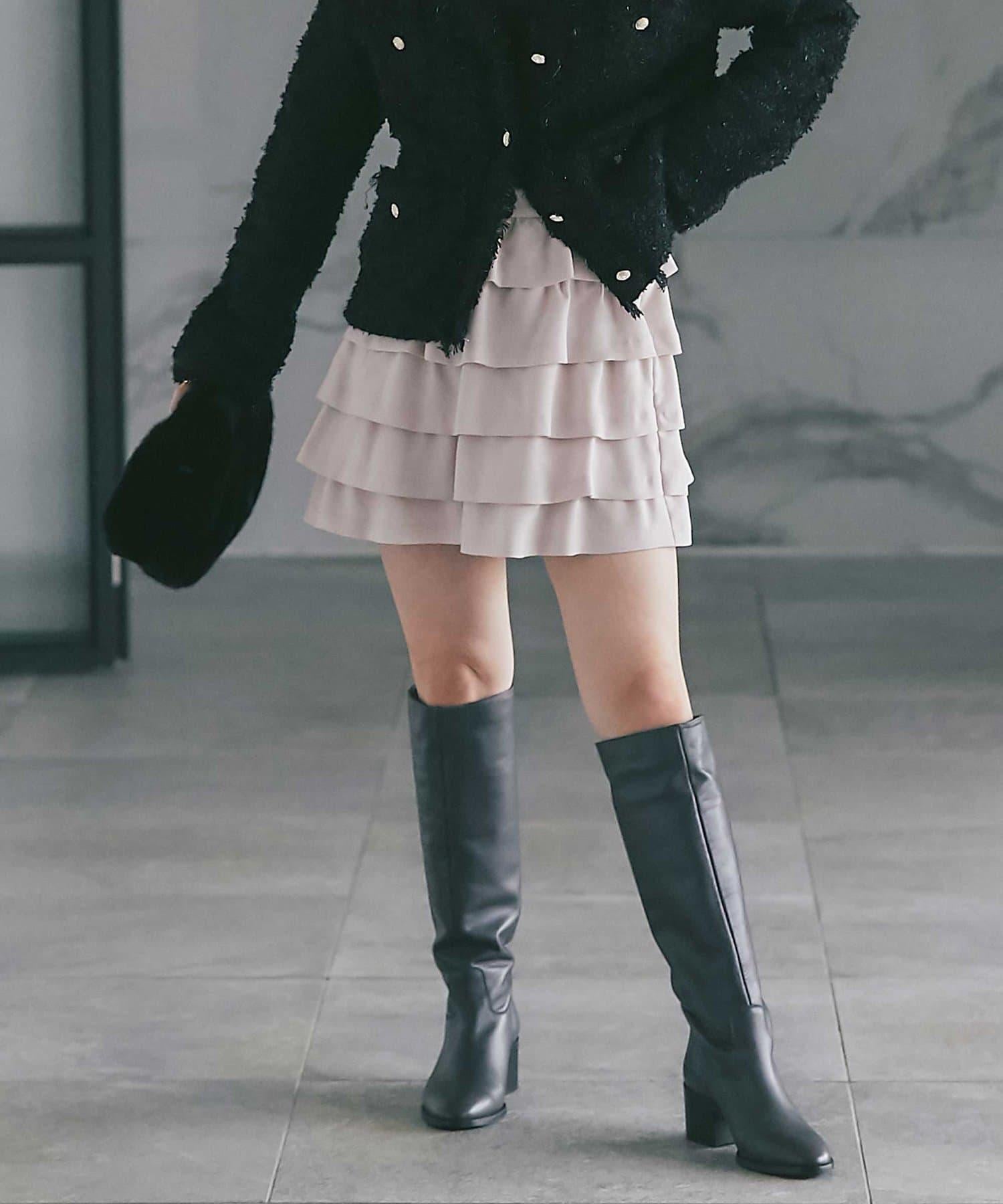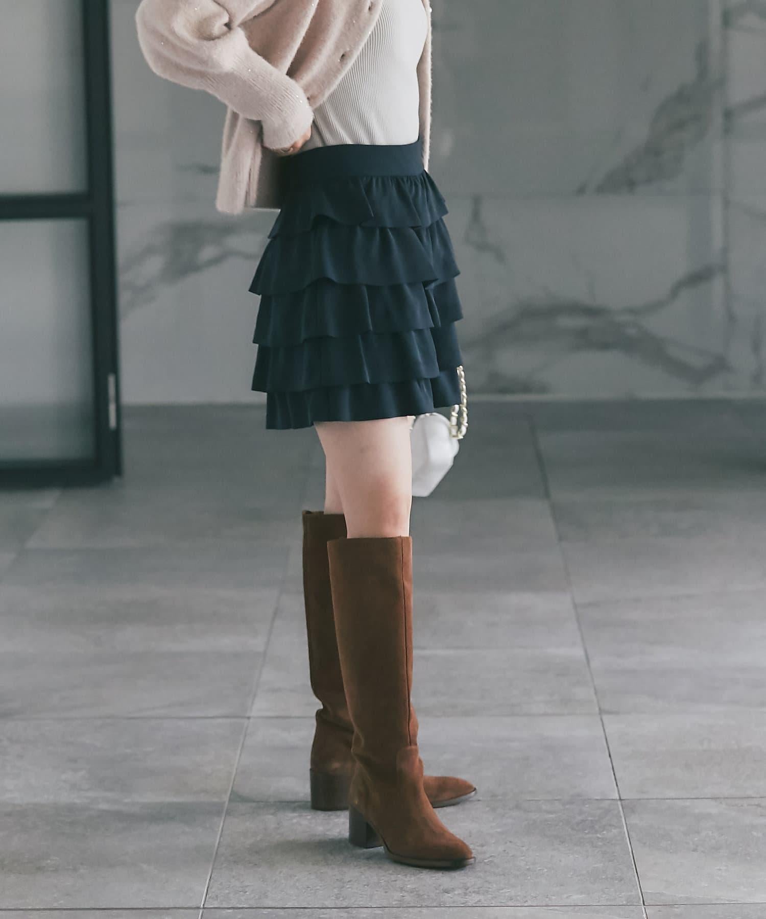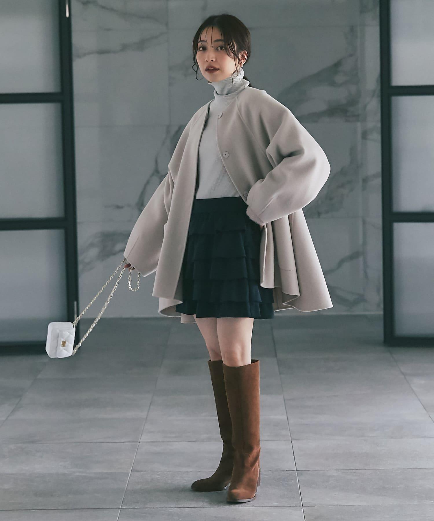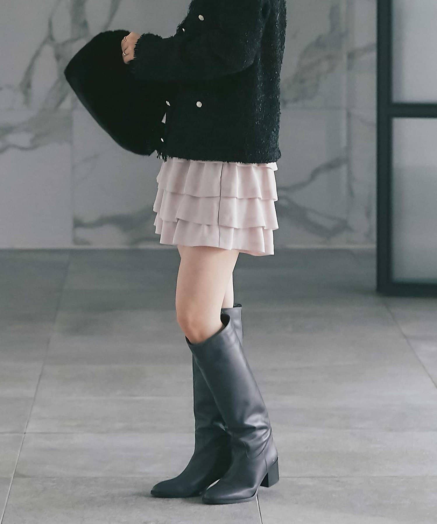建議在毛茸茸的針織衫或長款上衣下搭配荷葉邊。