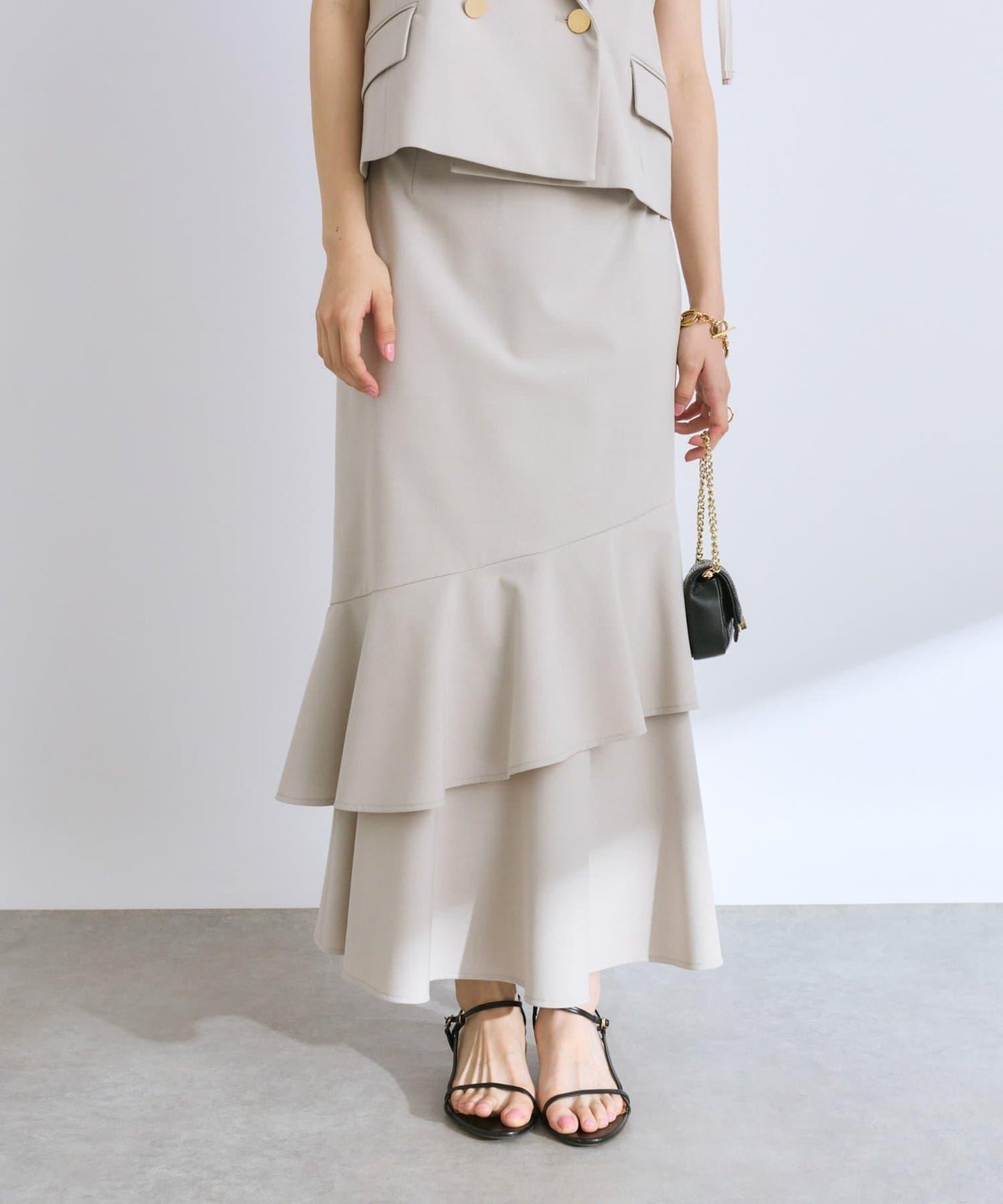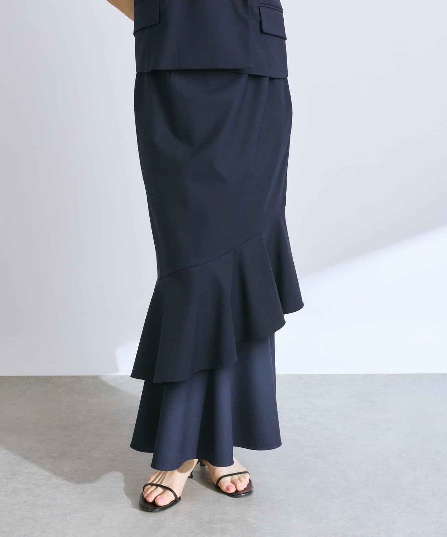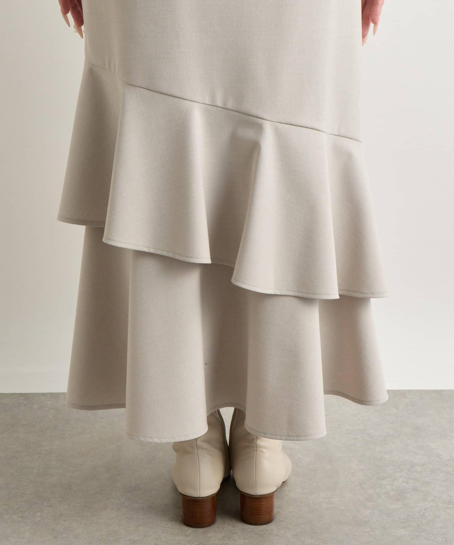 下襬過渡處的兩層荷葉邊設計