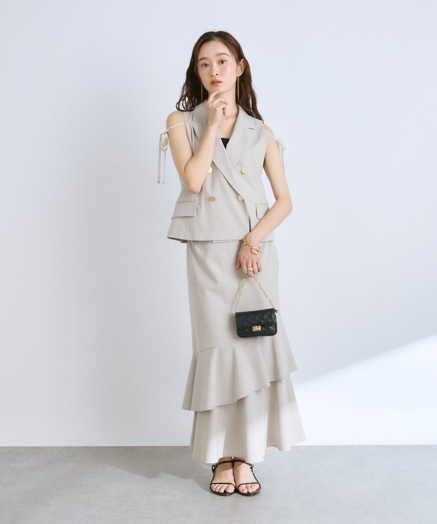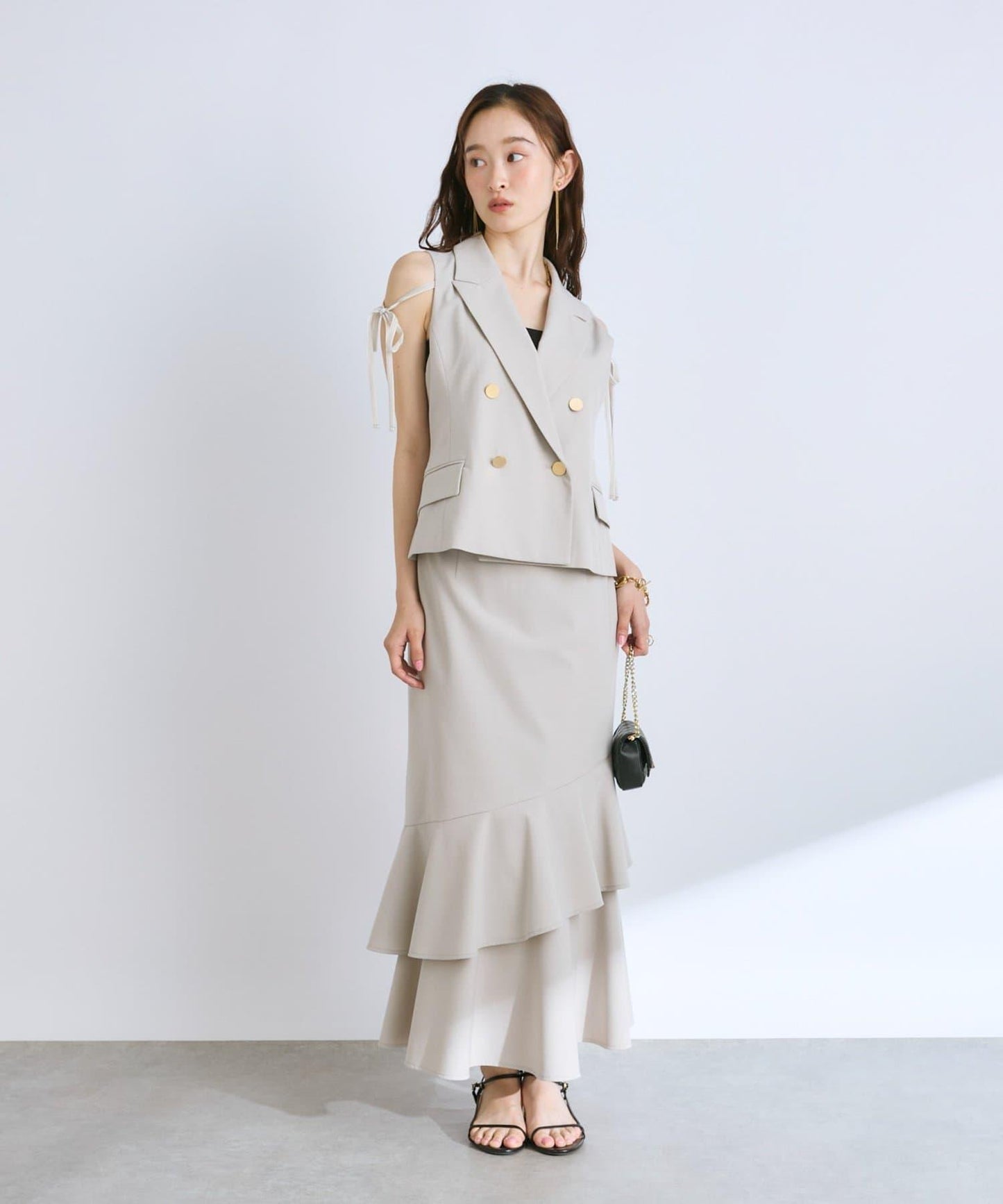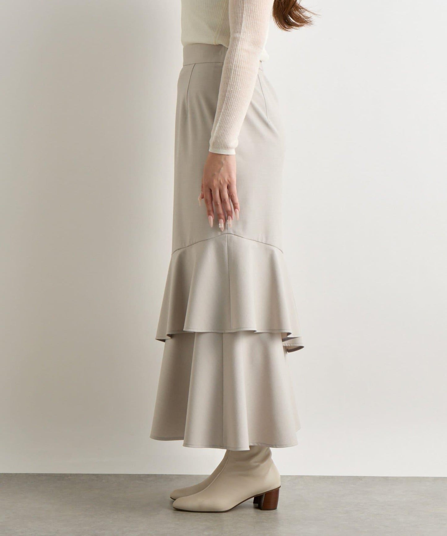 下襬過渡處的兩層荷葉邊設計