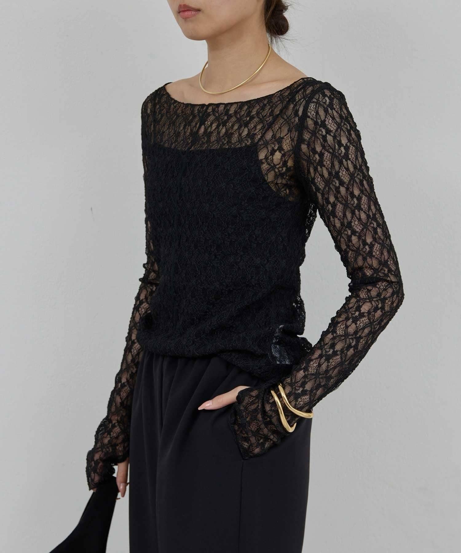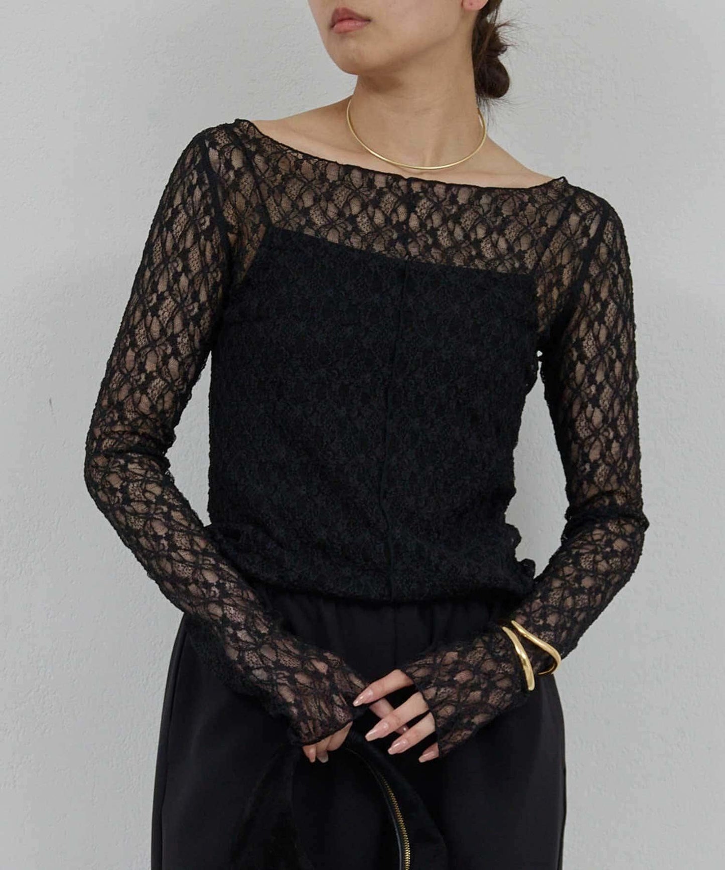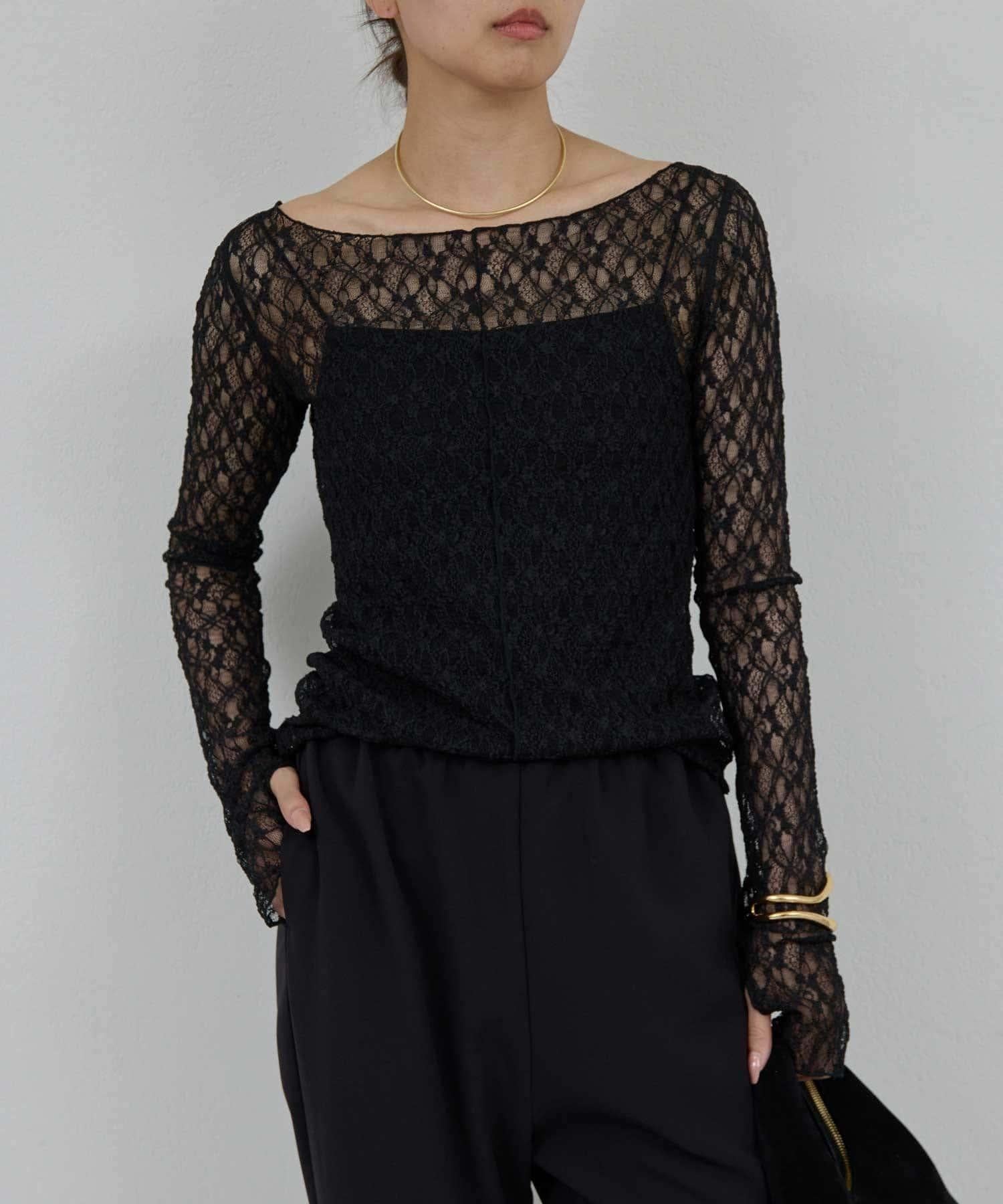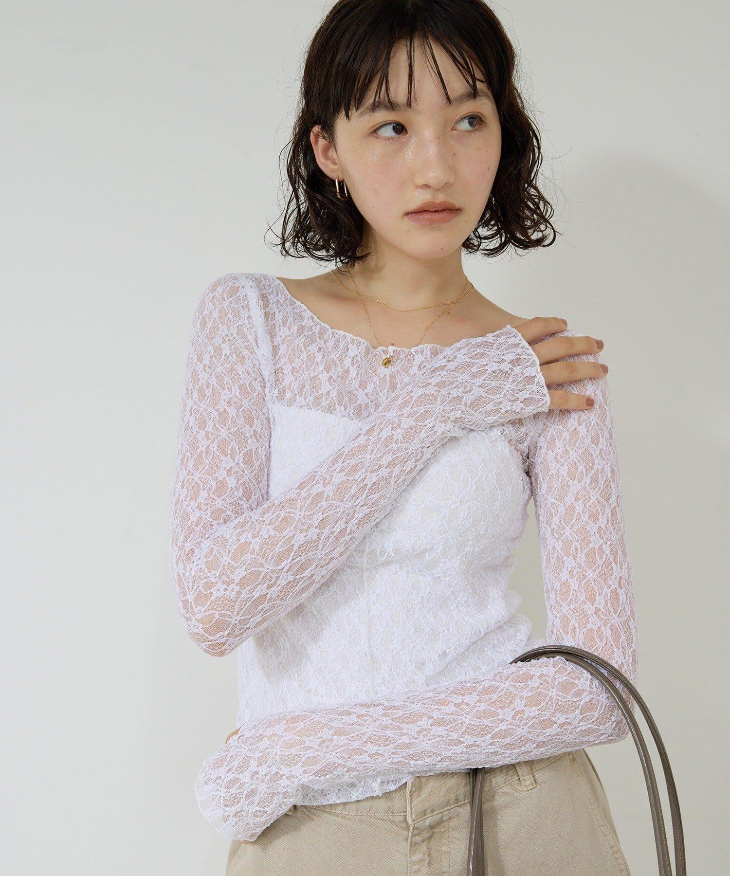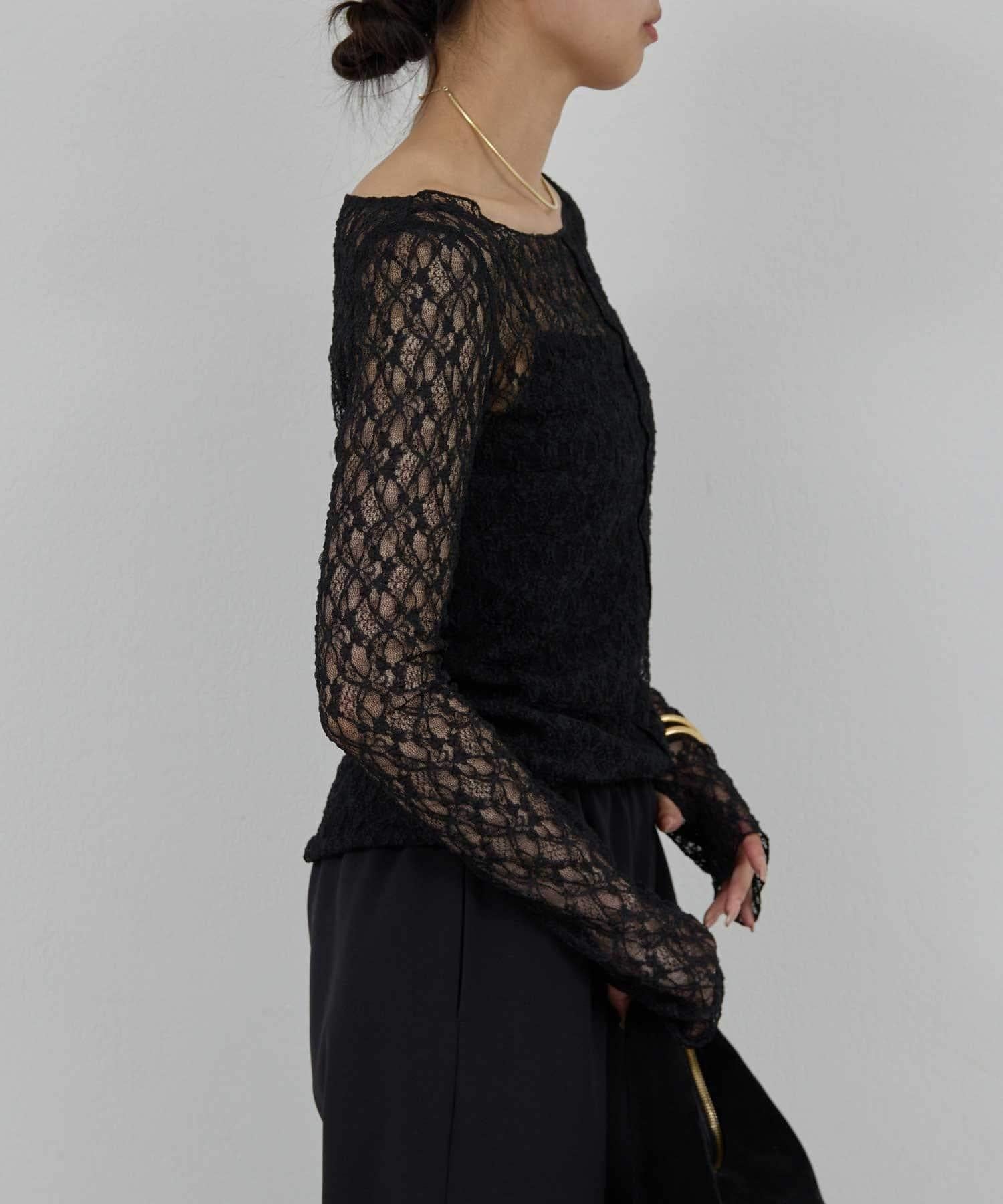 長袖剪裁縫製的蕾絲面料,比上衣更寬鬆。