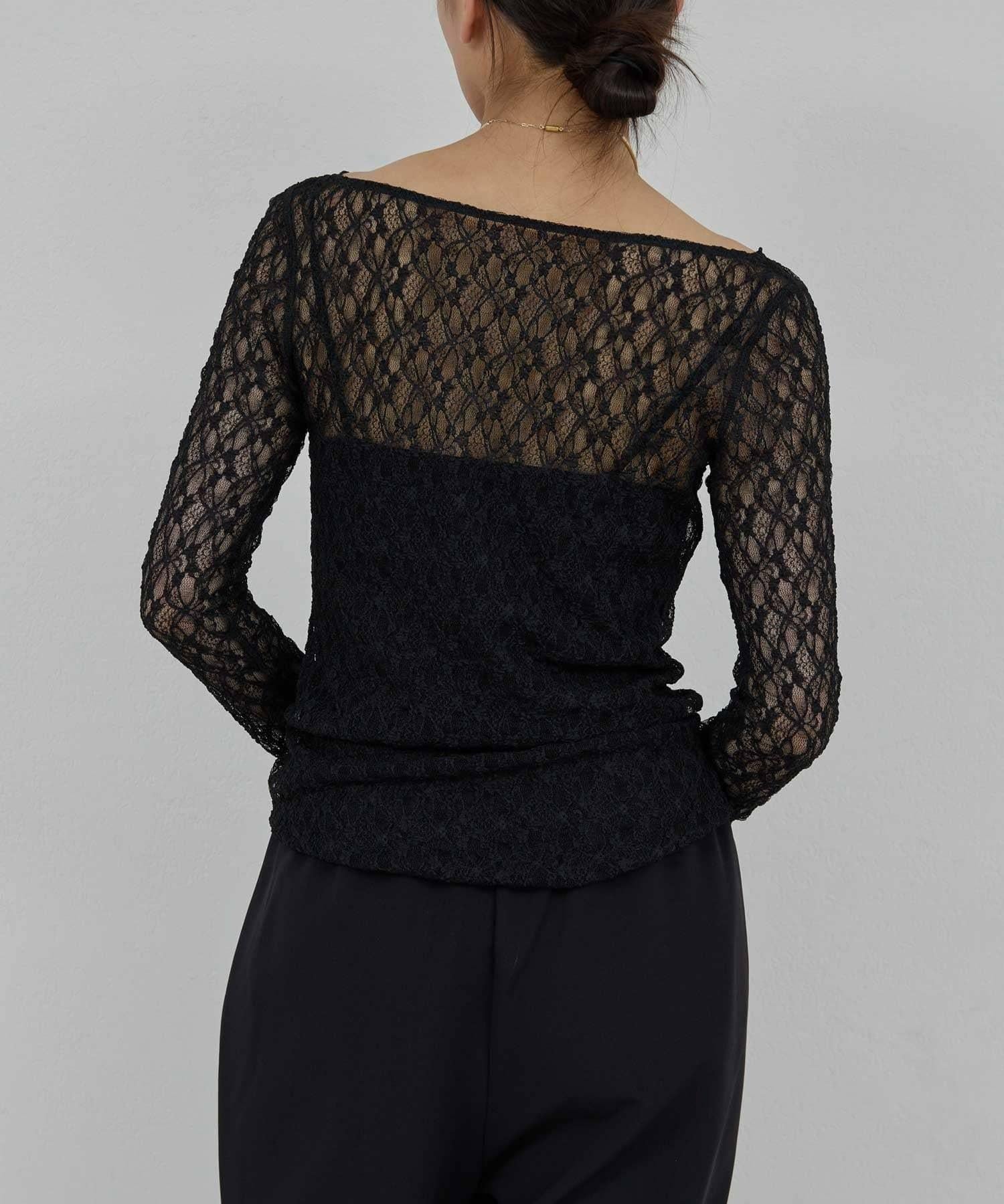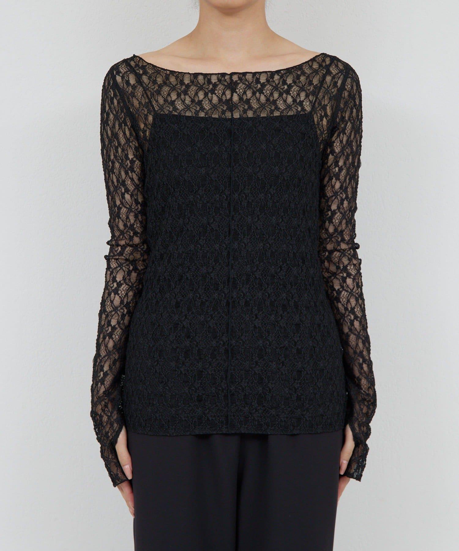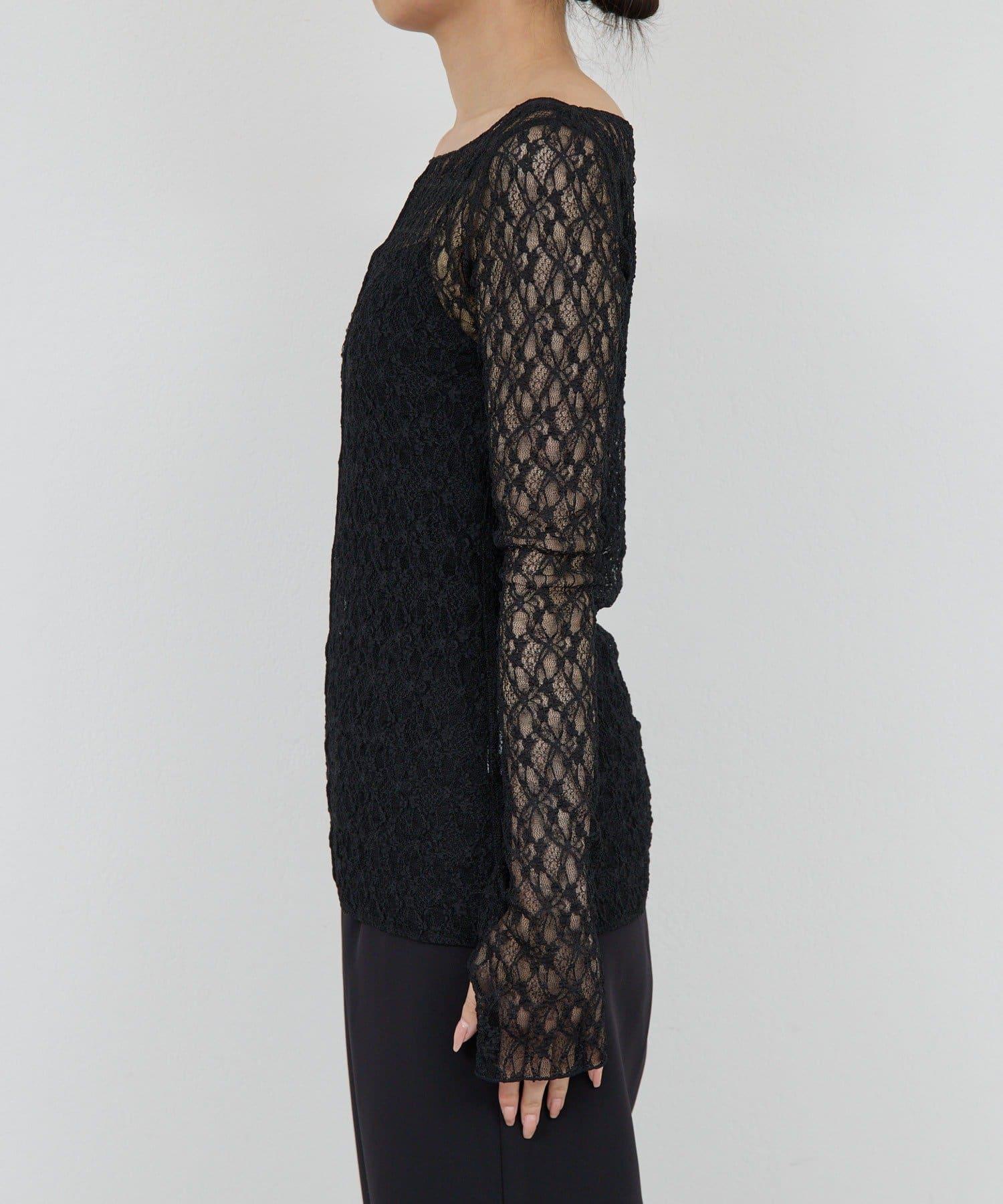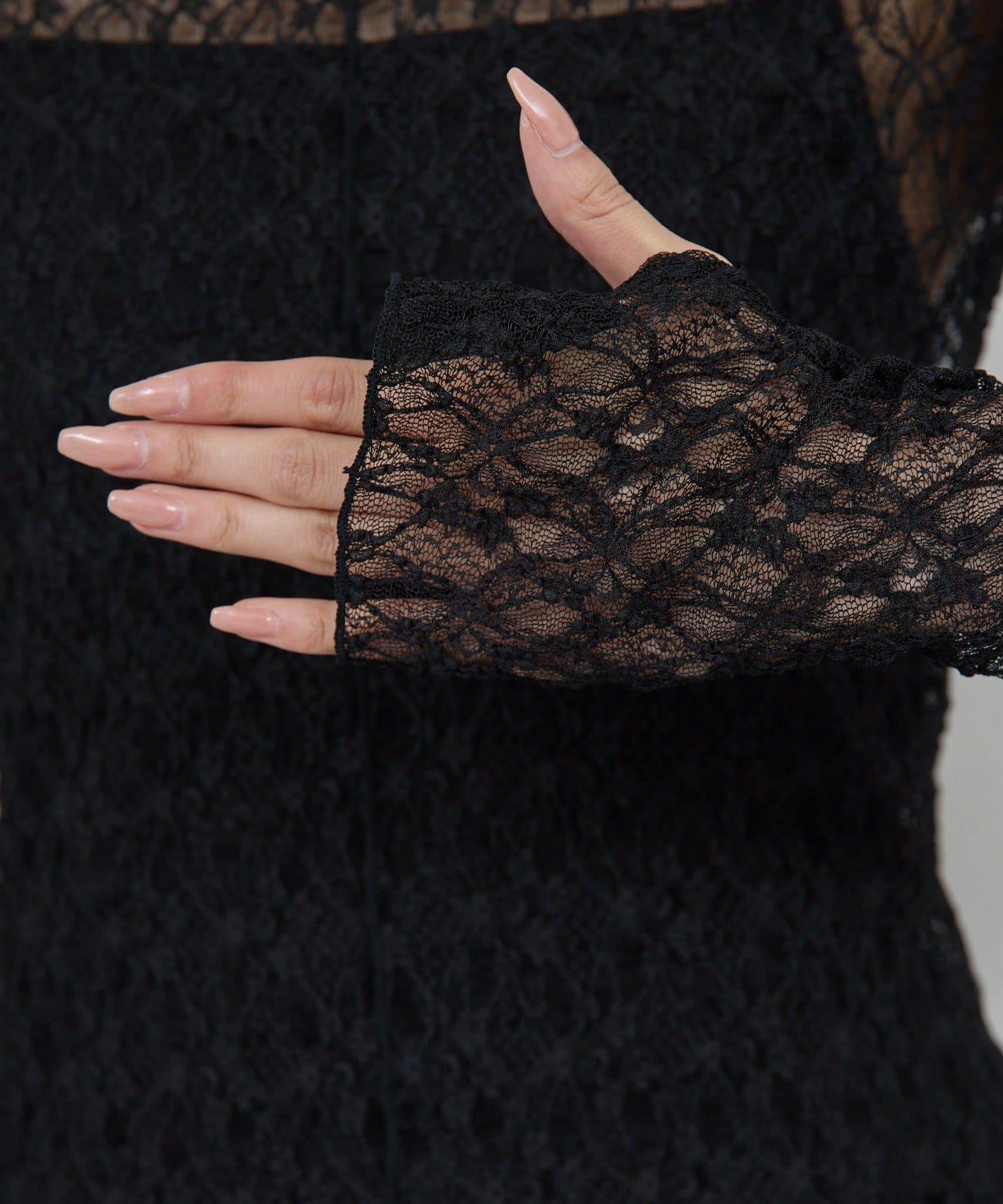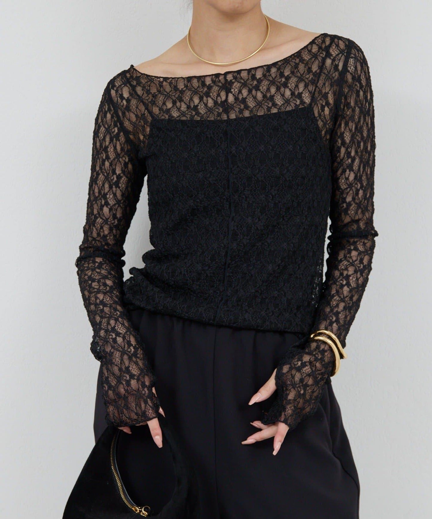 長袖剪裁縫製的蕾絲面料,比上衣更寬鬆。