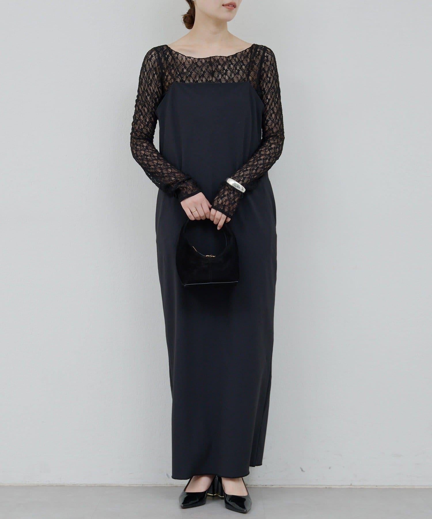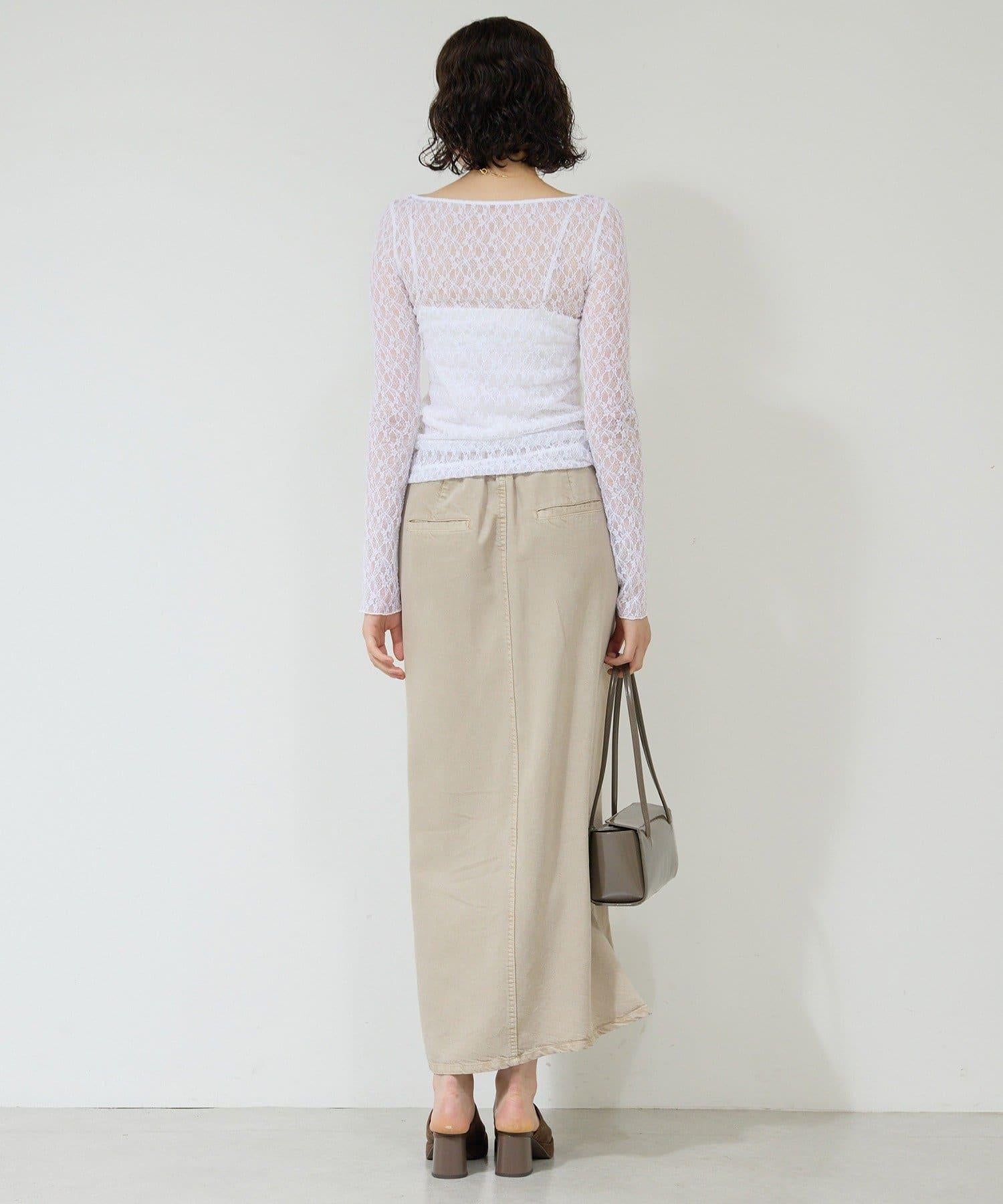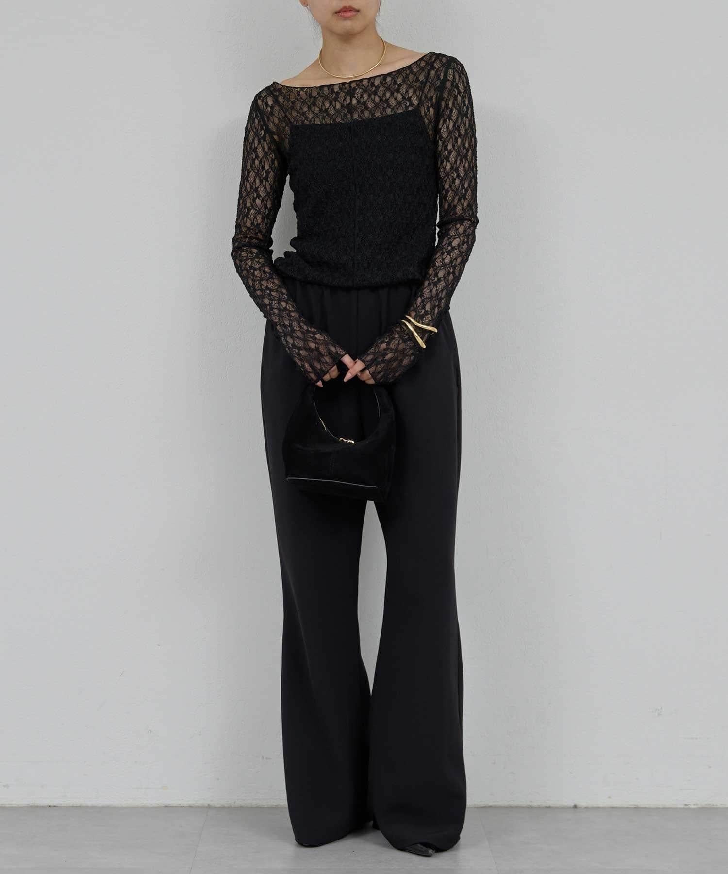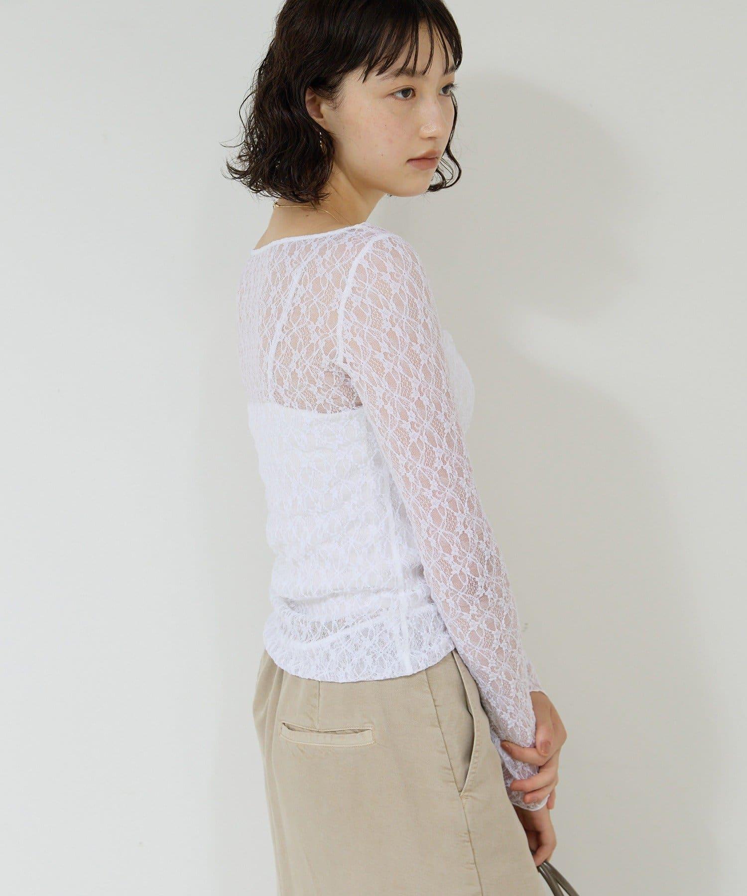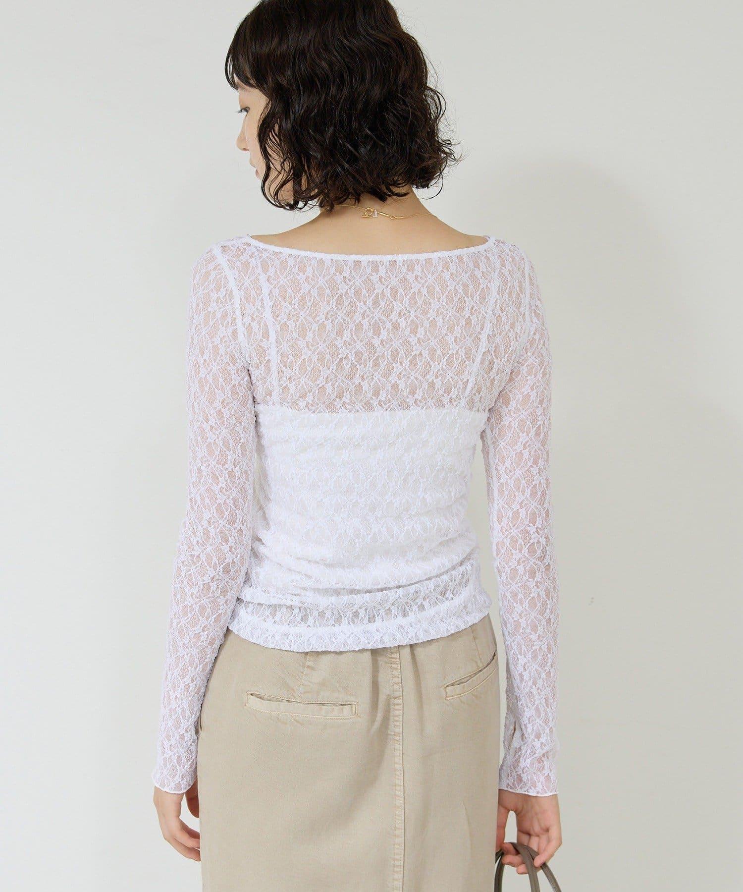 長袖剪裁縫製的蕾絲面料,比上衣更寬鬆。