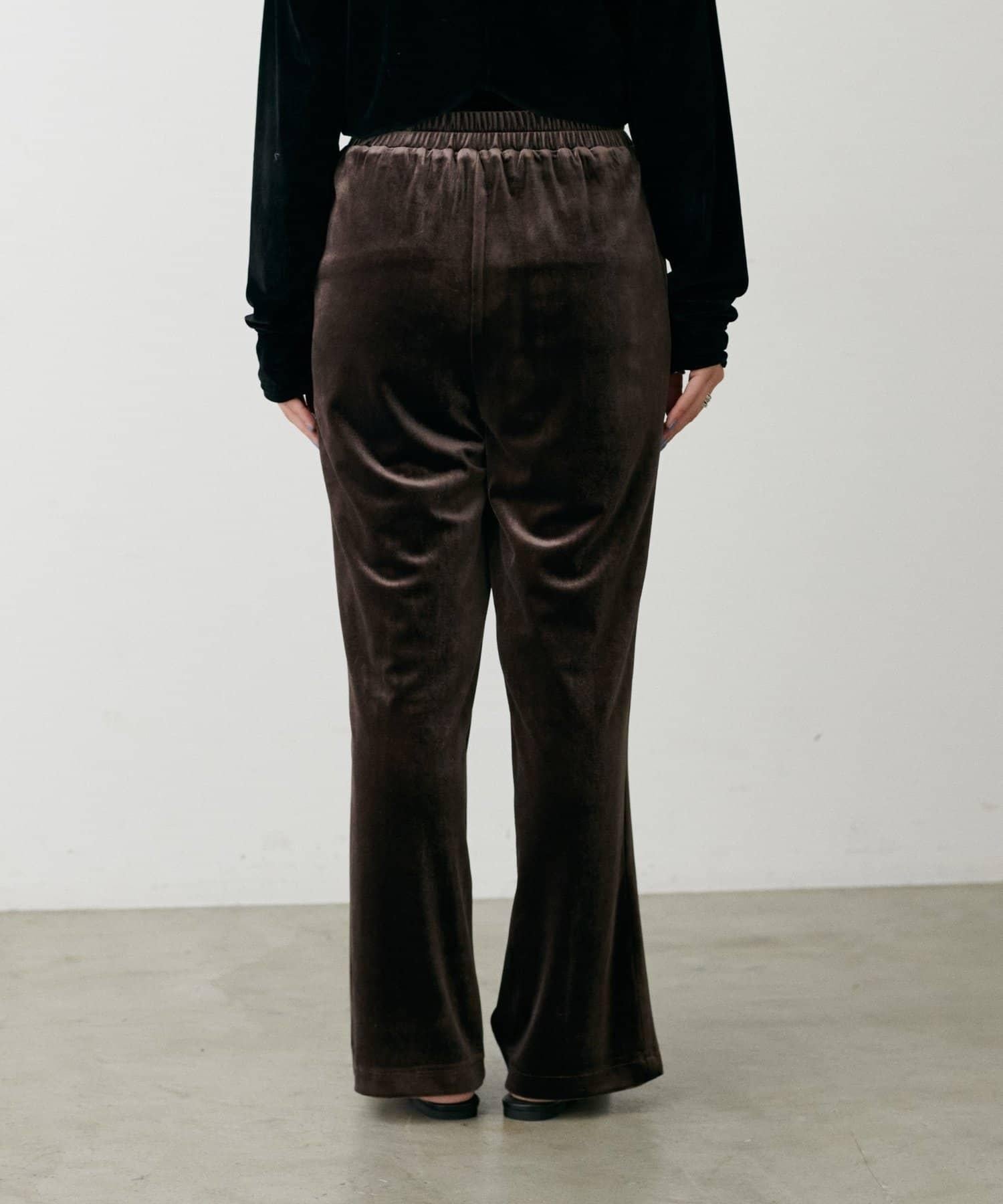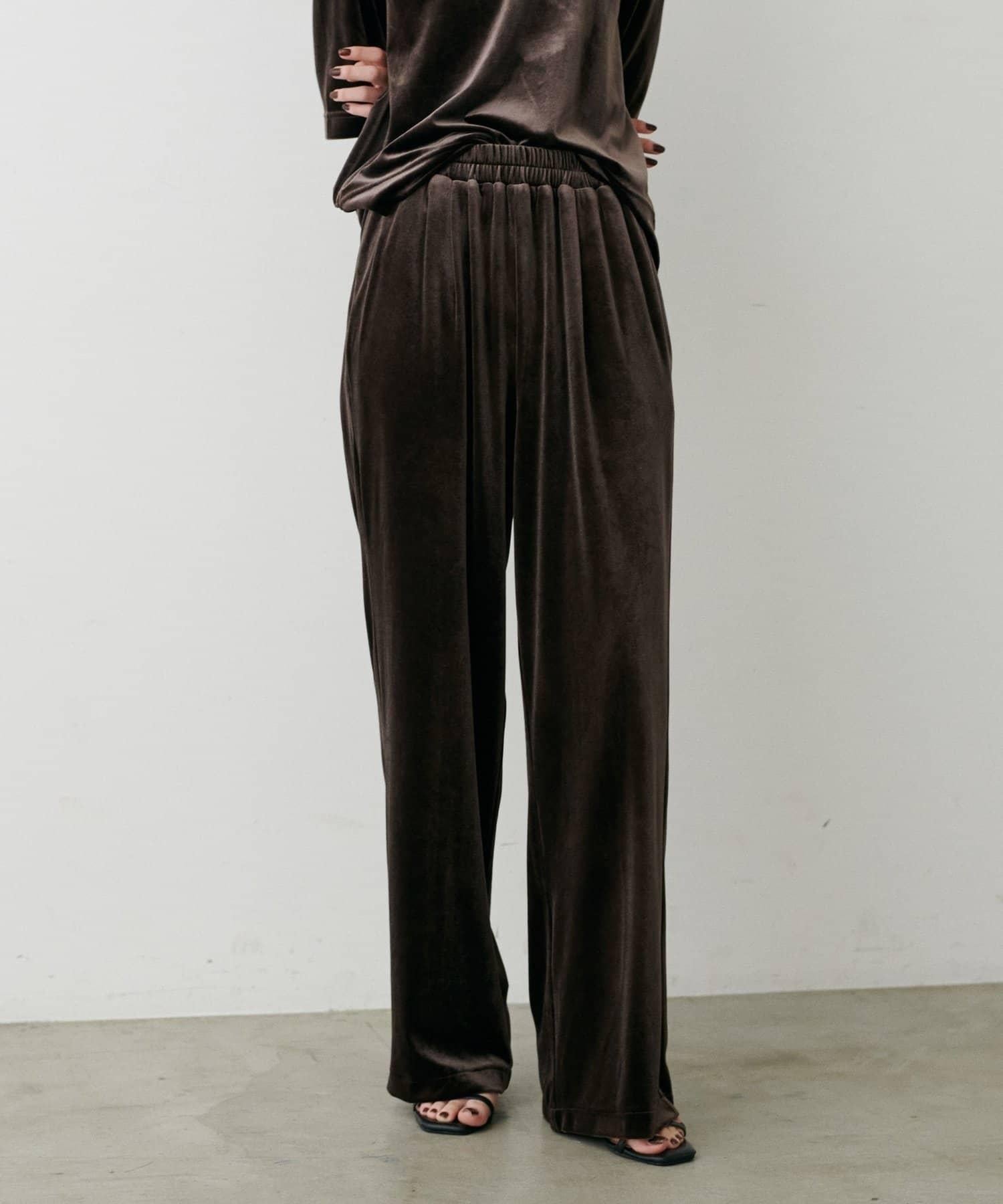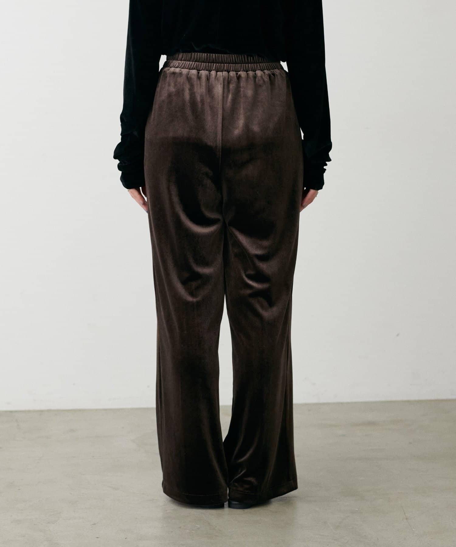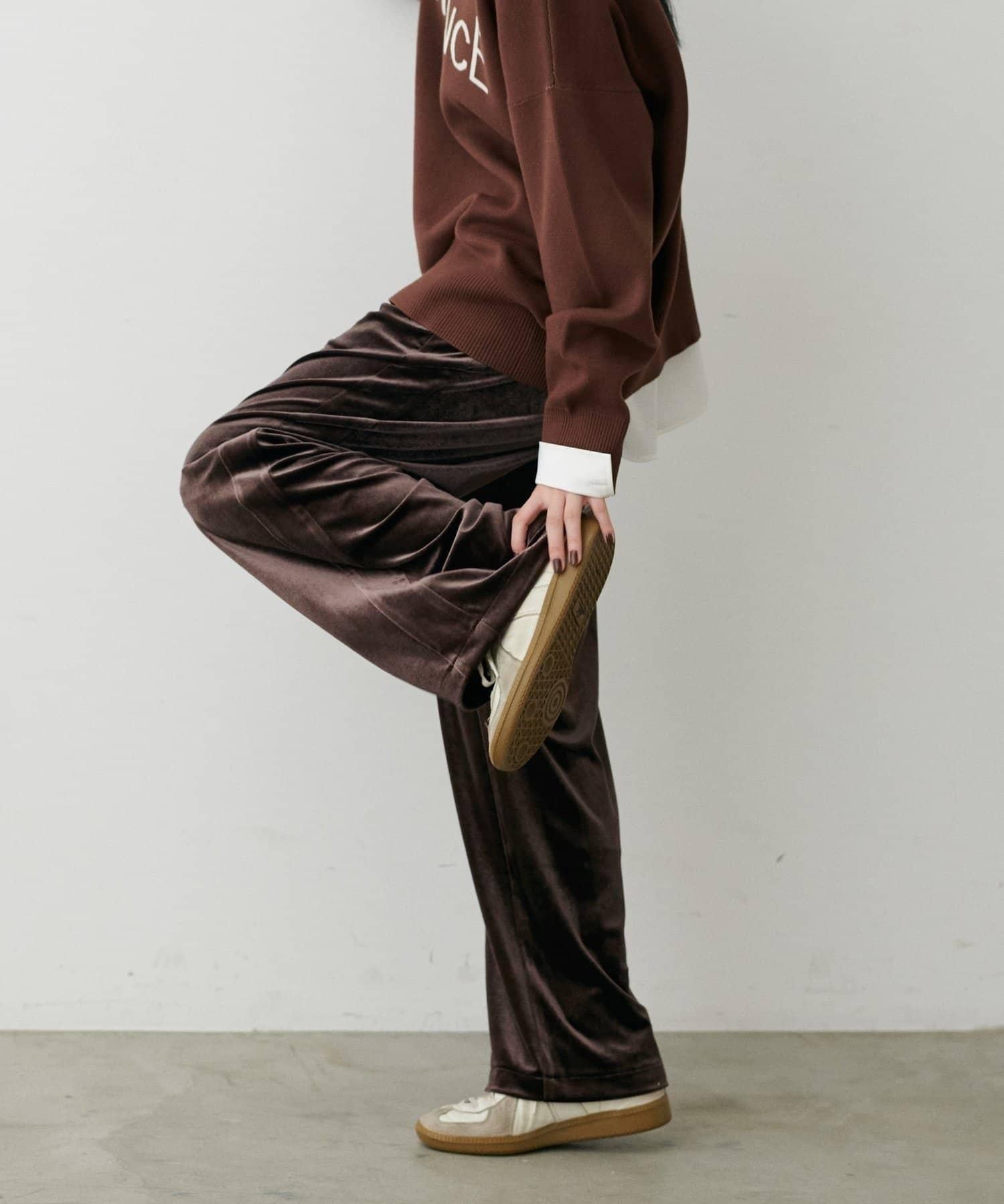 時尚的側線長褲由絲絨製成,帶有優雅的光澤。