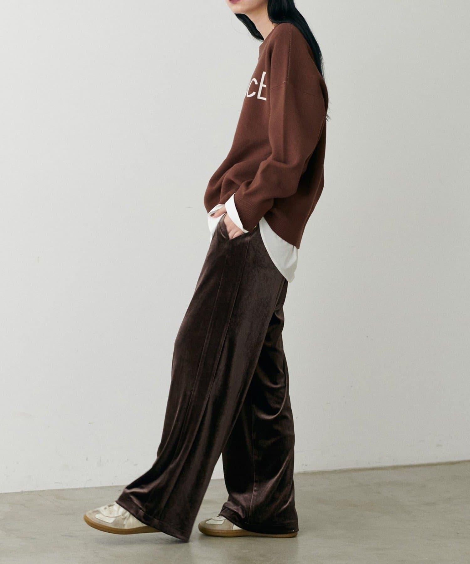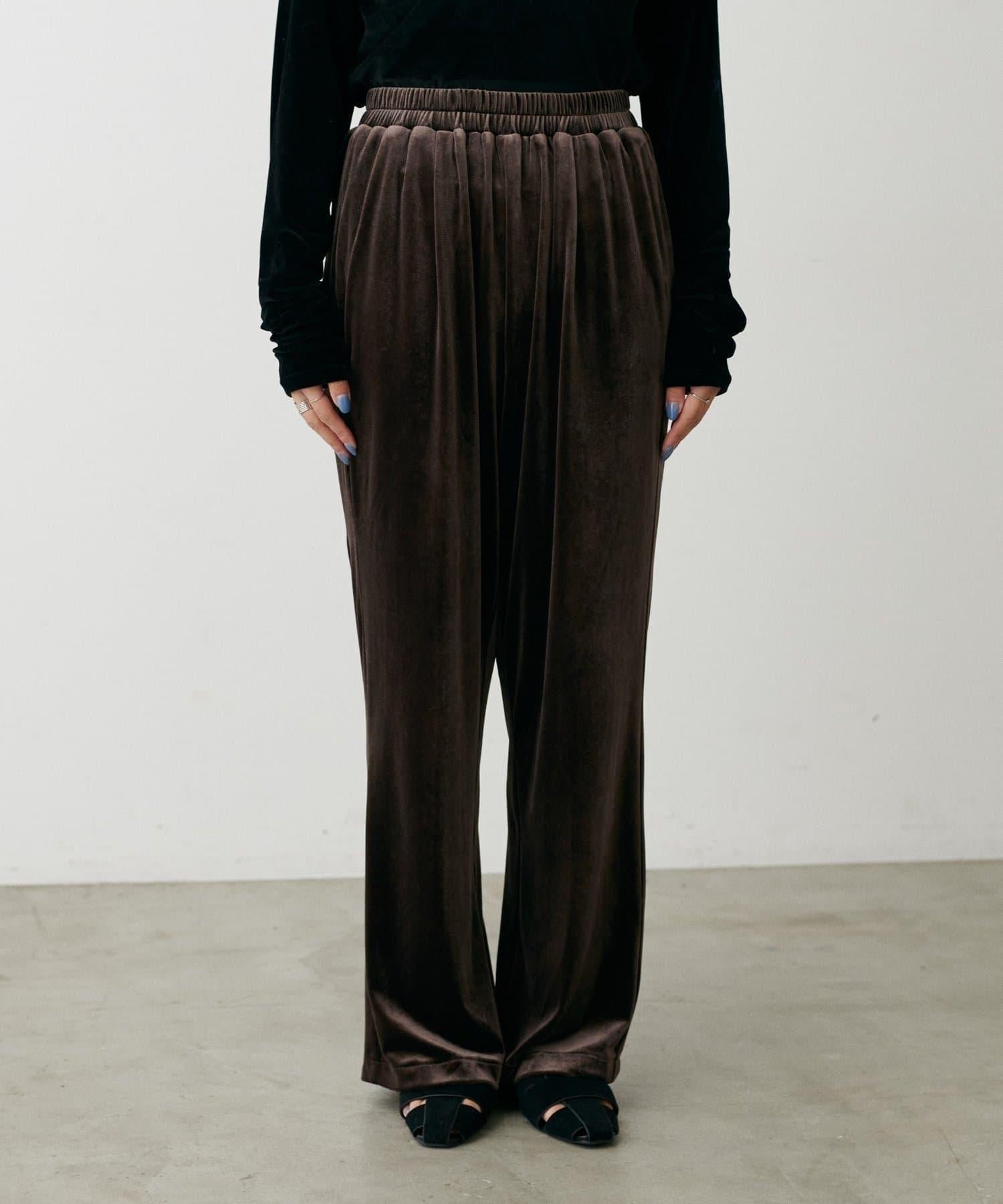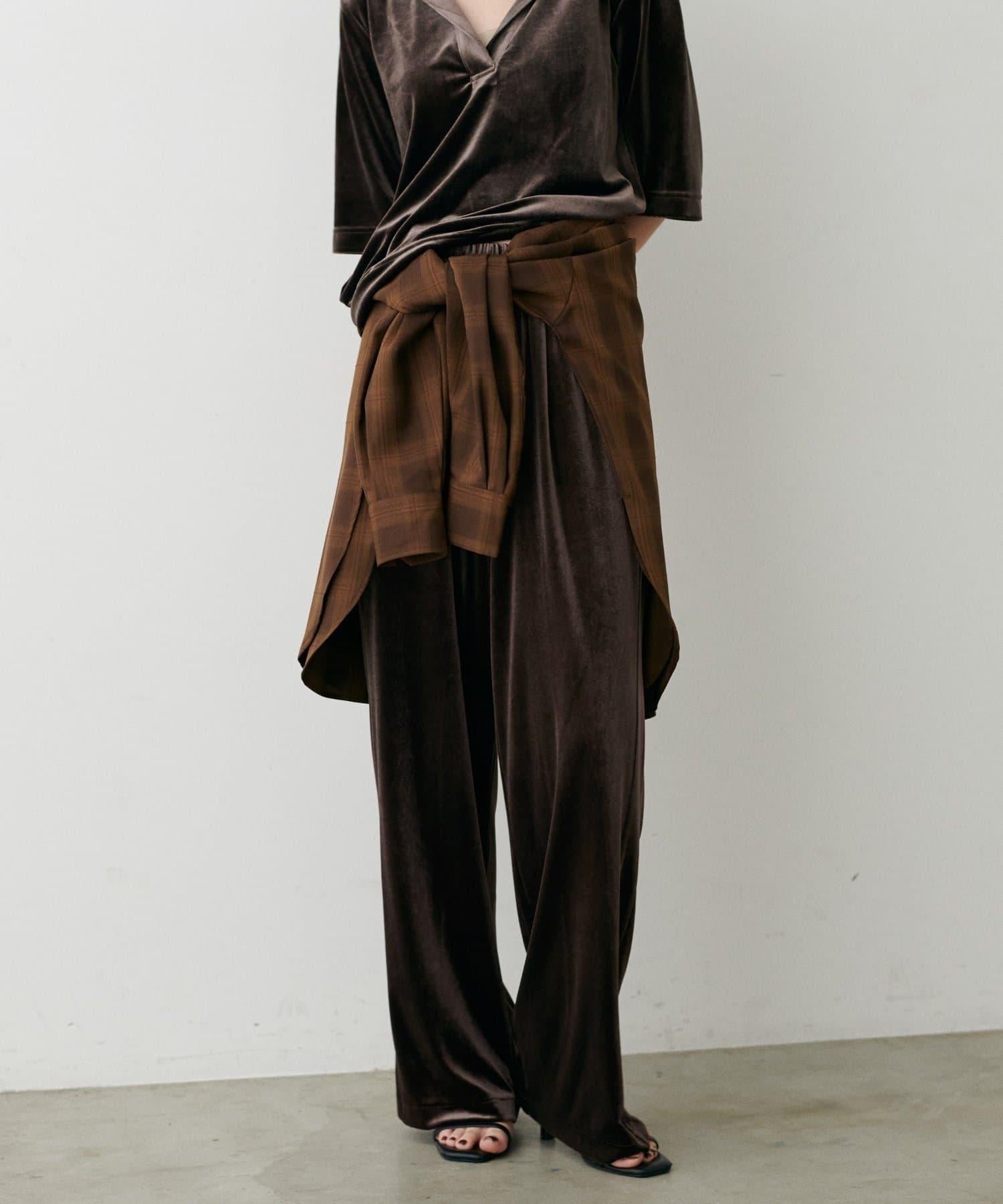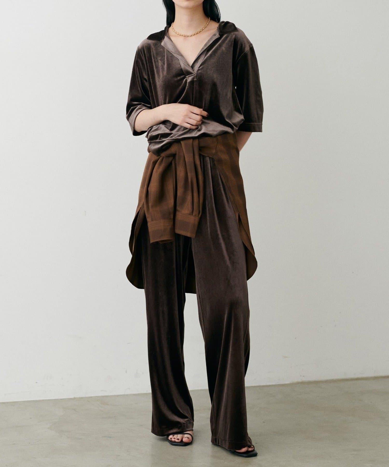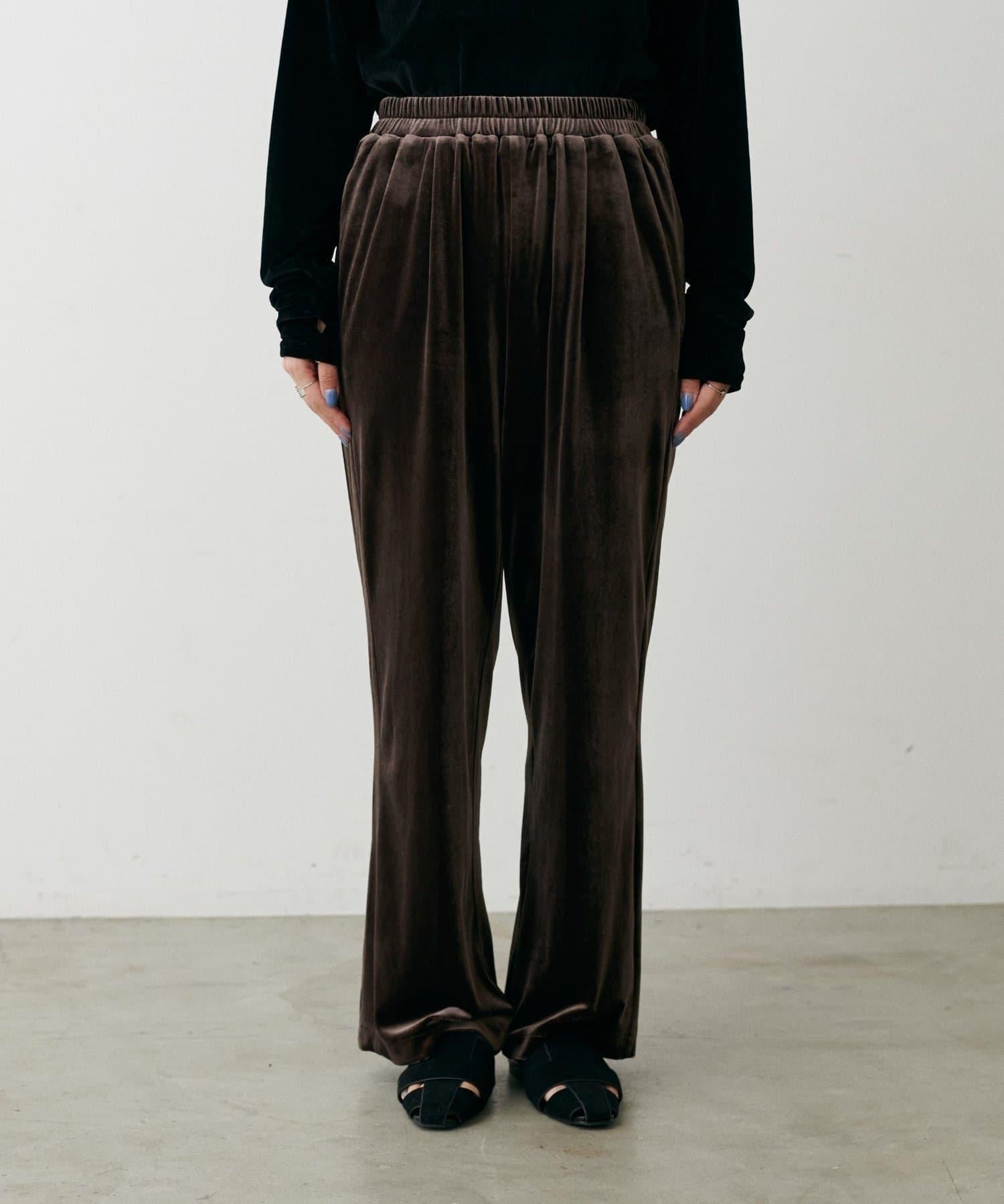 時尚的側線長褲由絲絨製成,帶有優雅的光澤。