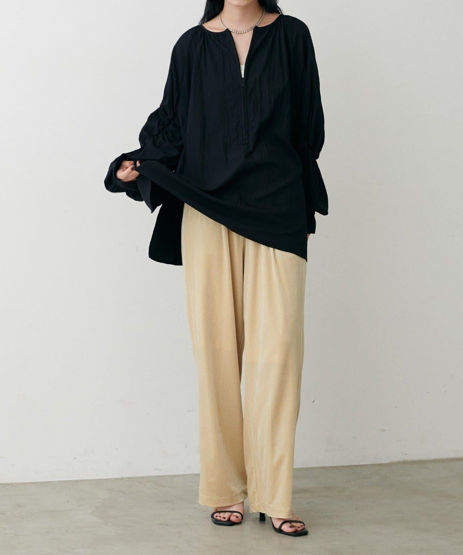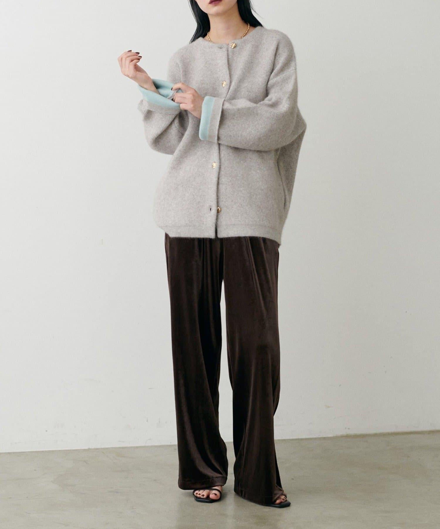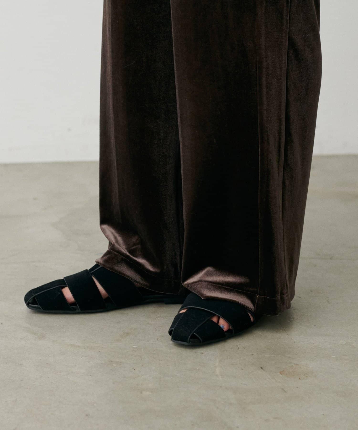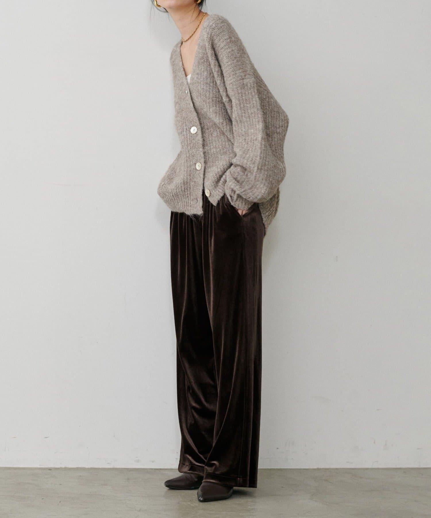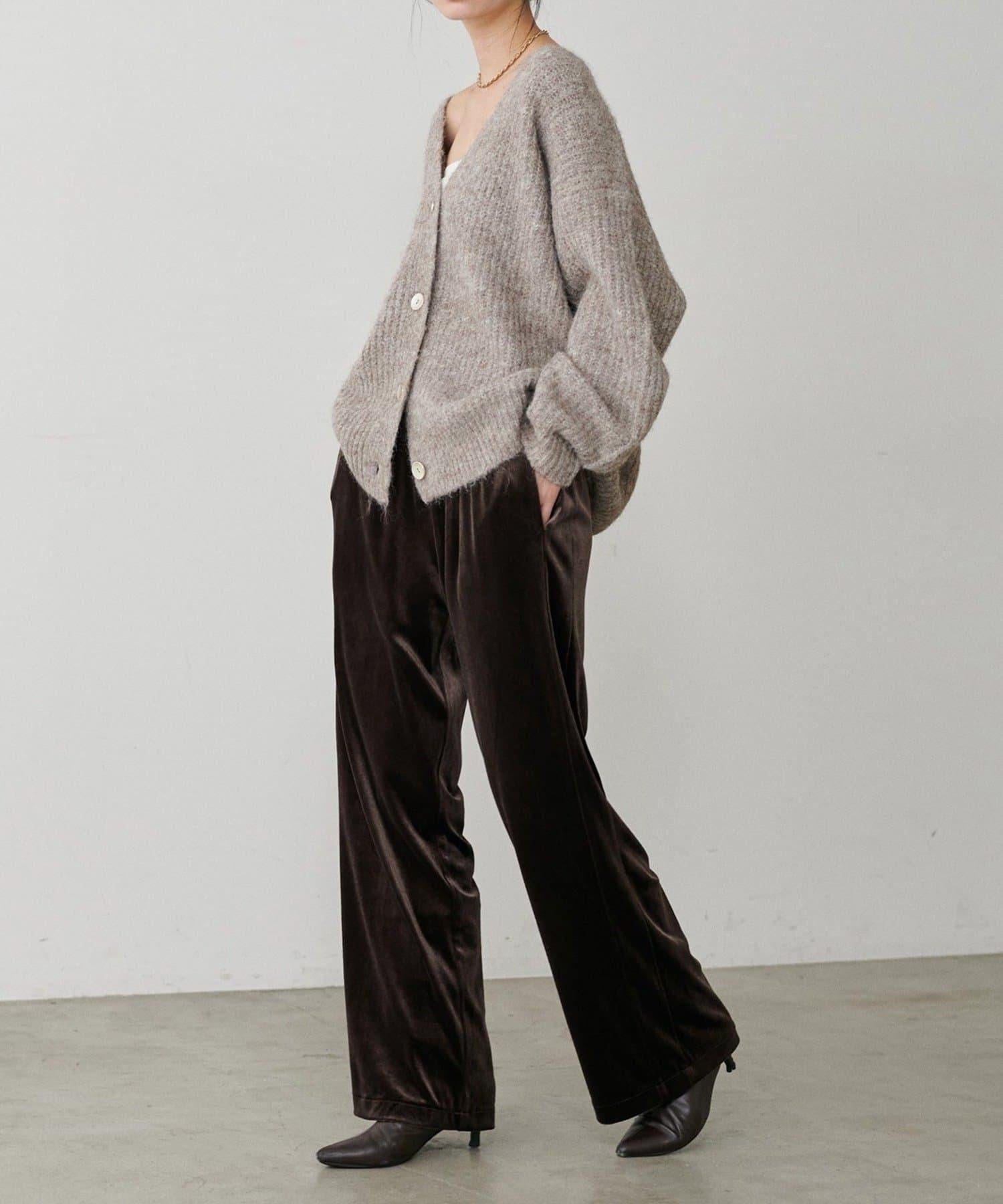 時尚的側線長褲由絲絨製成,帶有優雅的光澤。