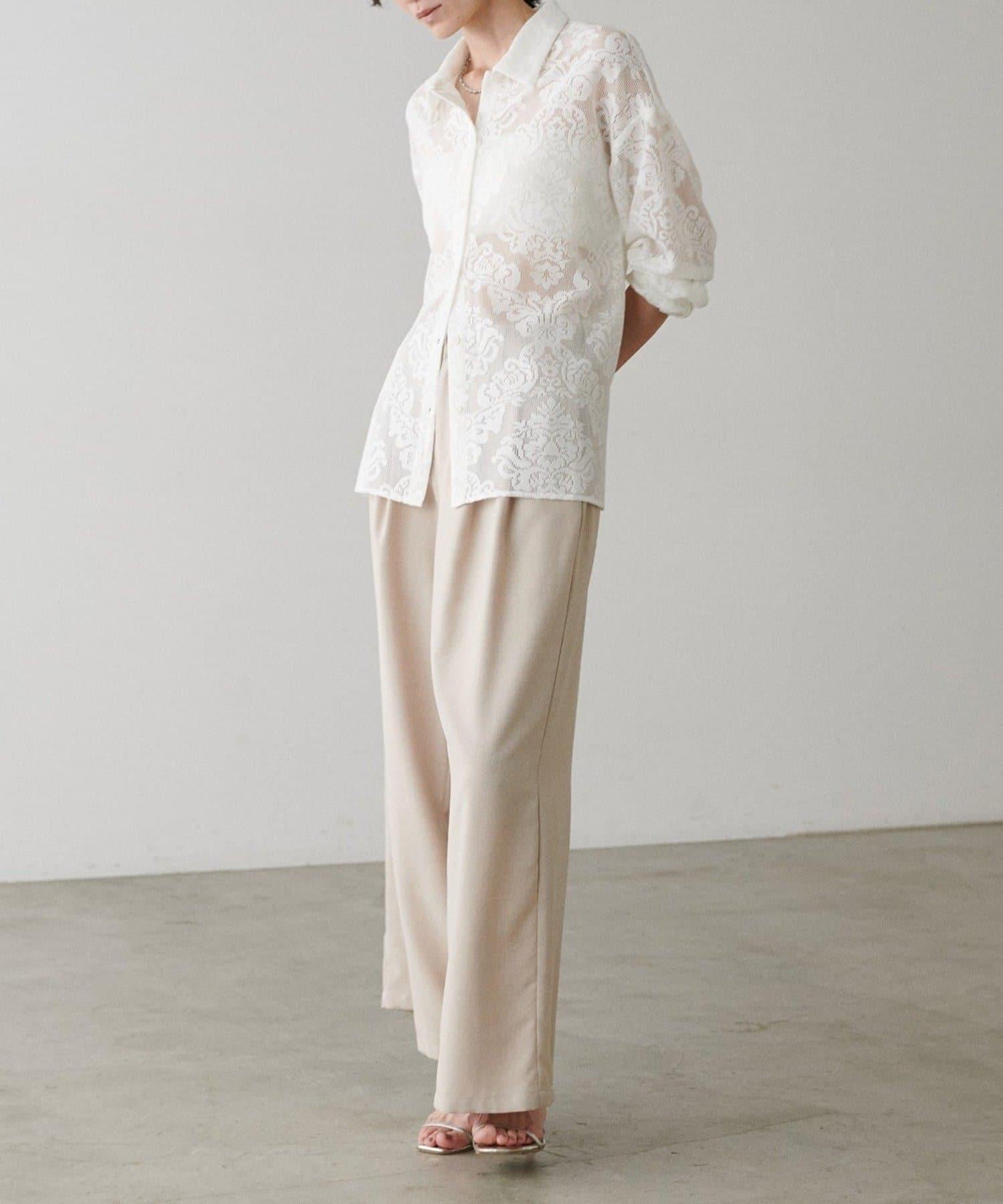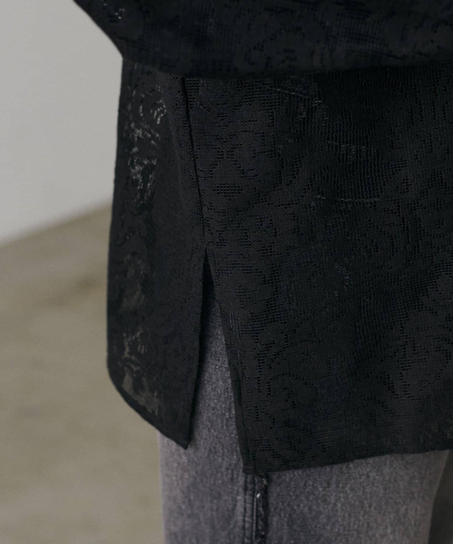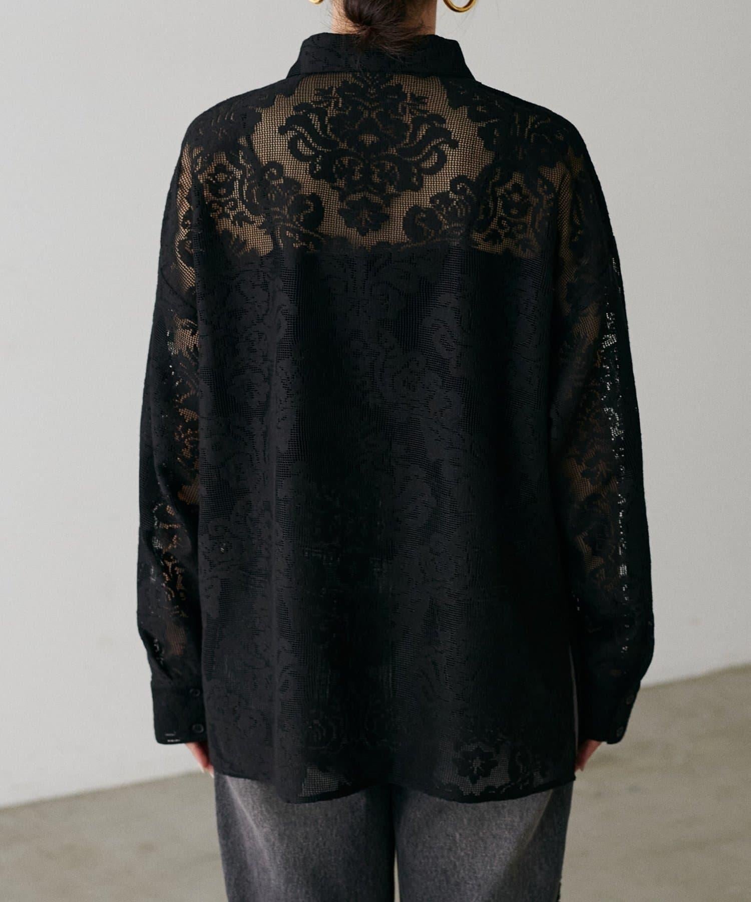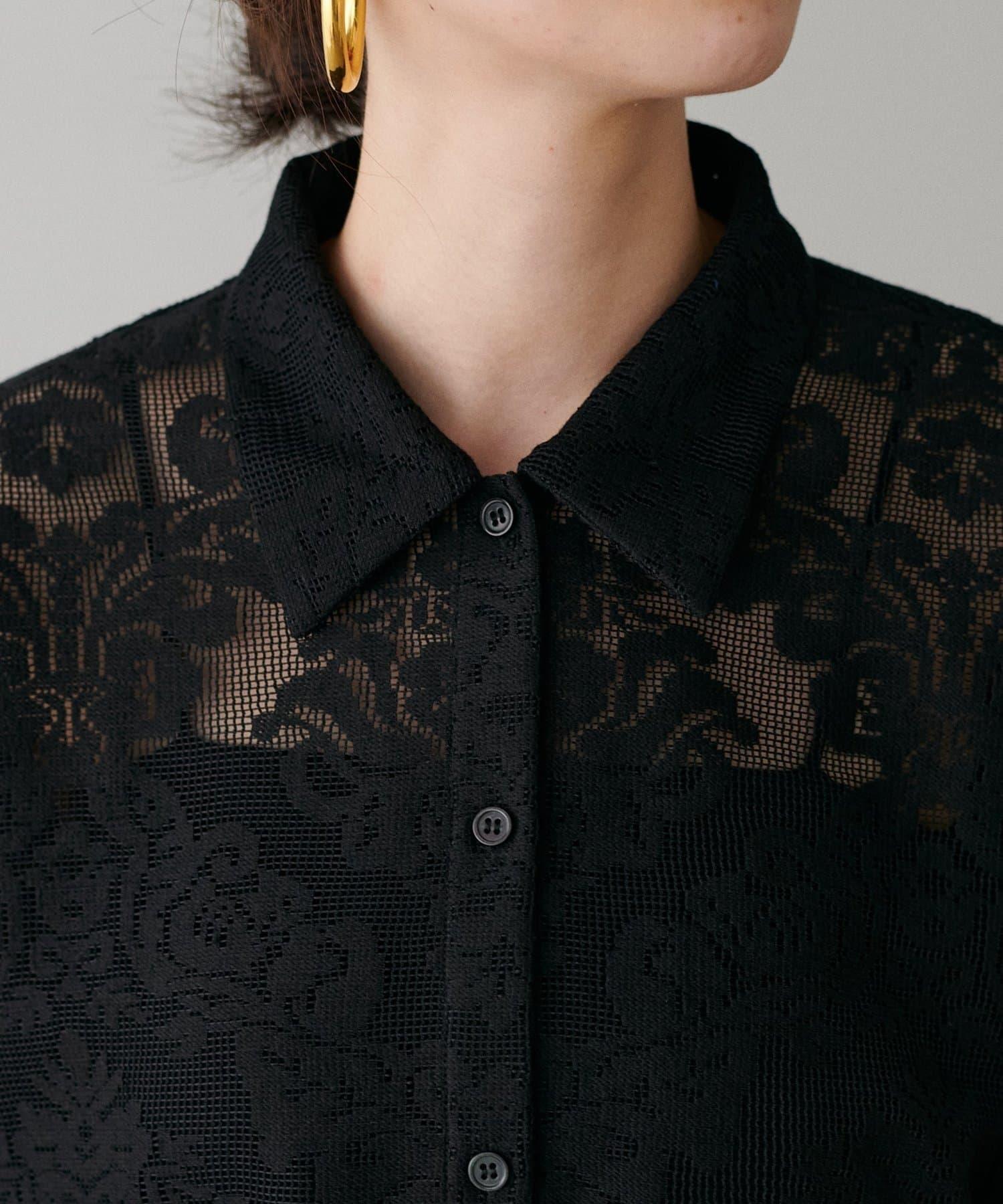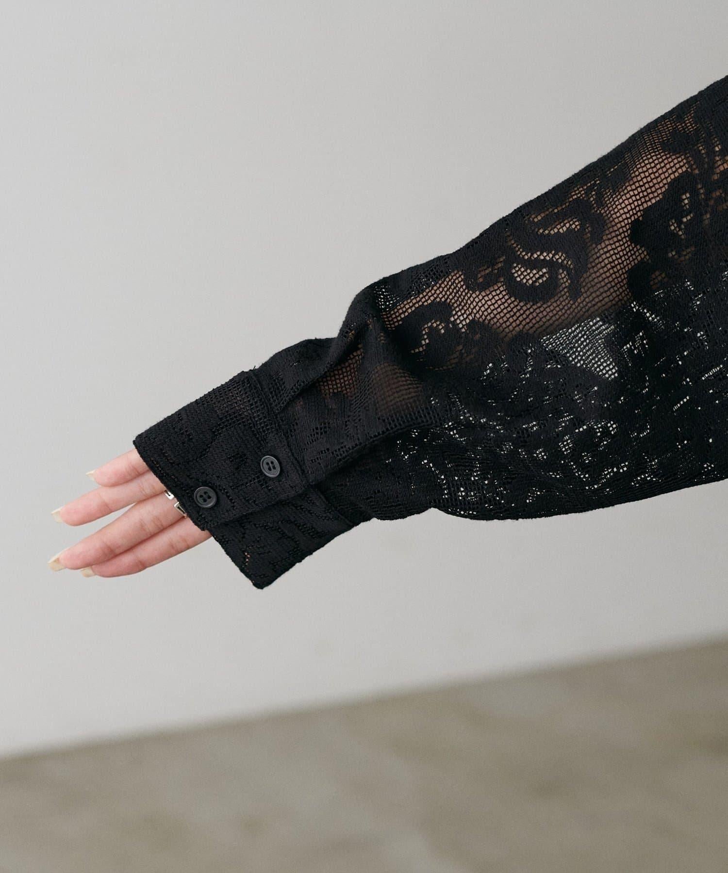 這款蕾絲襯衫採用精美的全蕾絲面料和精緻的花紋圖案剪裁而成,具有透視感。