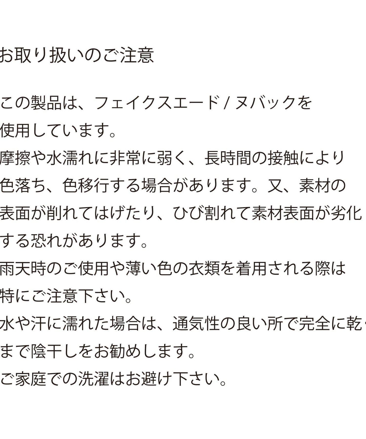 該產品極易受到摩擦和水的影響,長時間接觸可能會導致褪色和顏色遷移。