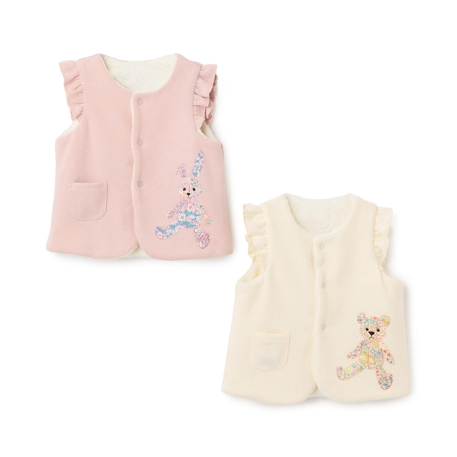 金色的馬甲上有小熊圖案,粉色的馬甲上有可愛的兔子圖案。