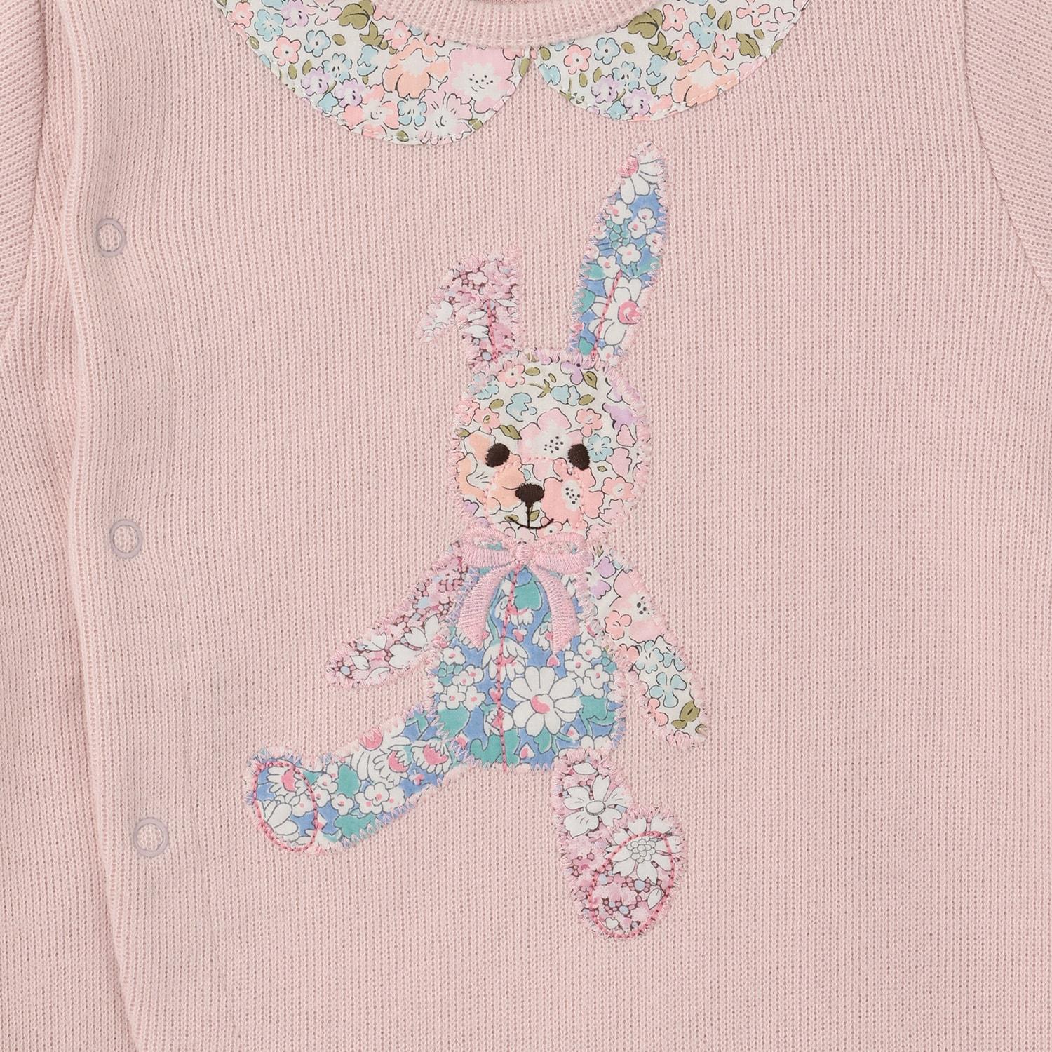 小熊設計在金色面料上,兔子設計在粉色面料上。