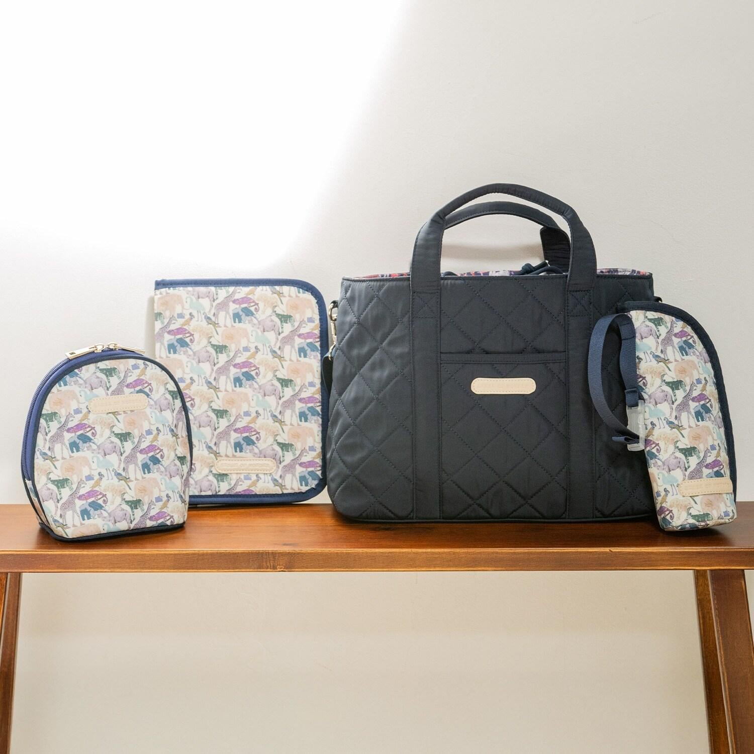 這款母子收納盒採用了 Liberty Fabrics 的綜合圖案。