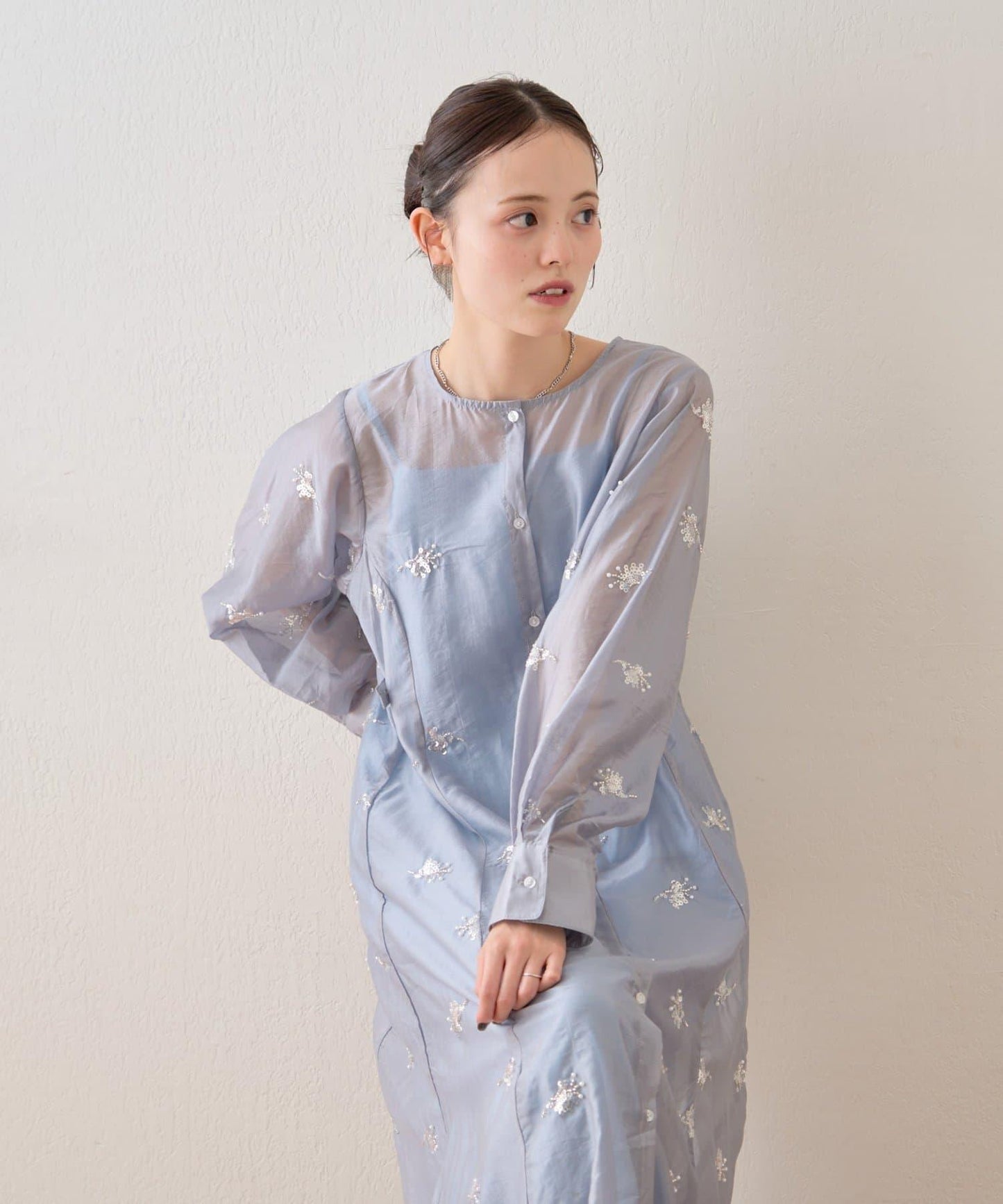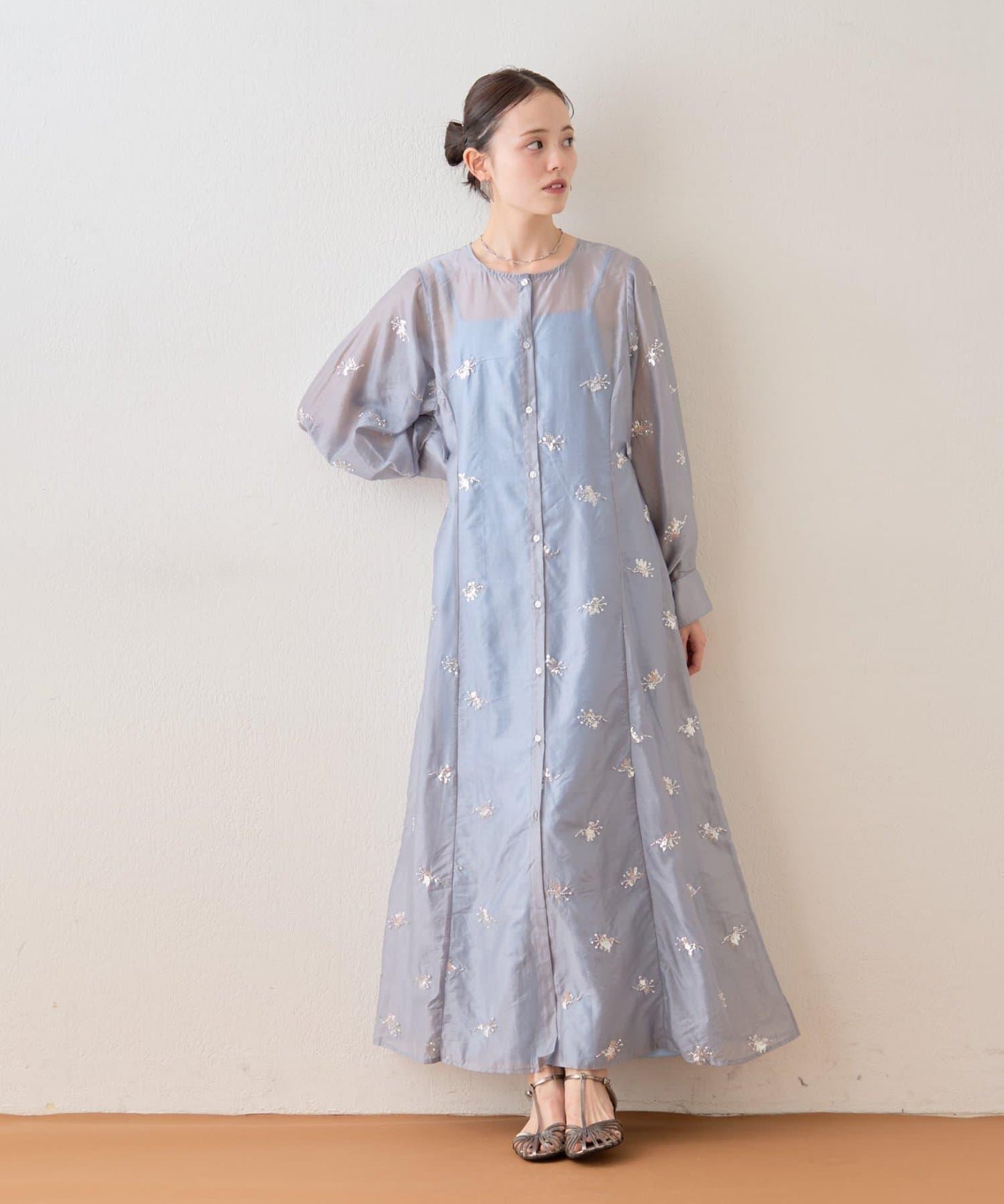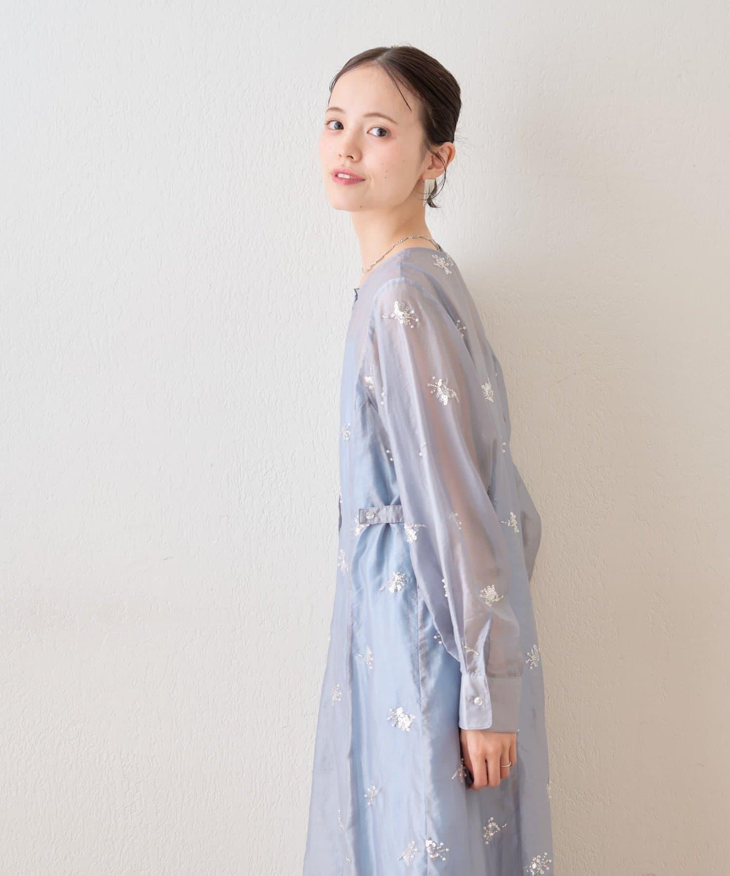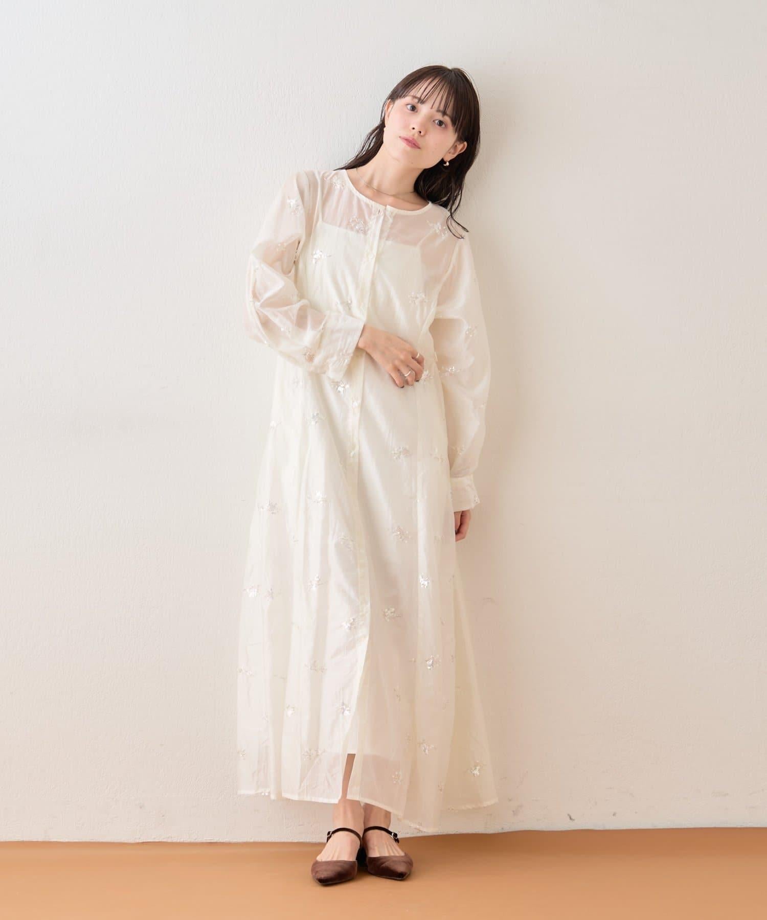 薄紗材質的連衣裙上附帶的小飾品恰到好處地閃耀著光芒,是一款可愛的連衣裙!