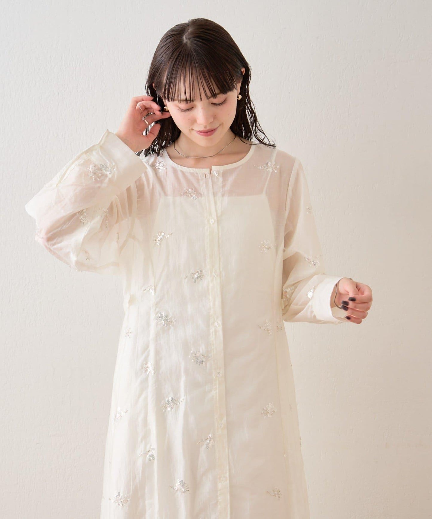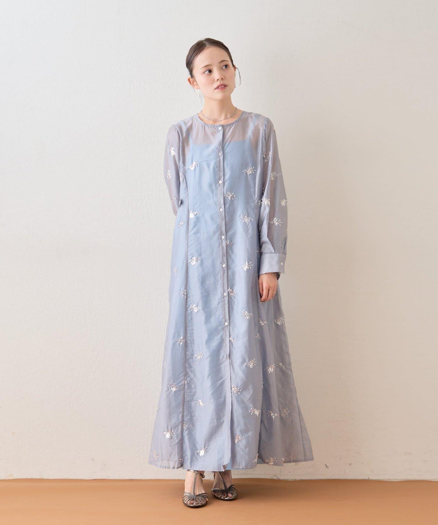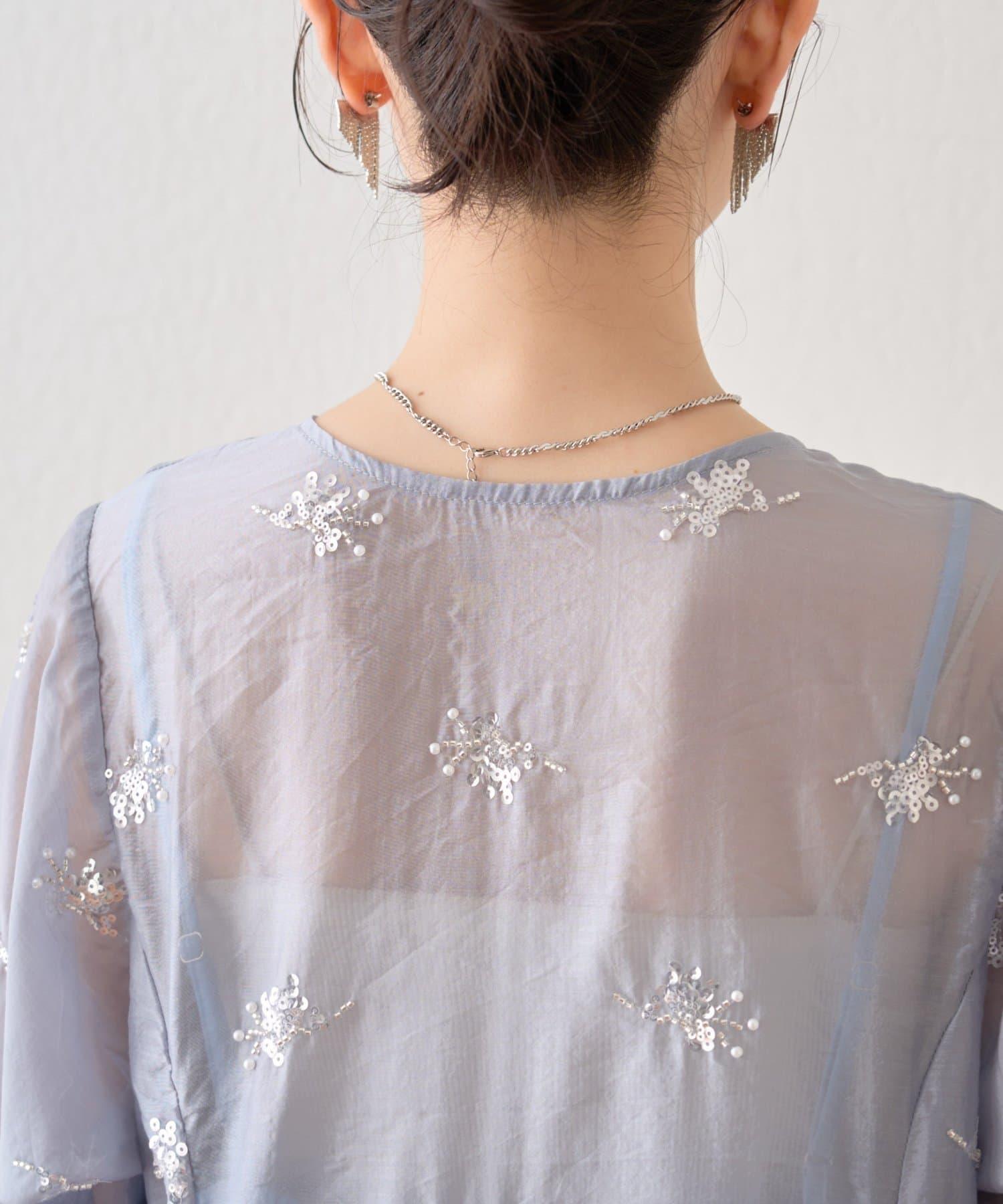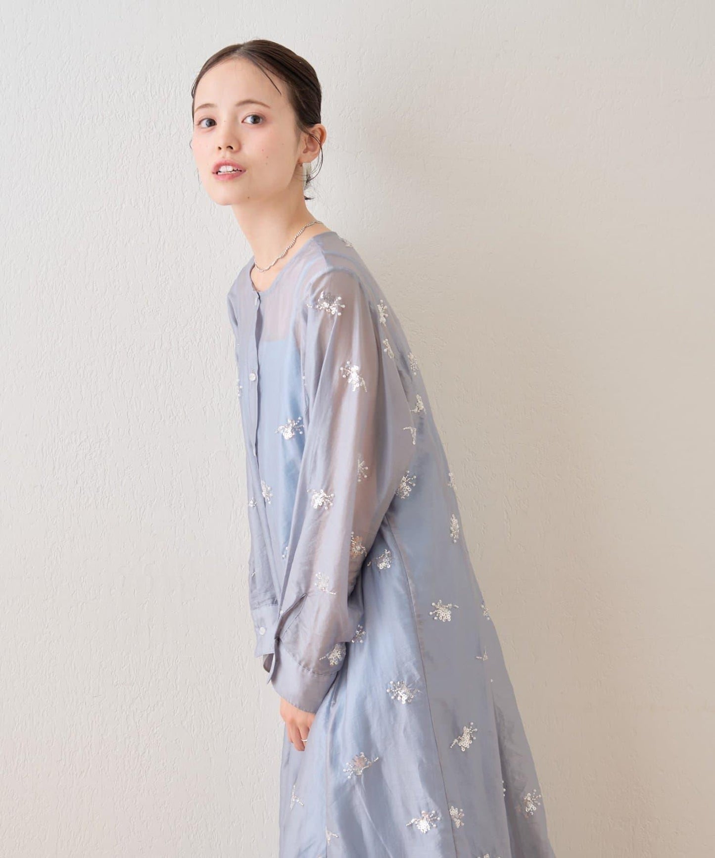薄紗材質的連衣裙上附帶的小飾品恰到好處地閃耀著光芒,是一款可愛的連衣裙!