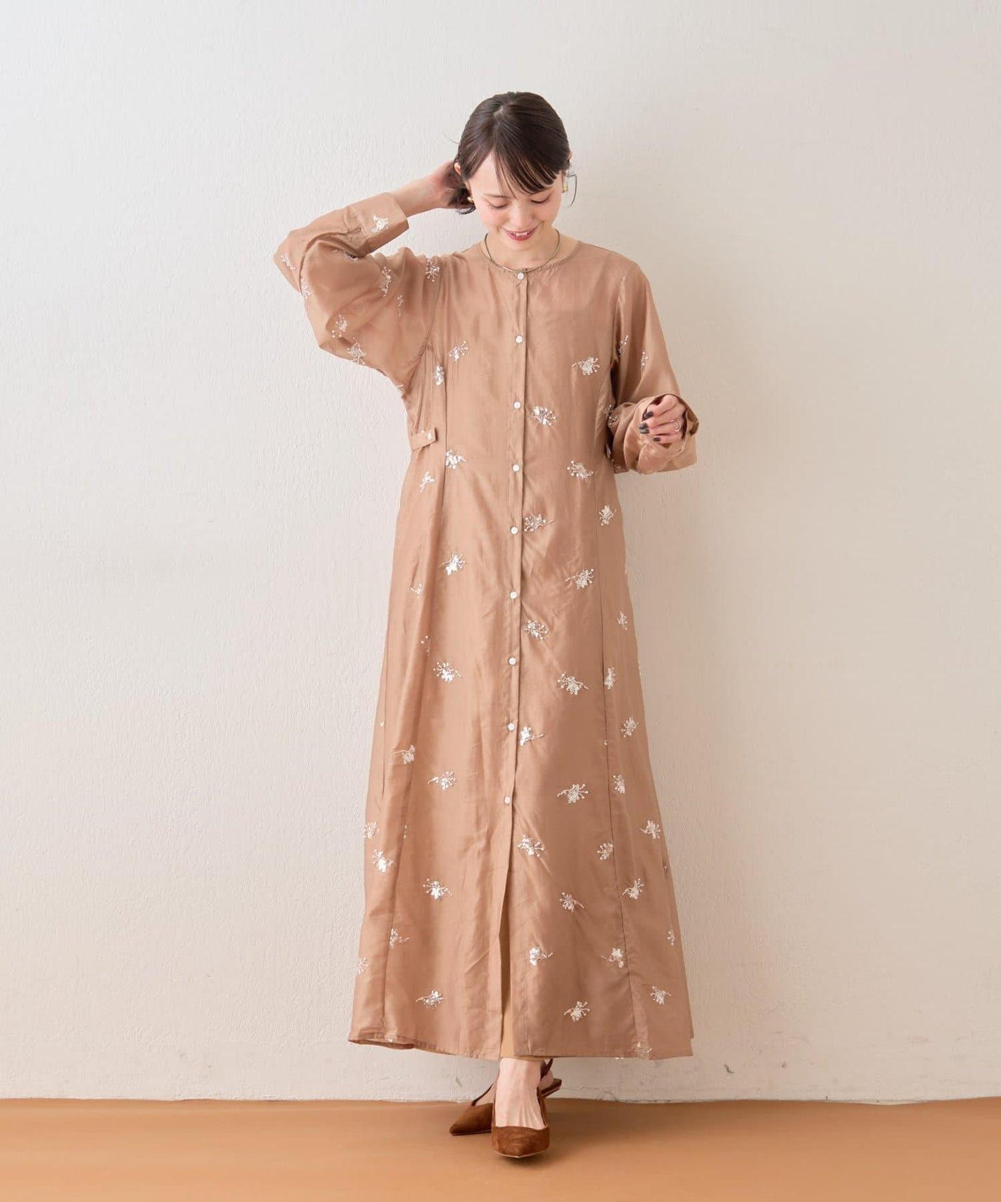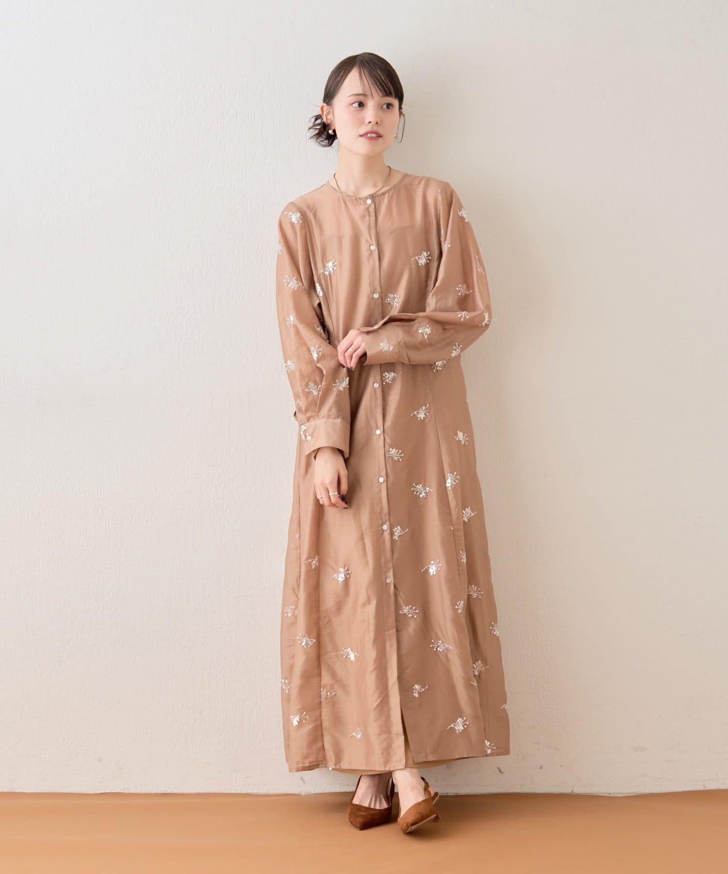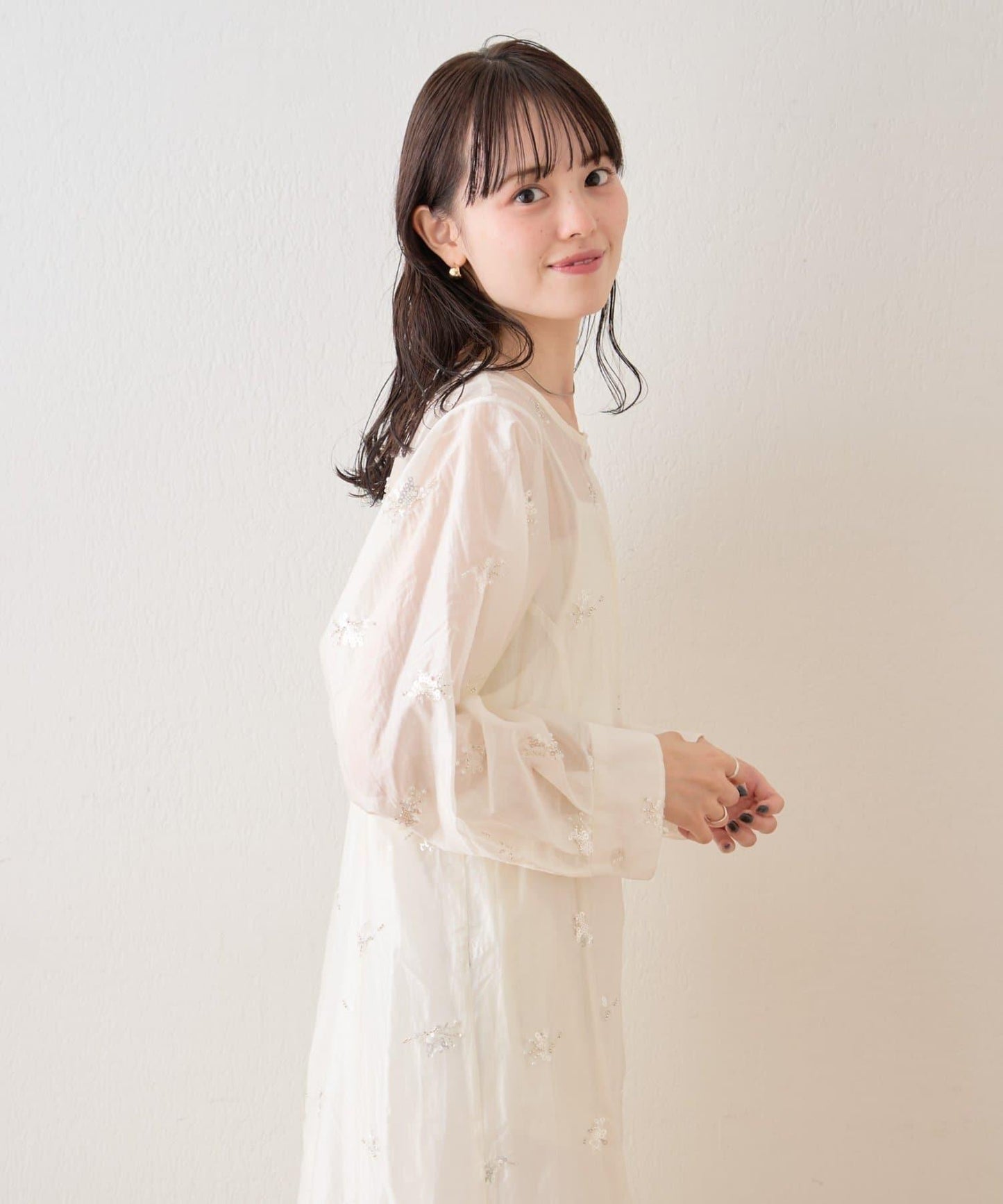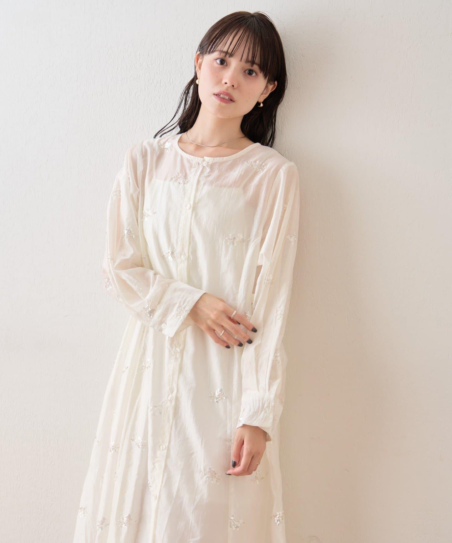 薄紗材質的連衣裙上附帶的小飾品恰到好處地閃耀著光芒,是一款可愛的連衣裙!
