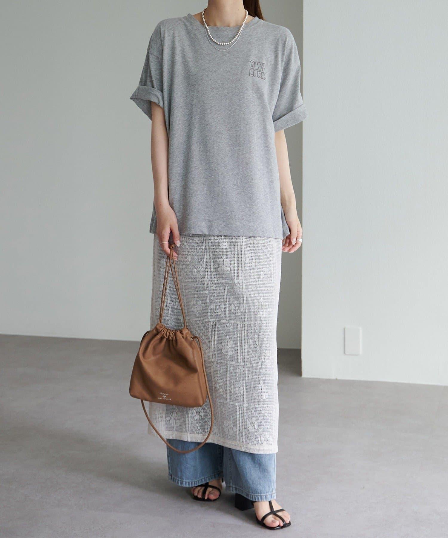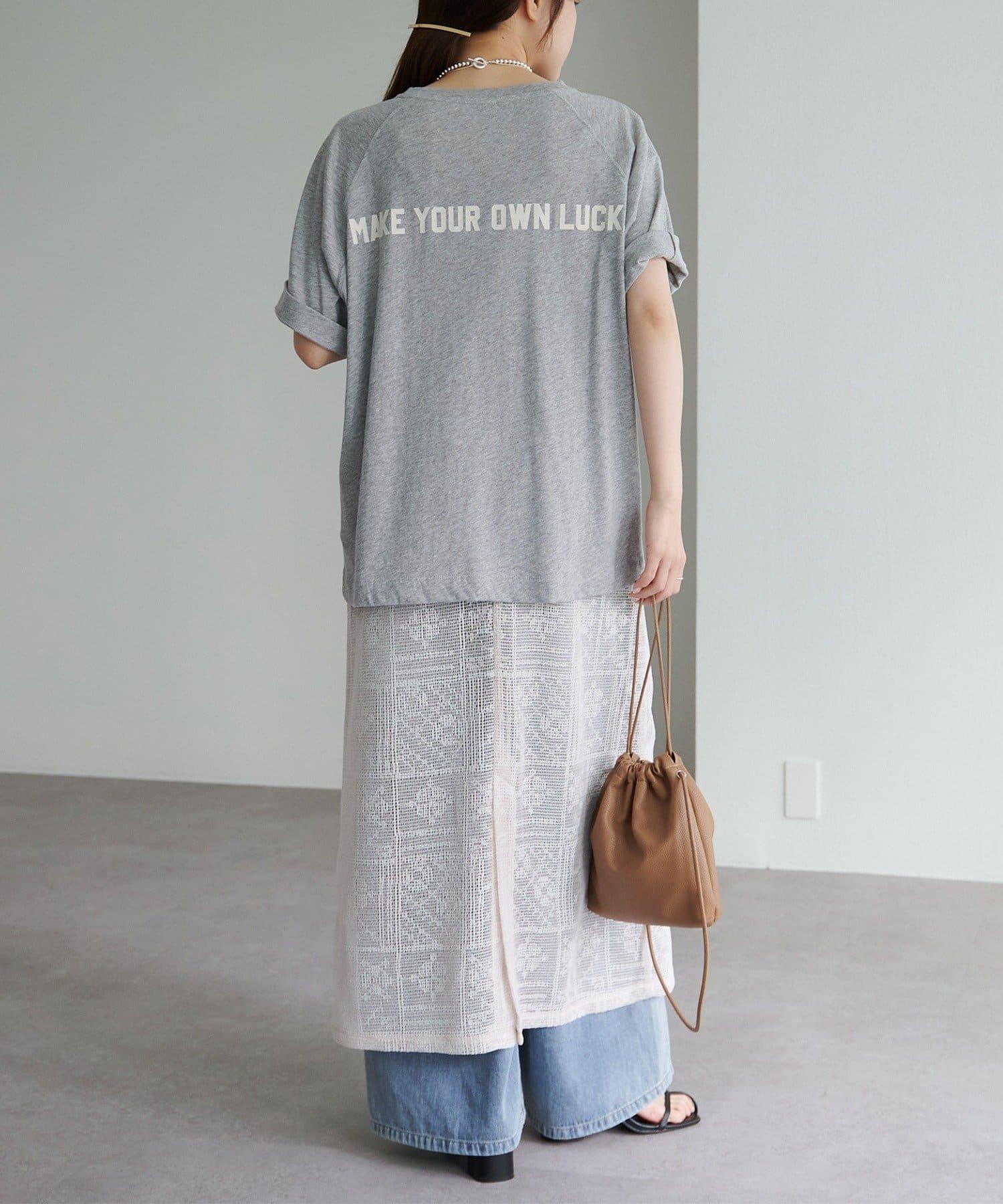 短袖 T 恤,正反面印有不同紋理的標誌。