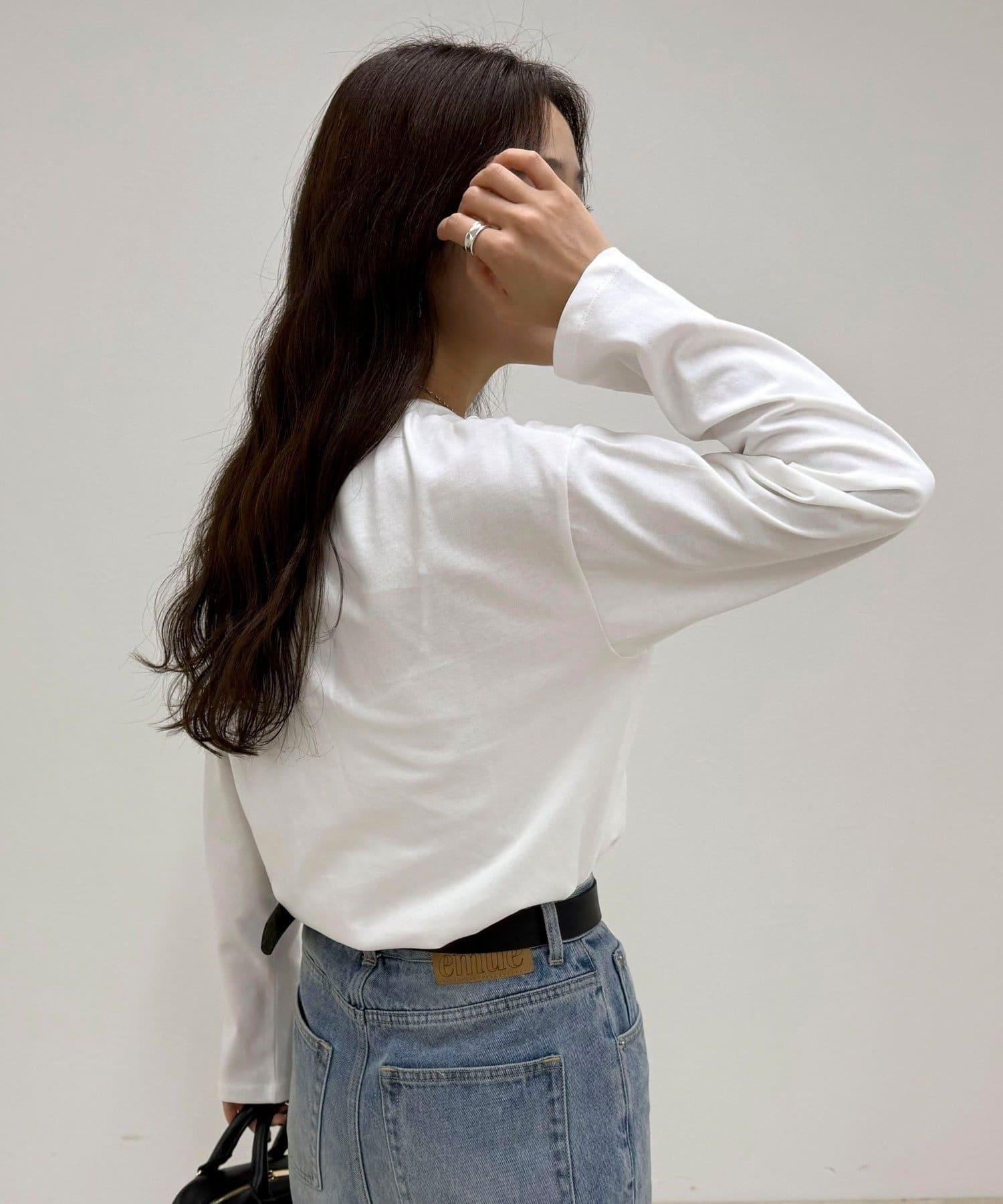 身高 156 厘米/穿 38 號:長度超過臀部,既可搭配長褲,也可搭配短裙,平衡性很好。這是一款百搭上衣,搭配外套或開衫都很好看。