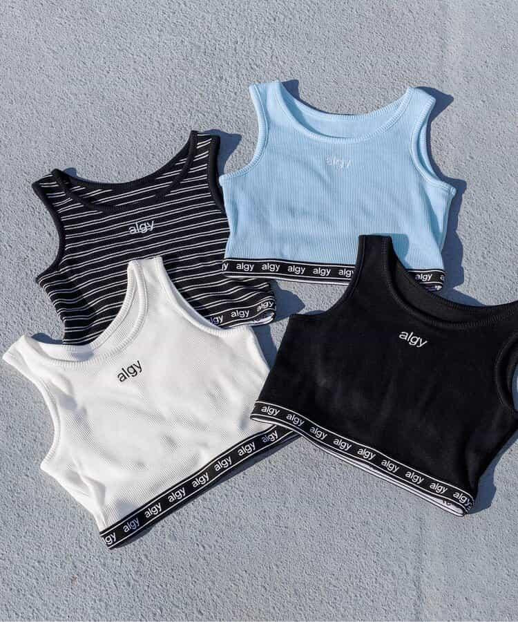 algy 的背心吊帶衫 "徽標彈力鉭羅紋背心 "因其可愛甜美的設計而廣受歡迎,為注重時尚的女性的日常生活增添了一抹亮色!它具有極佳的耐磨性!