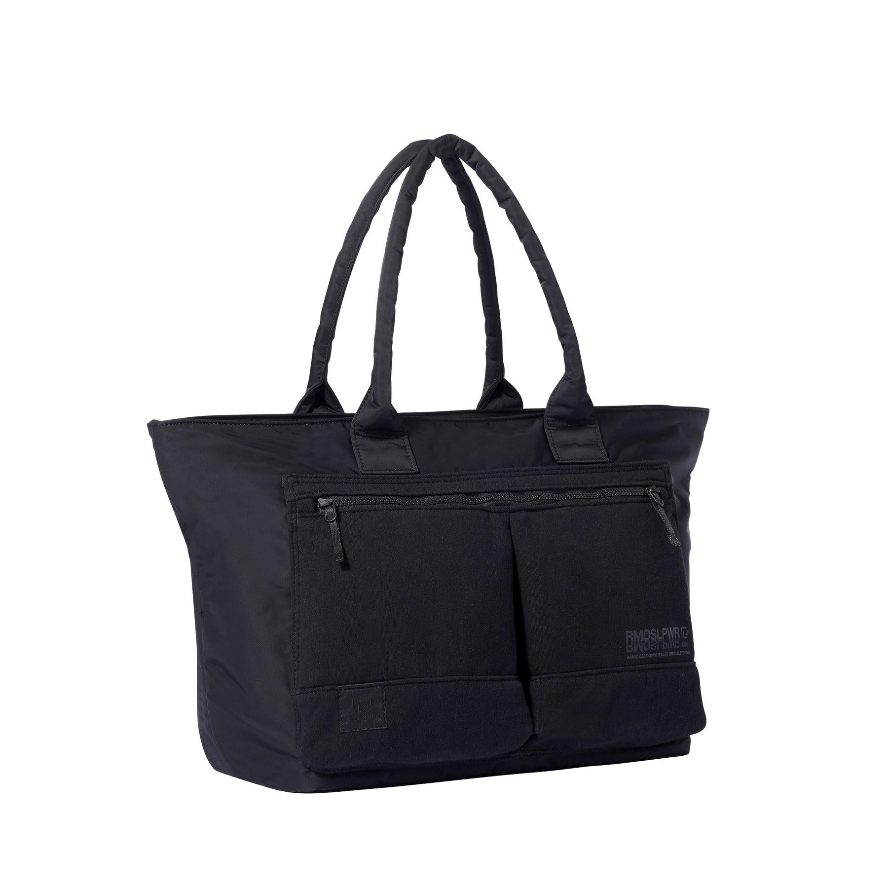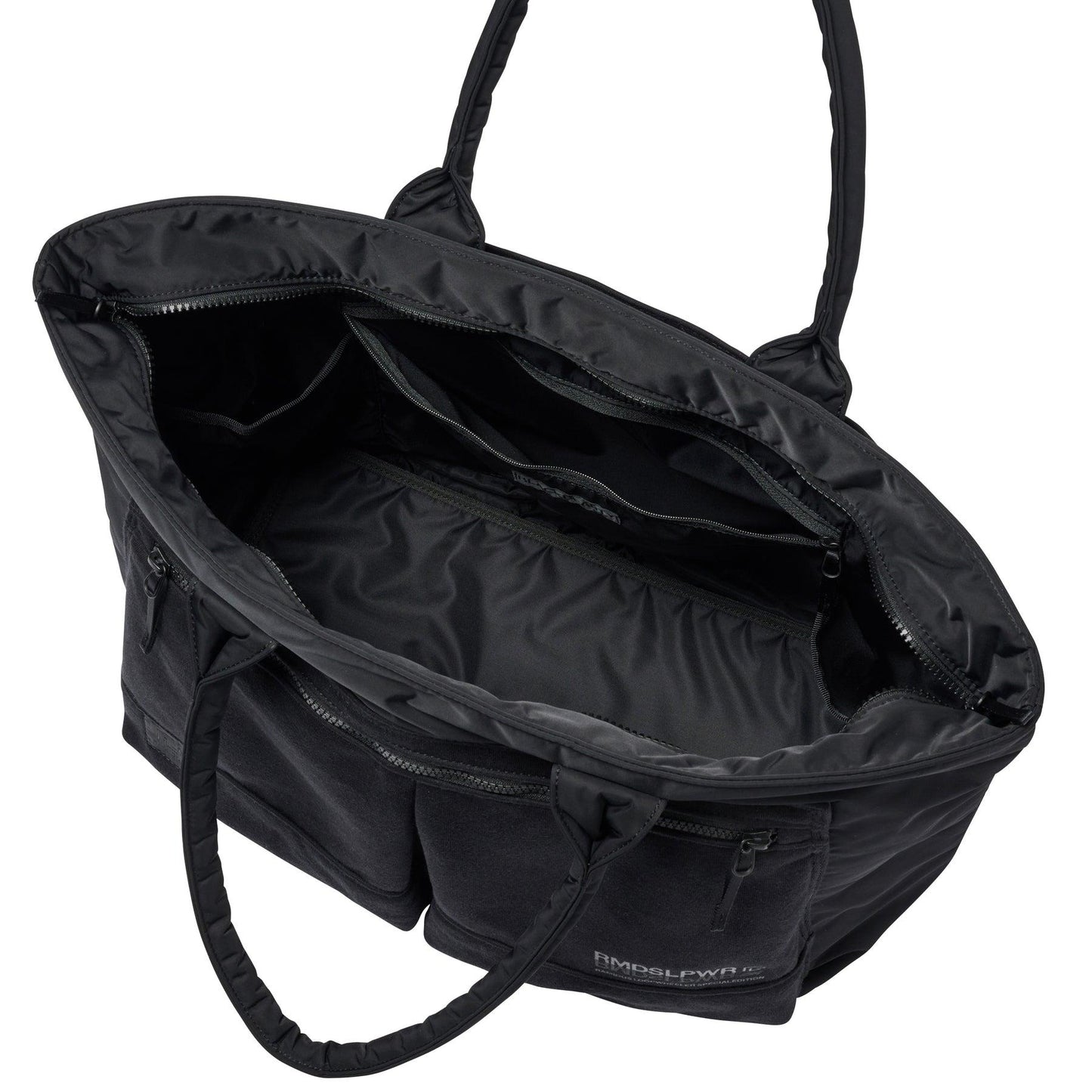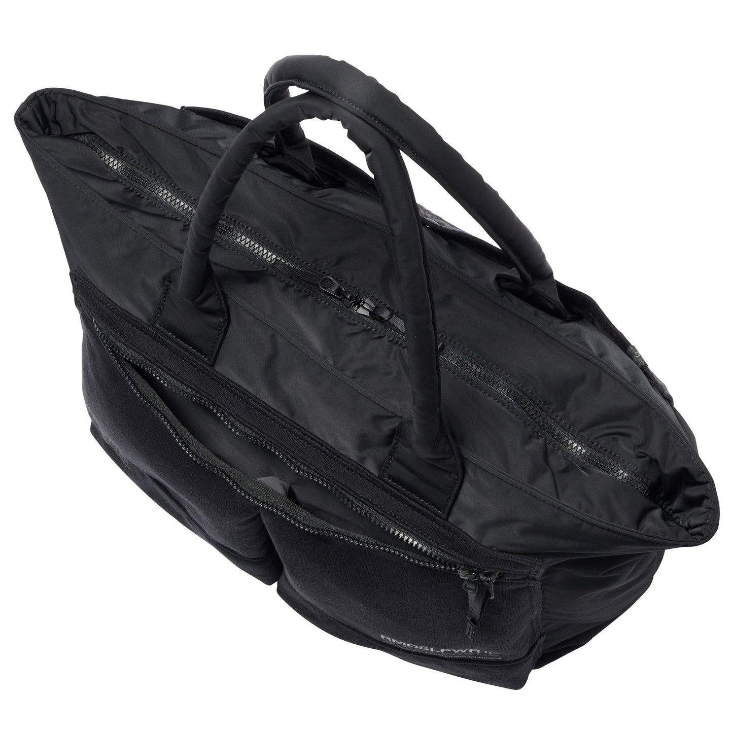 手提包採用寬開口設計,便於裝卸,空間足夠日常使用。內部設有一個網兜,可放置小件物品,兩側設有水瓶袋,可存放塑料瓶和摺疊傘,頸部有 LOOPWHEELER x RAMIDUS 徽標。