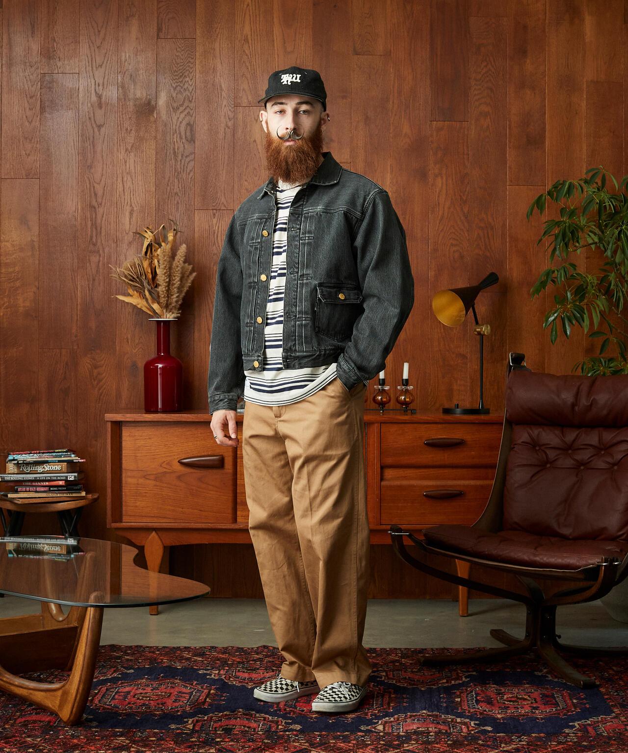 牛仔夾克採用 13.5 盎司斜紋粗棉布製成,沿用了 50 年代商店品牌的款式,經線染成硫化黑色。衣身襯裡採用了原裝棉酚浸泡毛毯面料,具有極佳的保暖性能。紐扣是原裝的黃銅換紐扣,磨損後會變得更加暗淡,質感也更強。鉚釘為復古式貫通鉚釘,名稱由山羊皮製成,因此您也能感受到時間的變遷。材質:100% 棉 原產地:中國 [Schott / 肖特] 肖特的歷史可以說是騎手夾克的代名詞,1913 年由歐文-肖特和傑克-肖特兄弟在紐約創立。