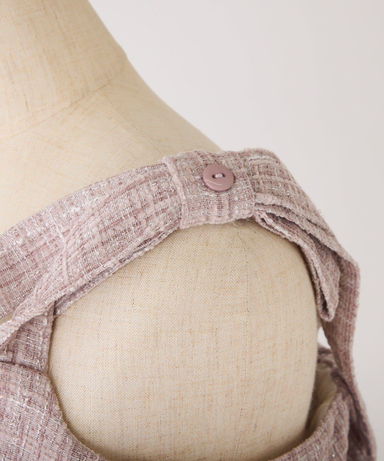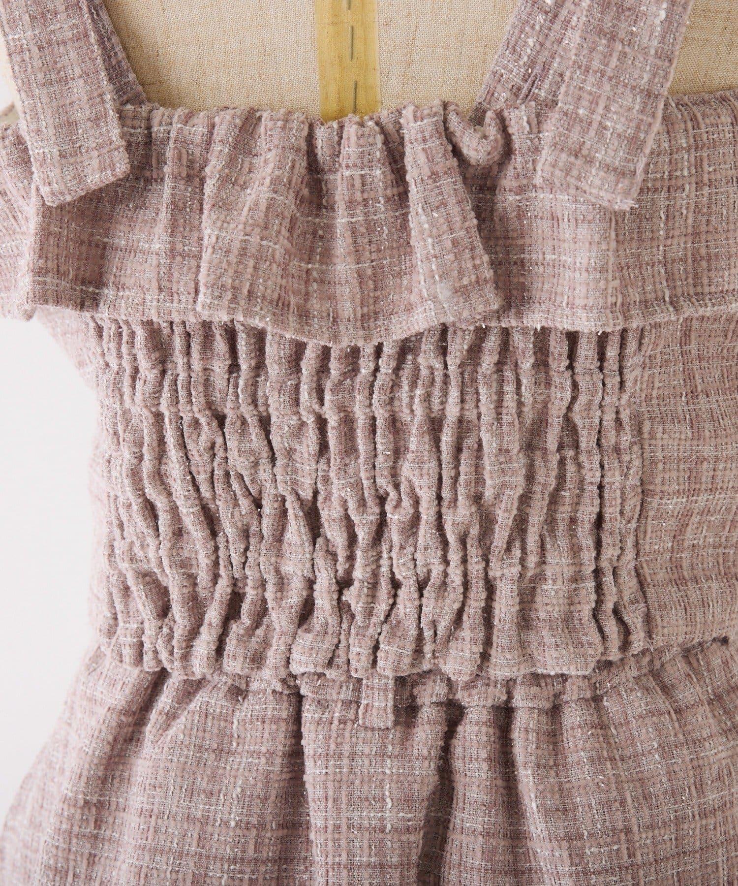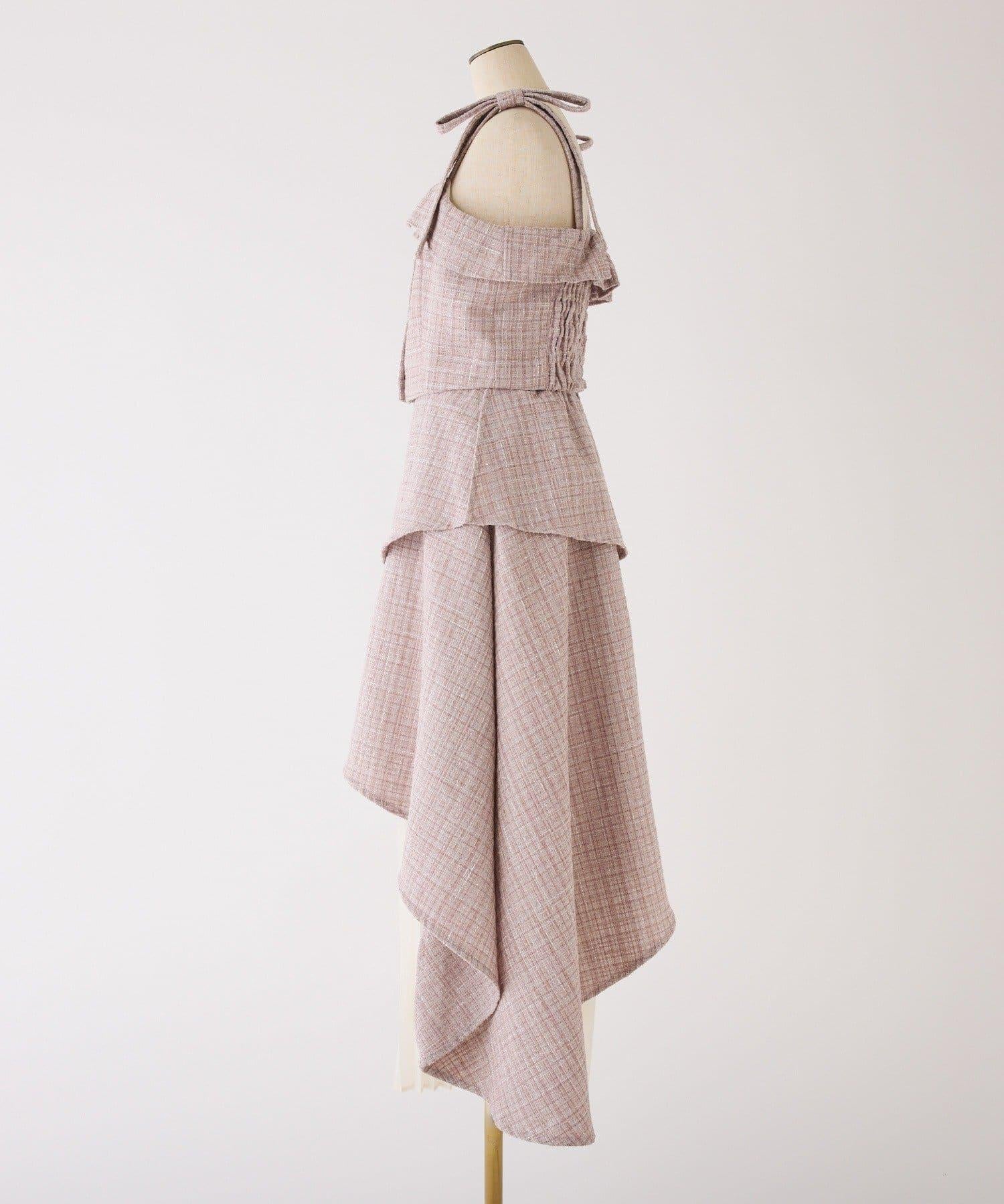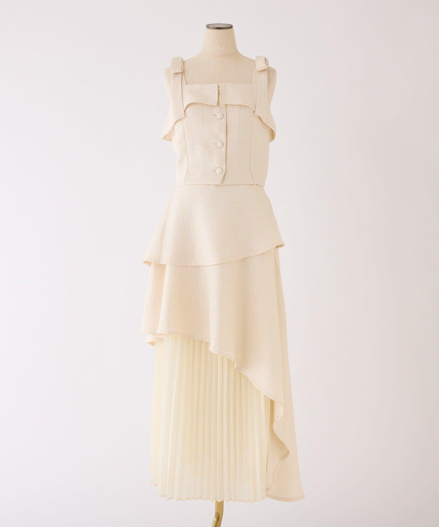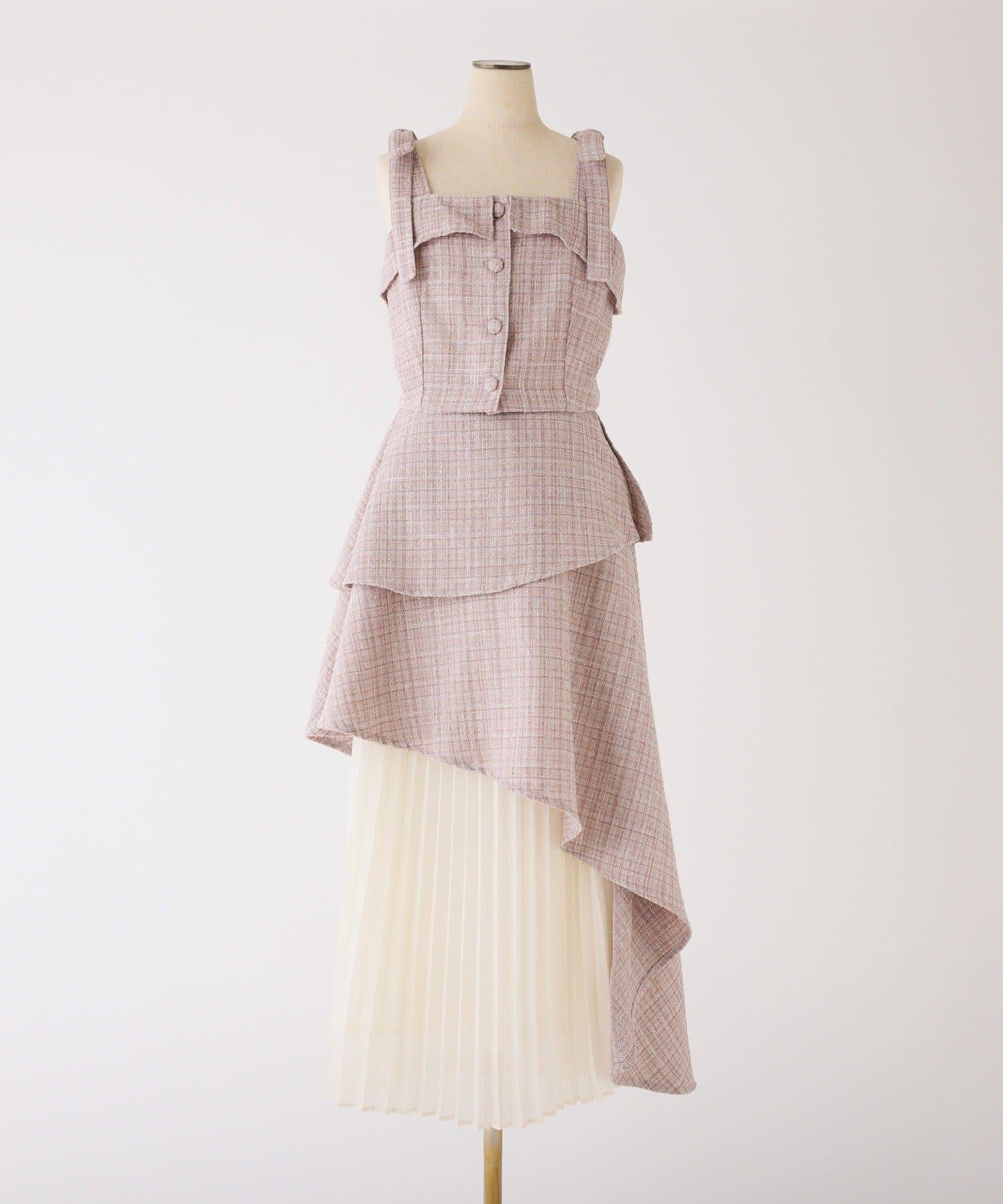 由斜紋軟呢面料肩帶半身裙和相同材質的裙子組成。