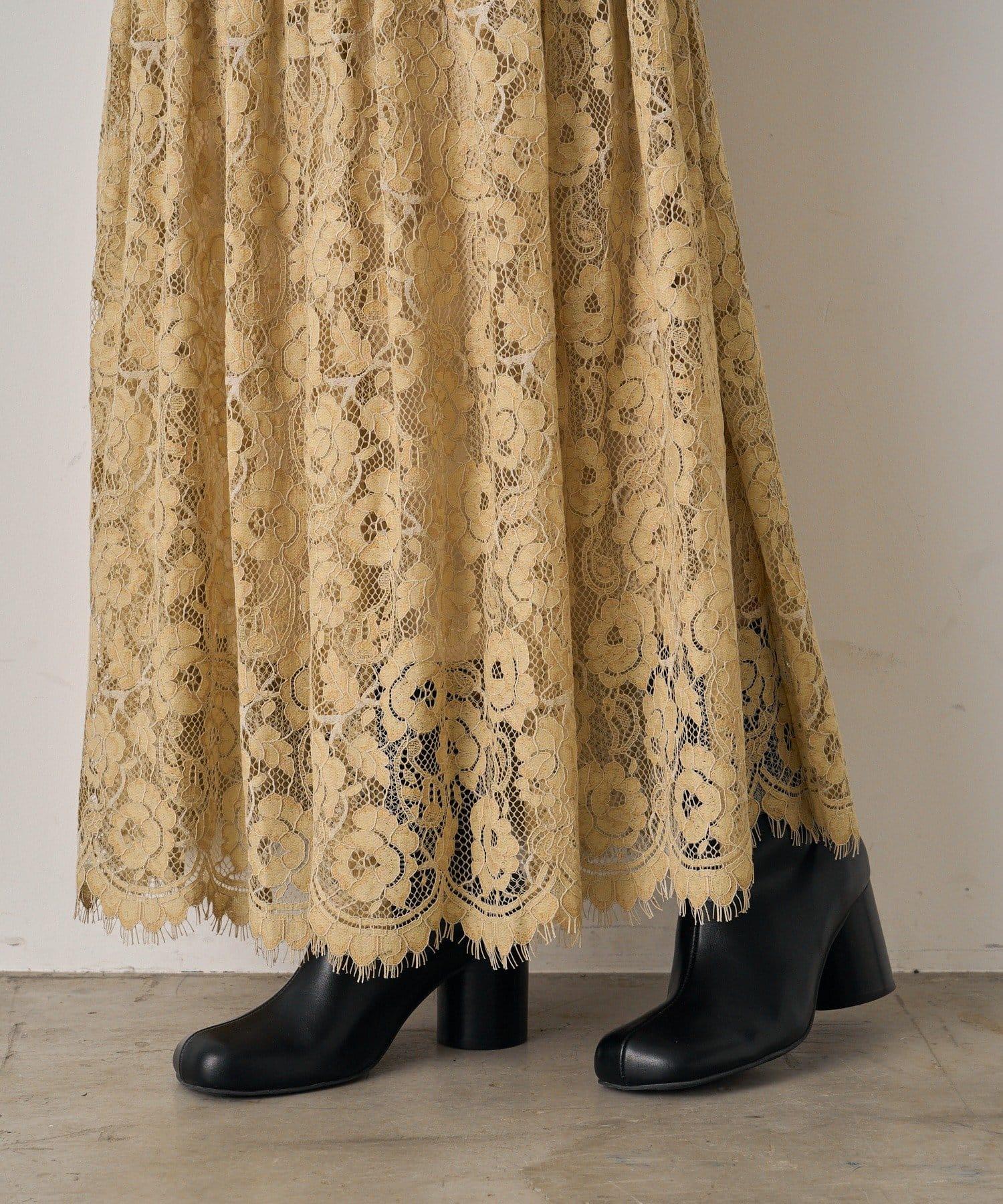 這款長裙採用優雅的全蕾絲設計,引人注目。