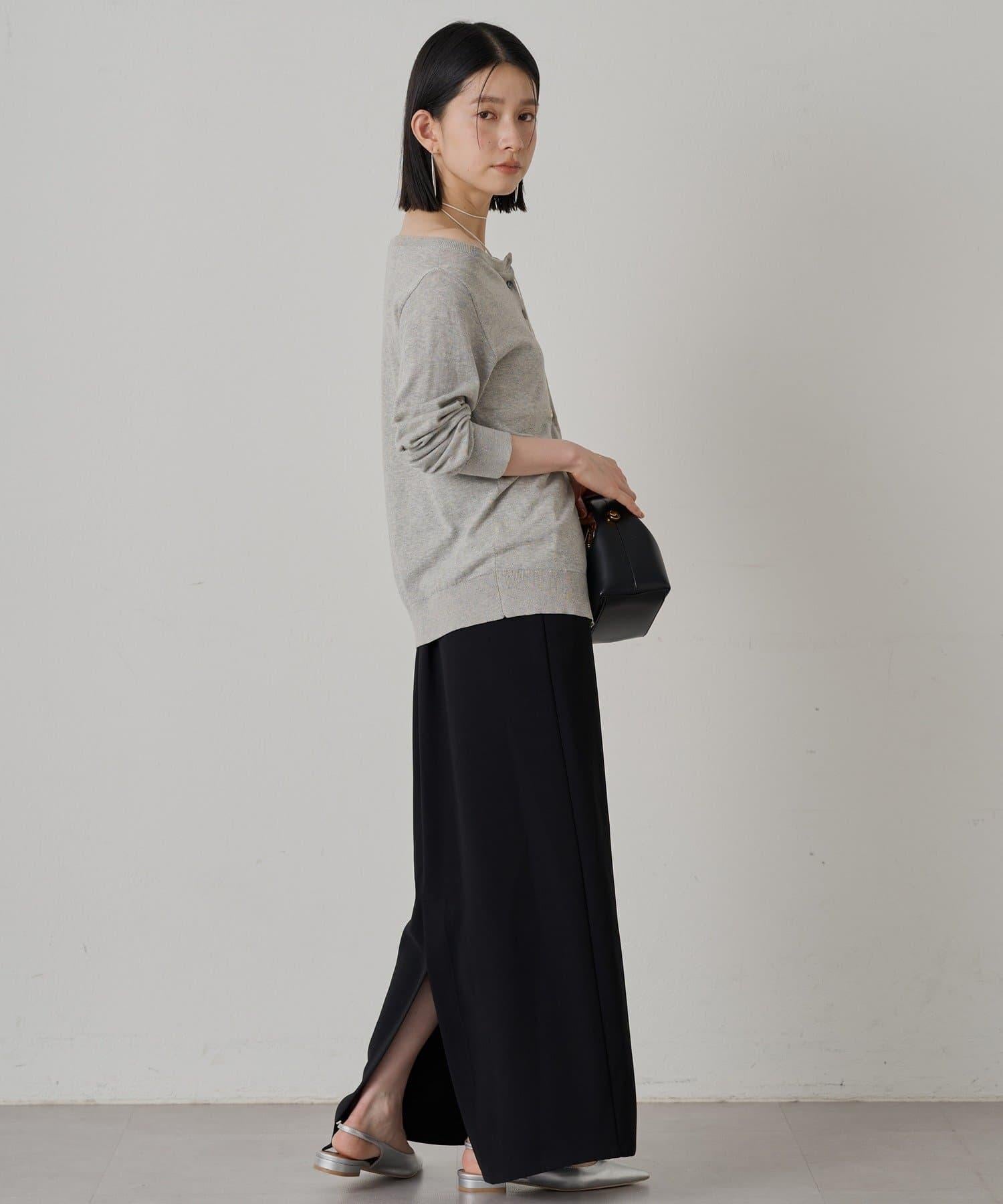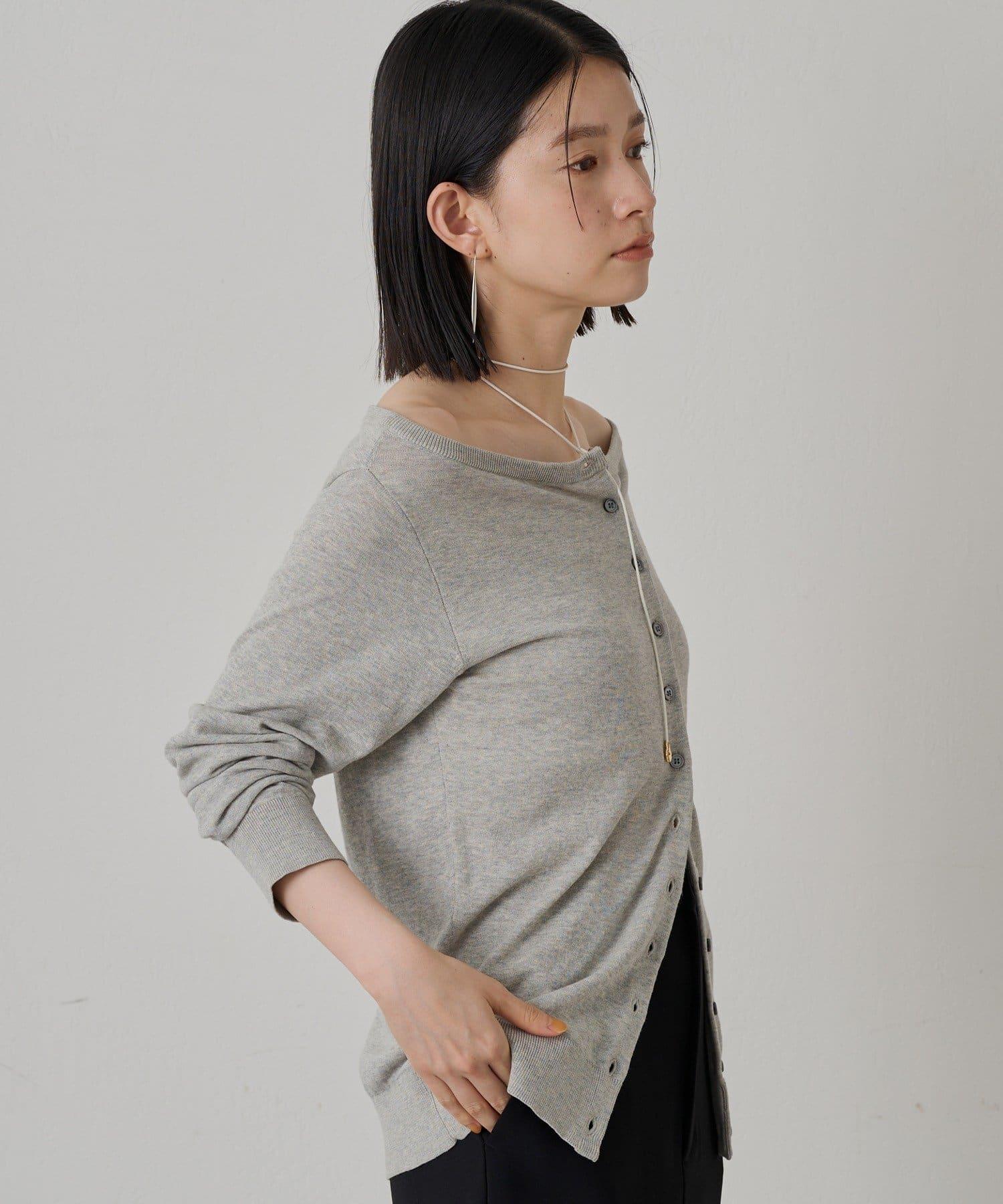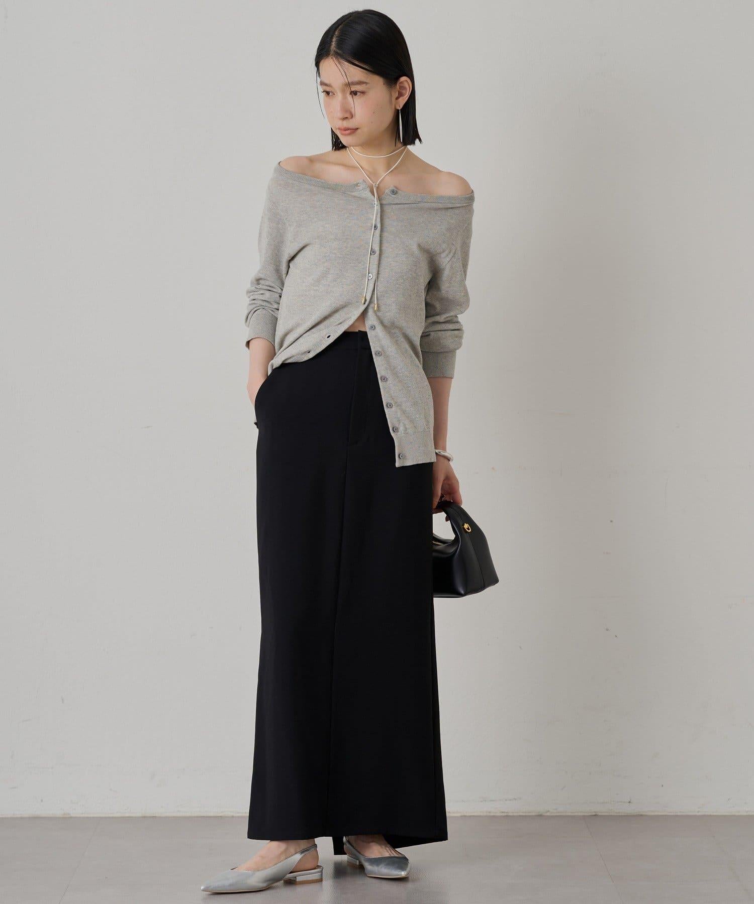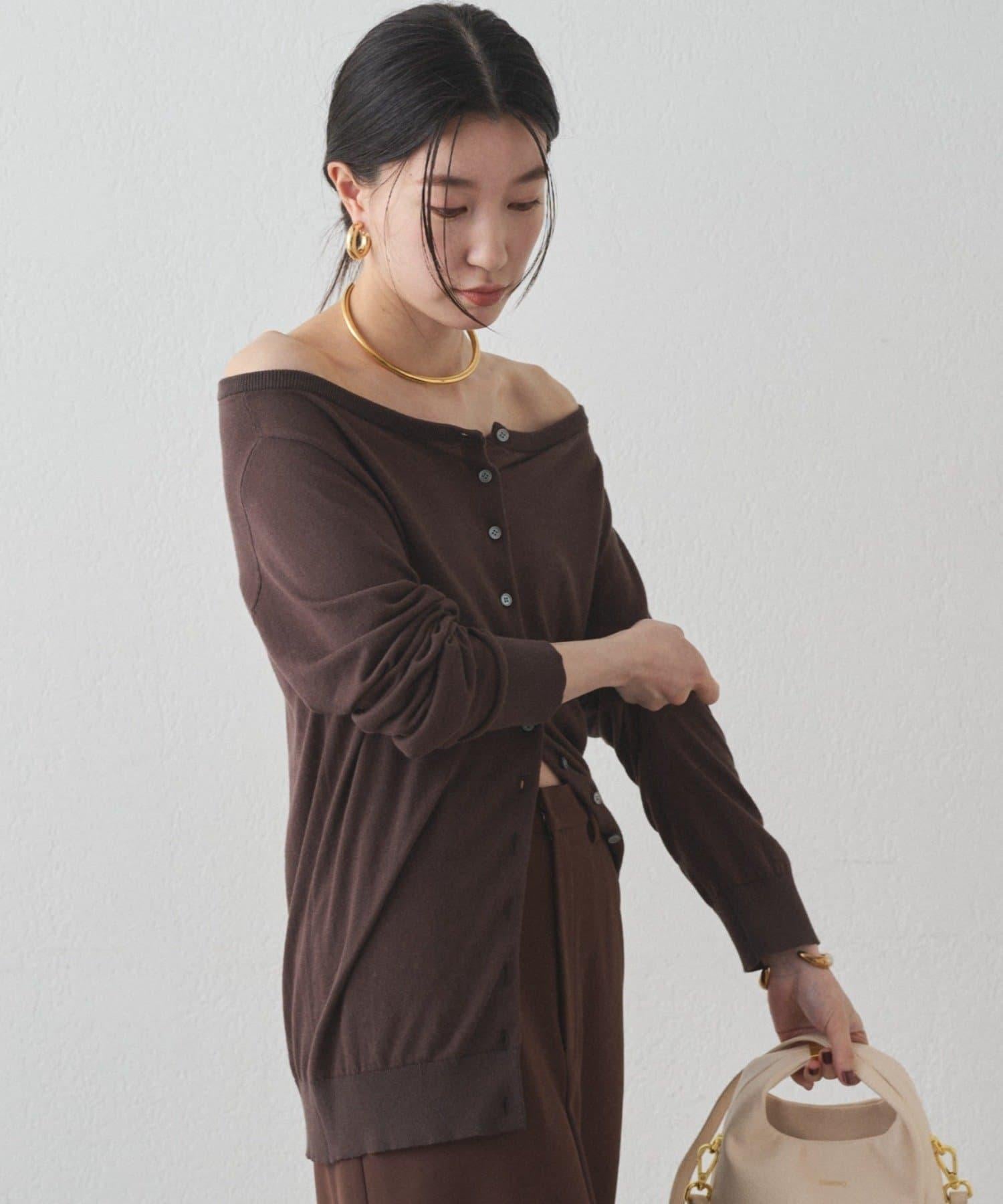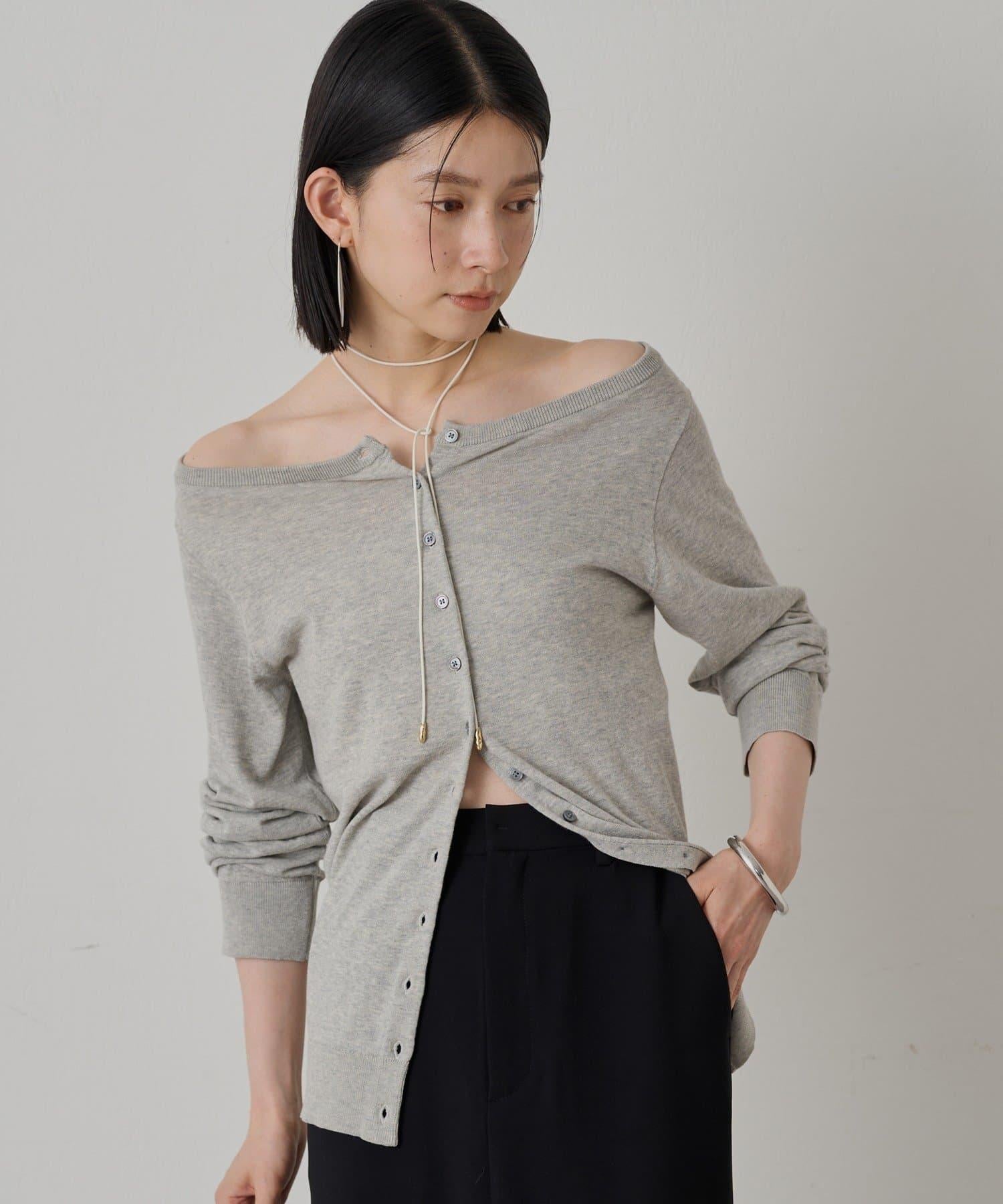 與長褲或長裙搭配時,很容易達到很好的平衡,並能產生提升格調的效果。此外,還建議將其露肩穿出寬鬆感。它還可以作為開襟羊毛衫穿著,或作為上衣將紐扣反扣,讓您享受多種穿法。