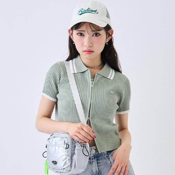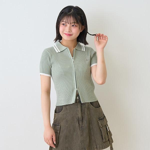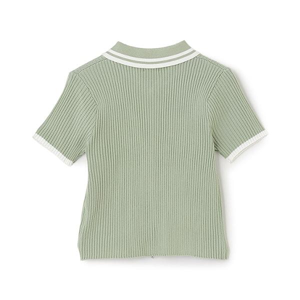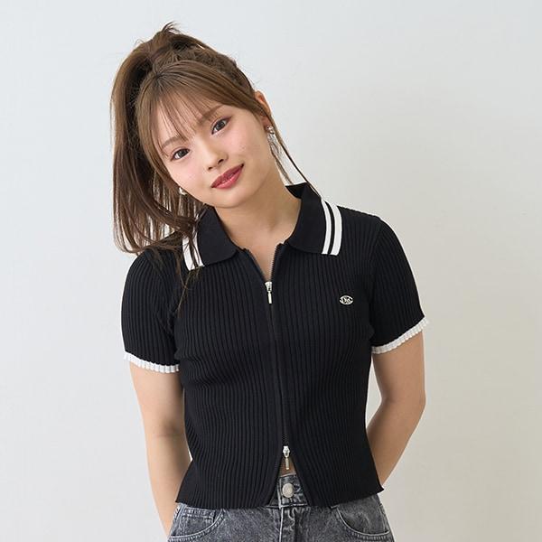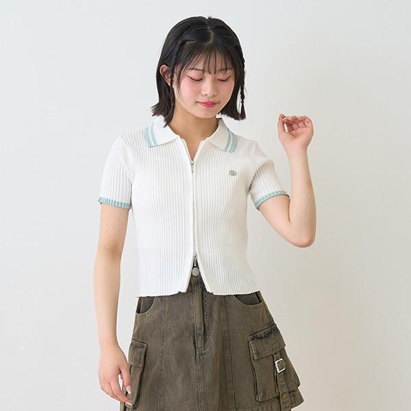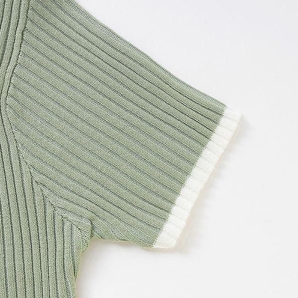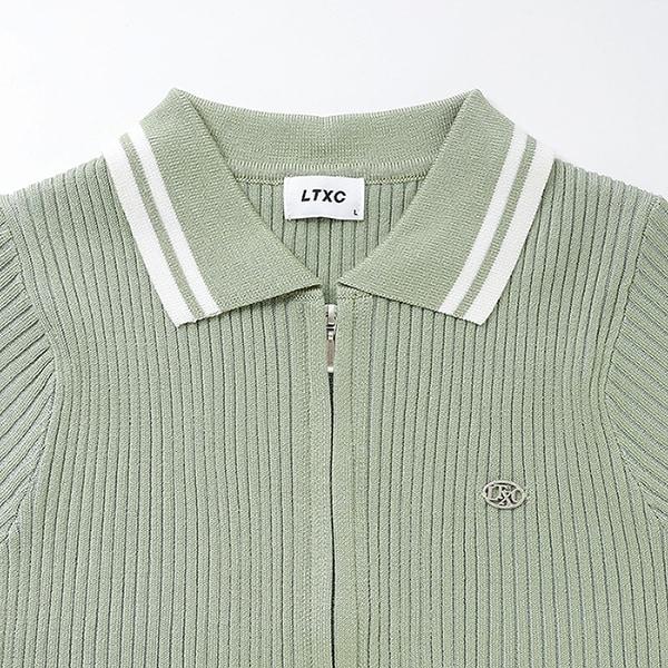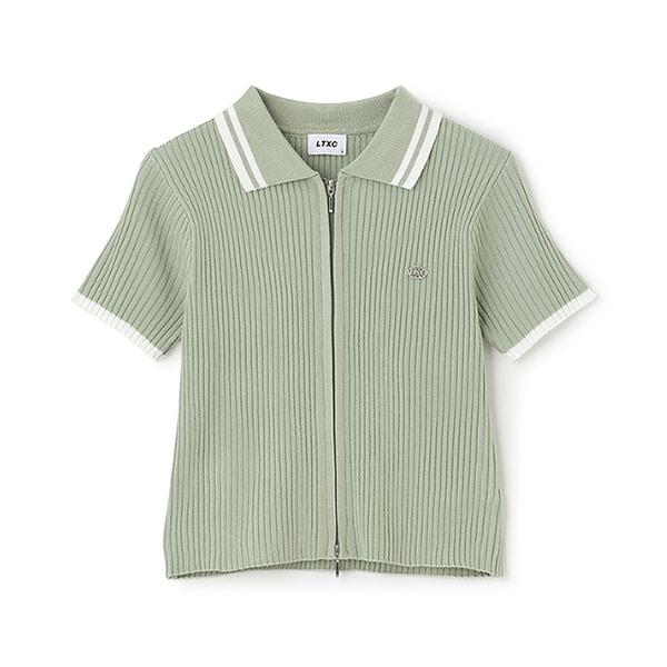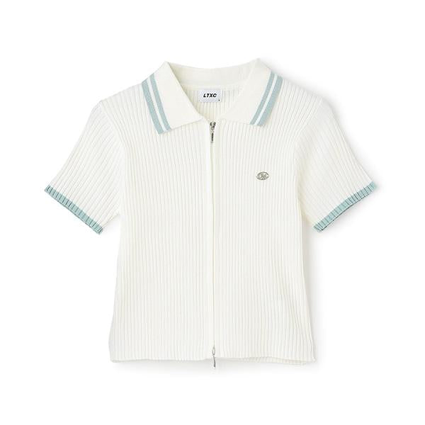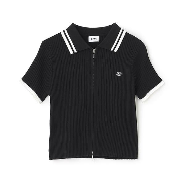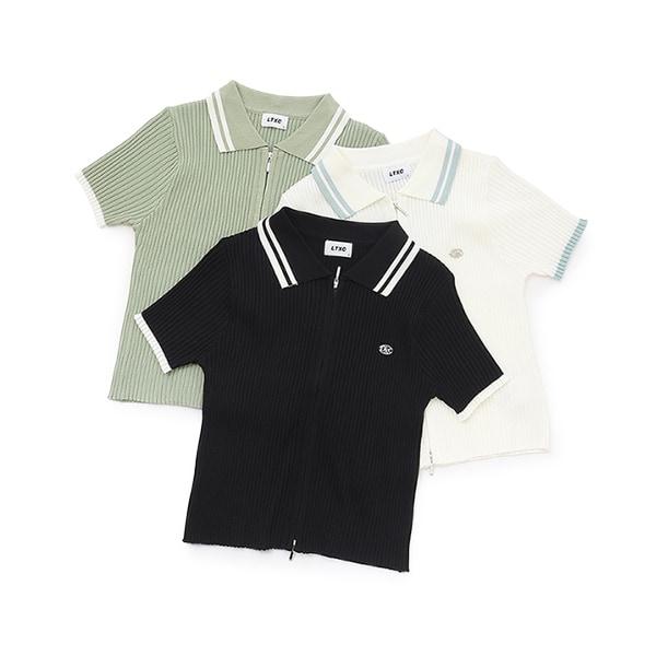 【LTXC】短袖領口條紋拉鍊針織衫