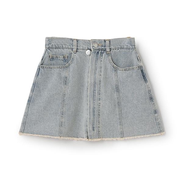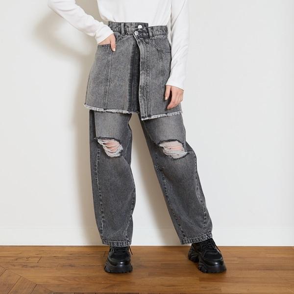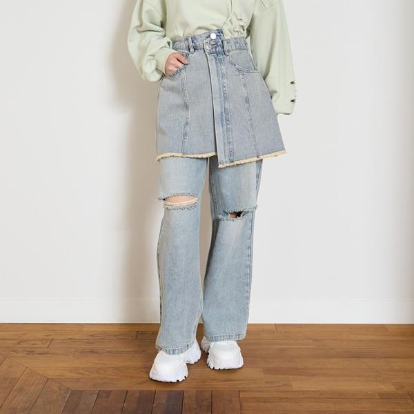 它既可以單穿作為牛仔裙,也可以裹在牛仔長褲外面,打造韓國女孩的風格。