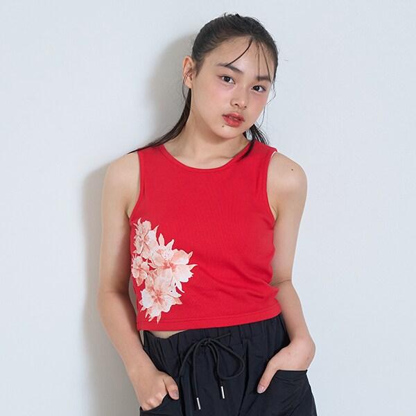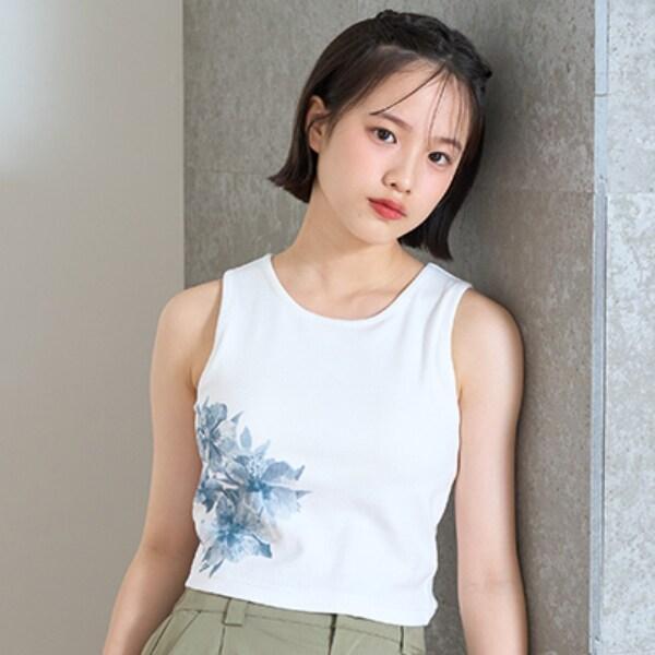 這款背心上印有淡淡的花朵圖案,給人以成人的感覺。