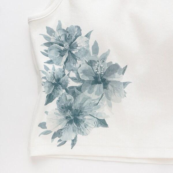 這款背心上印有淡淡的花朵圖案,給人以成人的感覺。